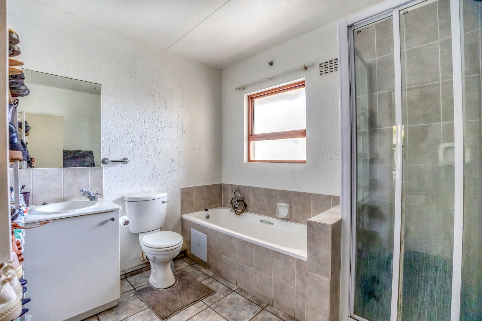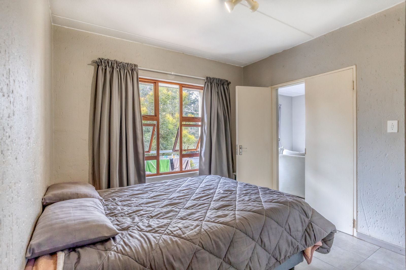 The spacious , sunlit bedroom is finished with sleek tiles, and generous built-in cupboards. A full en-suite bathroom includes a bath, shower, basin with vanity and water closet – combining both form and function to suit your lifestyle.