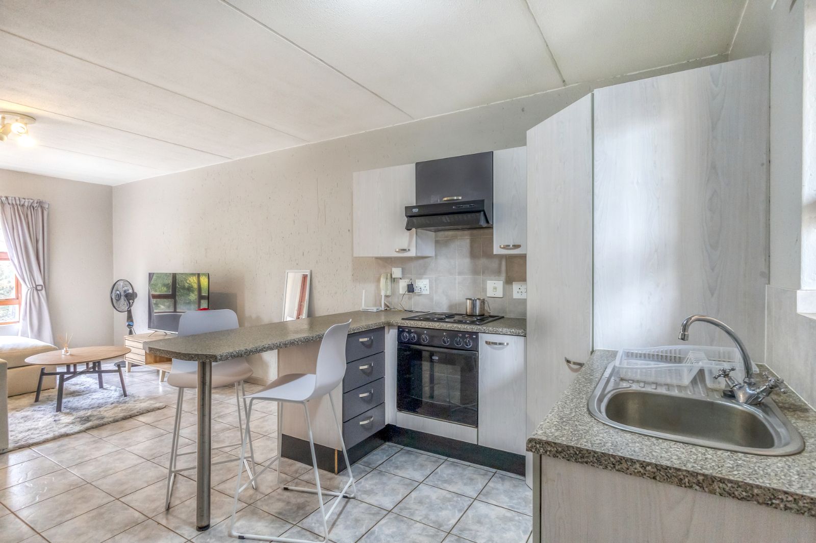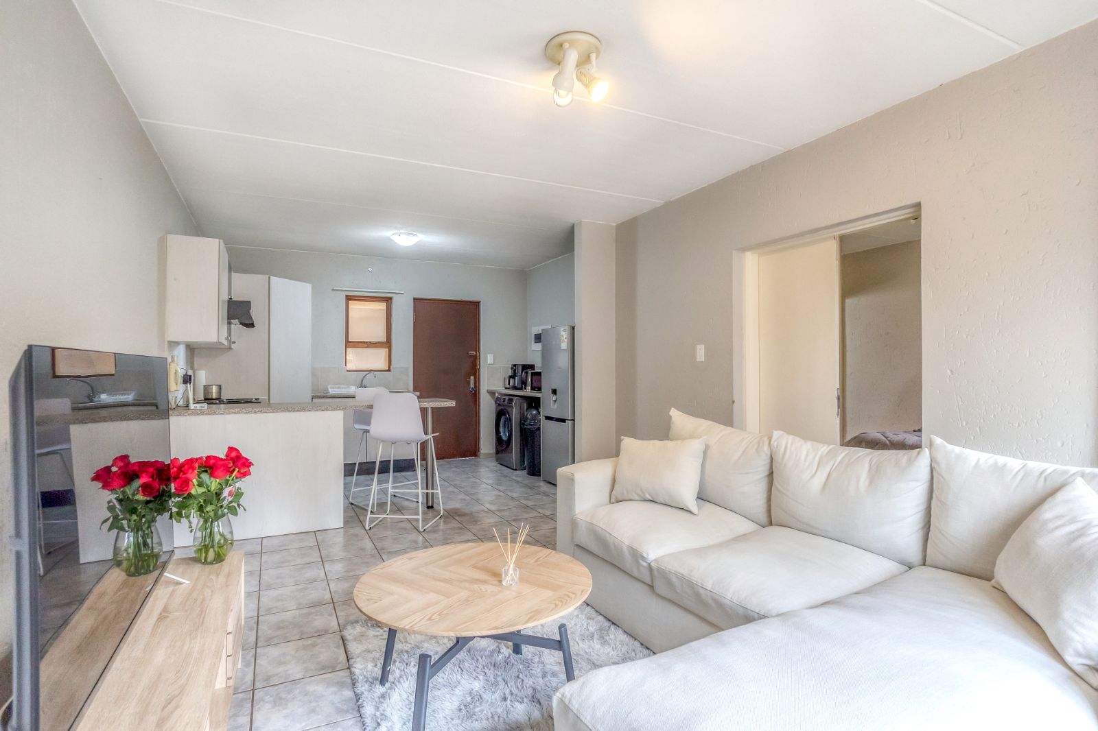 Step inside to discover a space that feels instantly like home. The open-plan lounge flows effortlessly into the kitchen, bedroom, and private balcony – creating a layout that is both functional and inviting. Tiled flooring and neutral tones throughout enhance the home’s clean, modern feel.