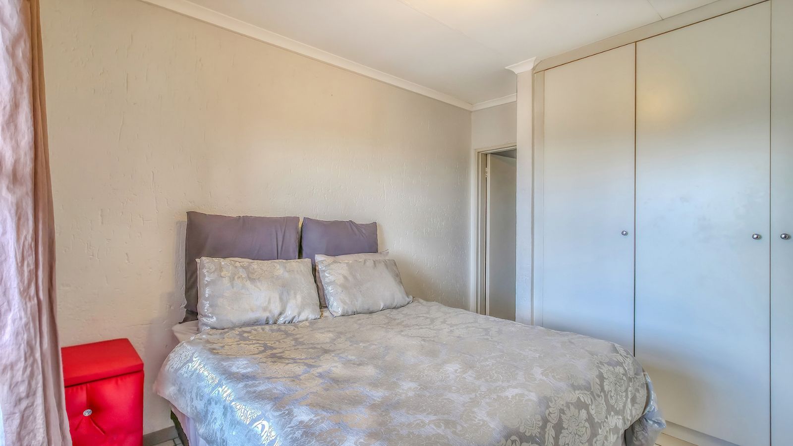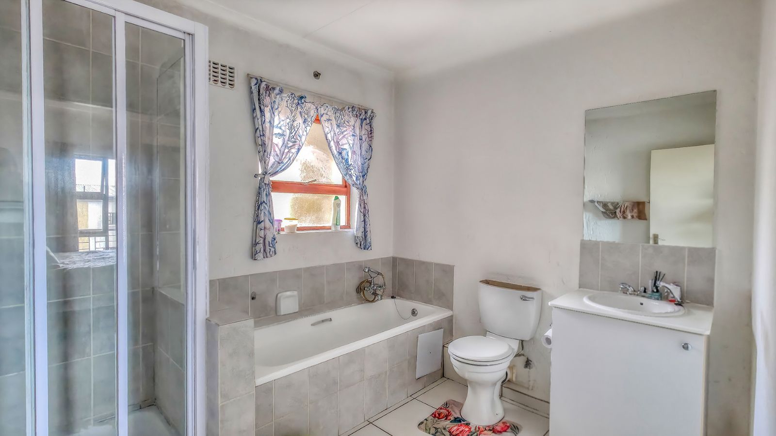 The spacious, sunlit bedroom features generous built-in cupboards and tiled floors for easy maintenance. A full en suite bathroom includes a bath, shower, toilet and hand wash basin with extra storage – merging style with everyday comfort.