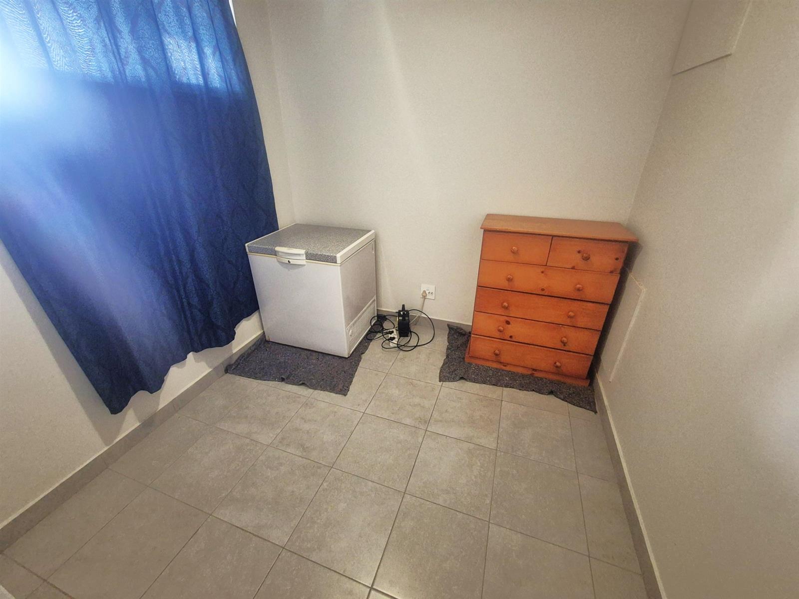 Two comfortably sized tiled bedrooms. A bathroom with a built-in cupboard and a shower over the bath.