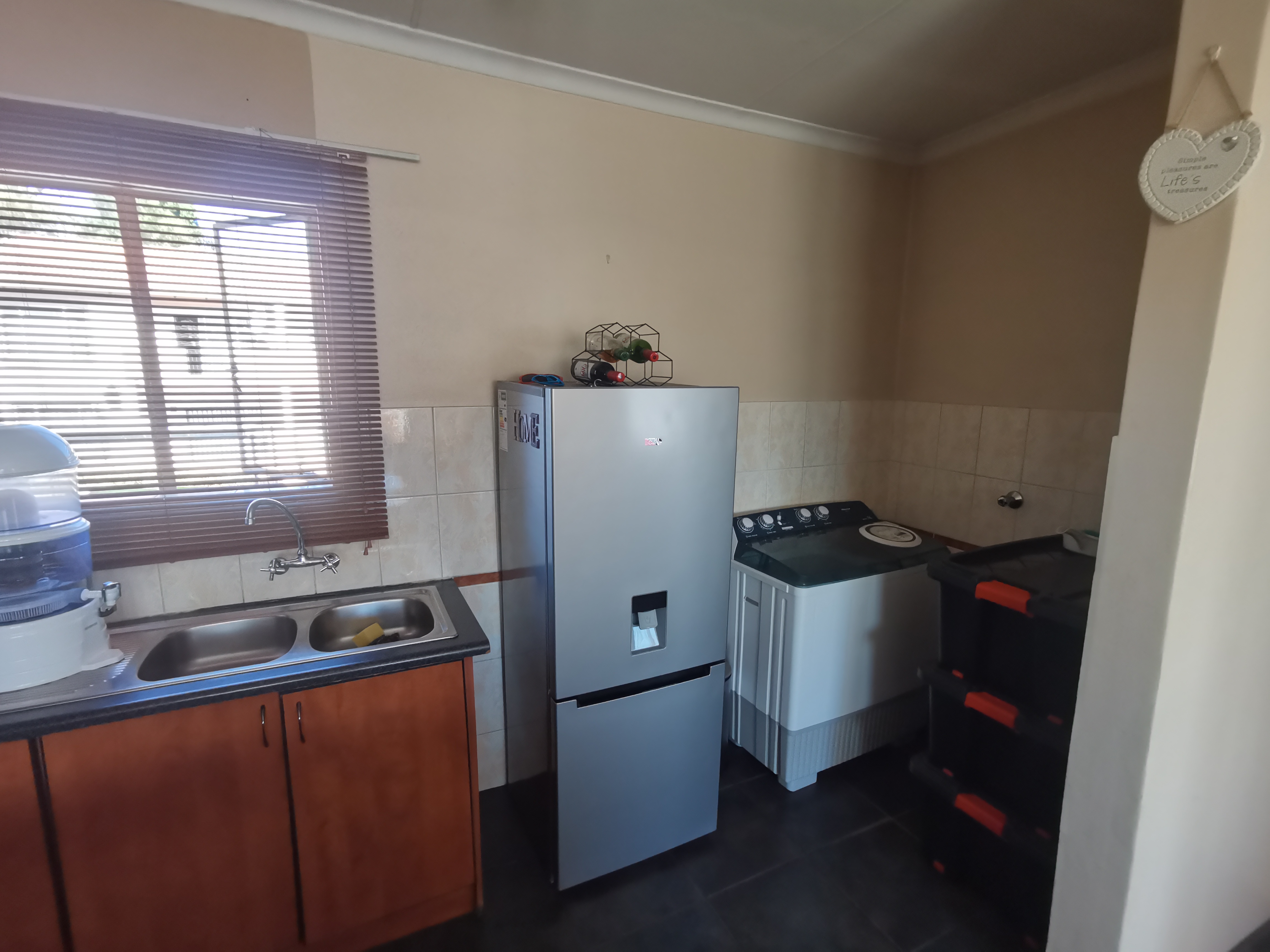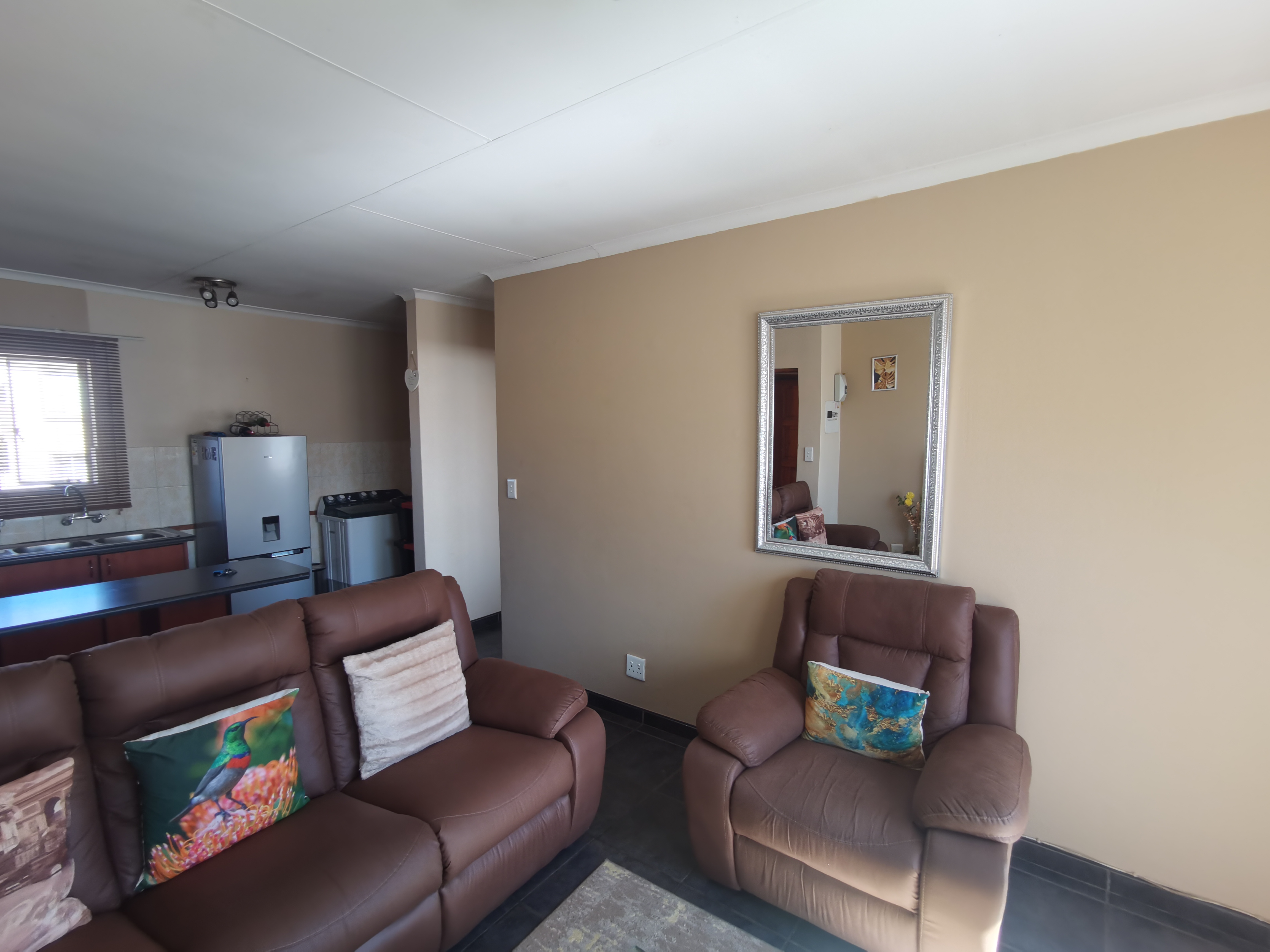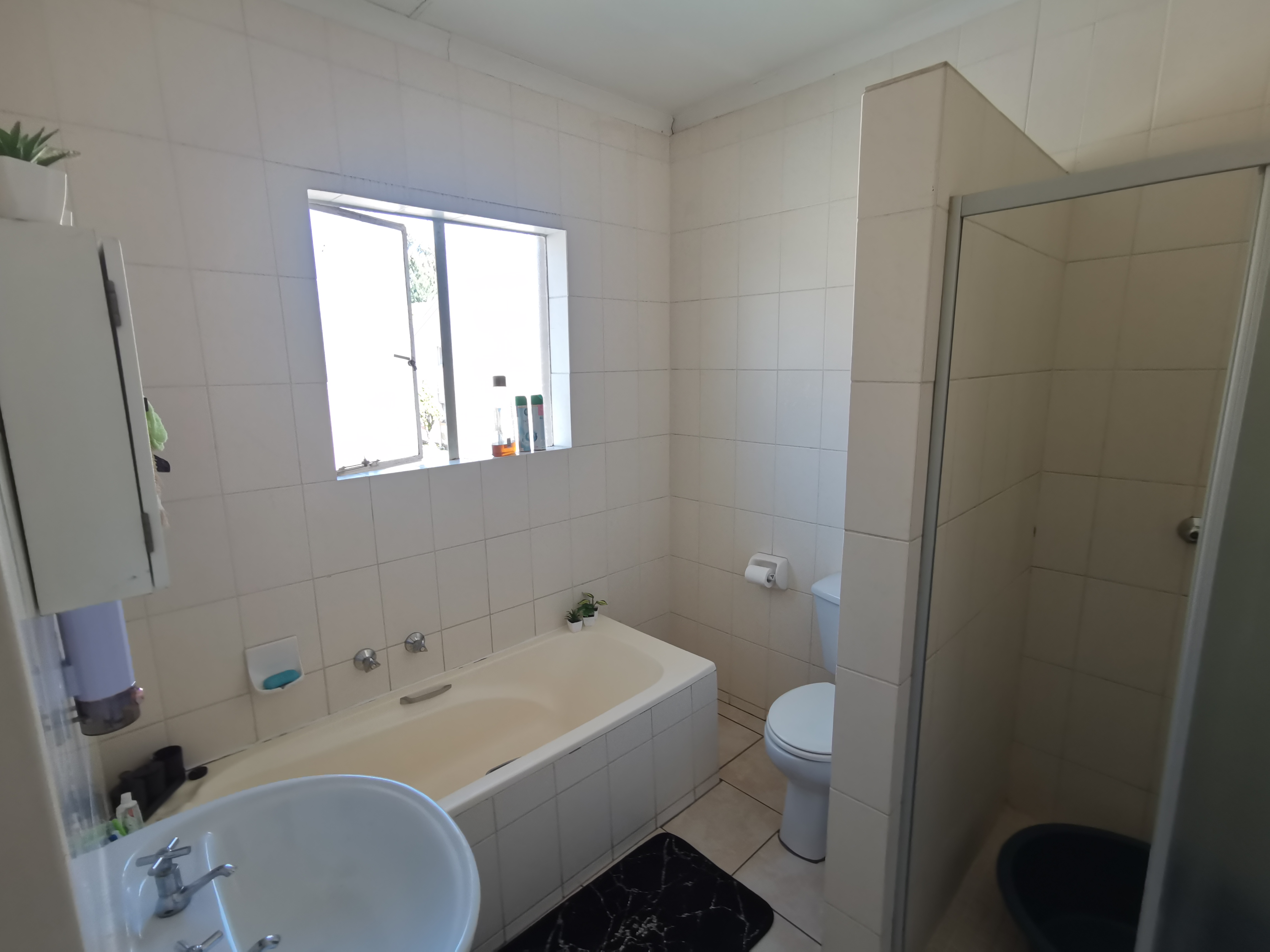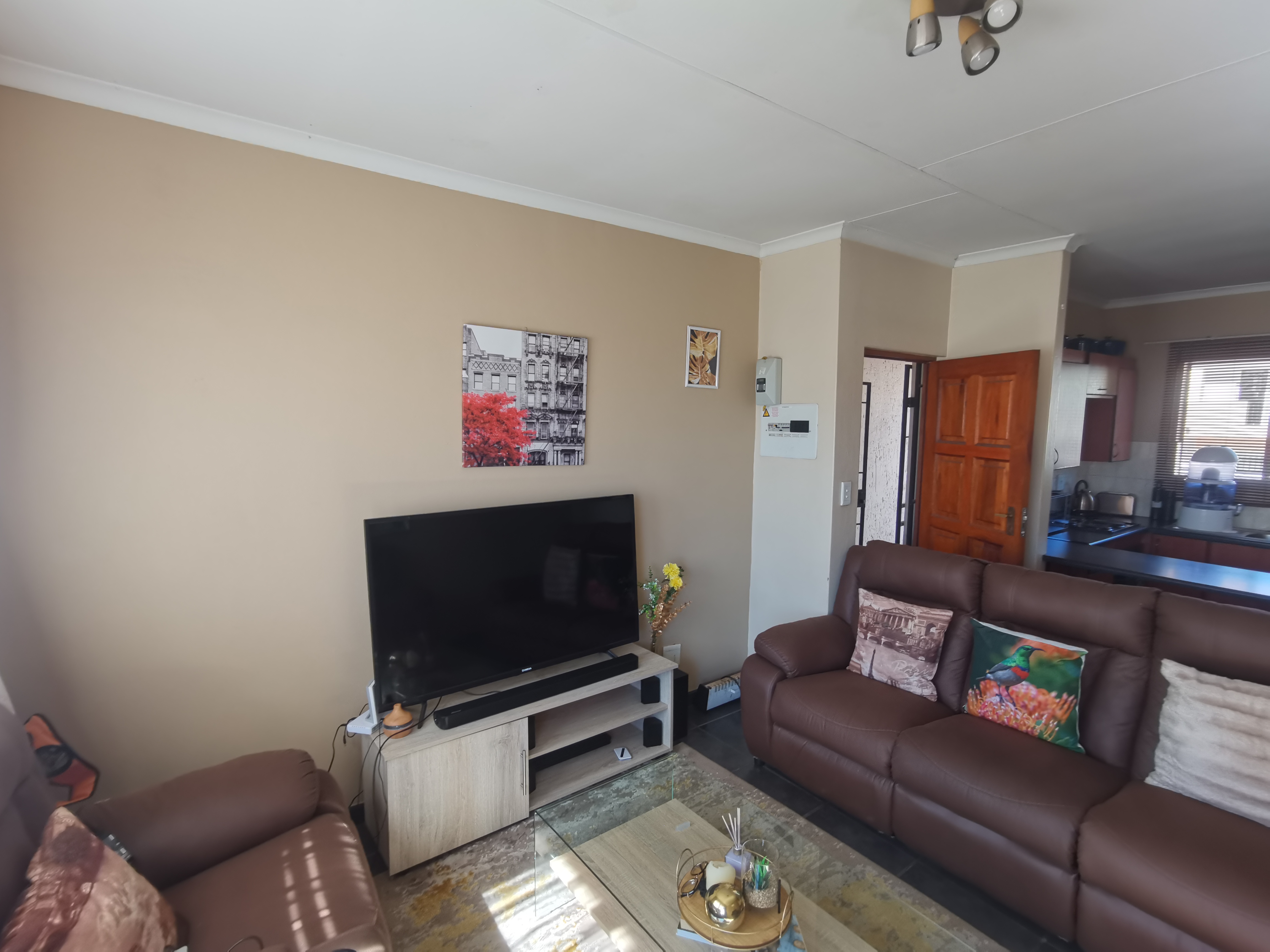 The open plan kitchen with breakfast nook and three appliance spaces flows into the tiled, airy, lounge, which open with a sliding door onto a sunny balcony with Northern views.