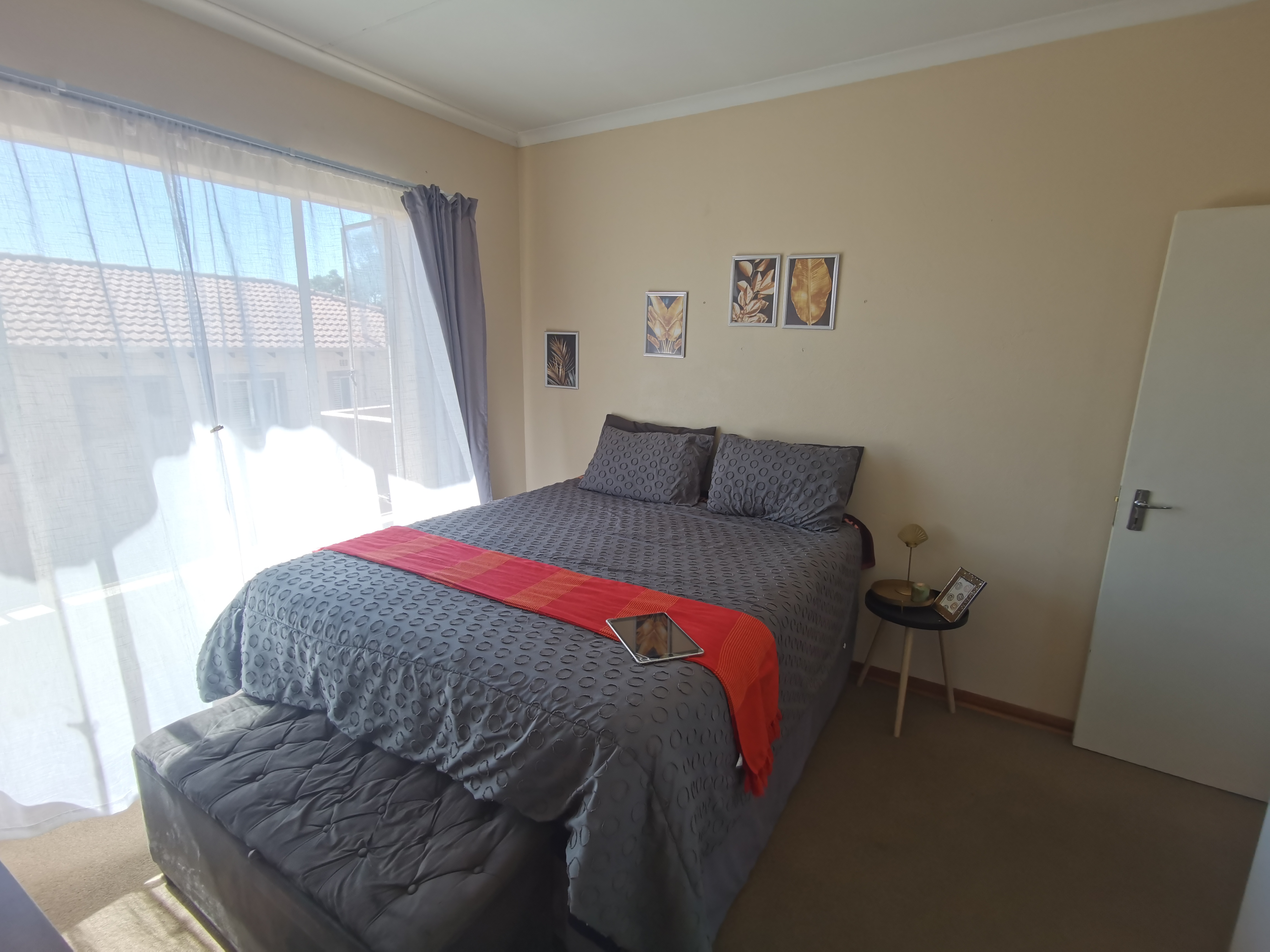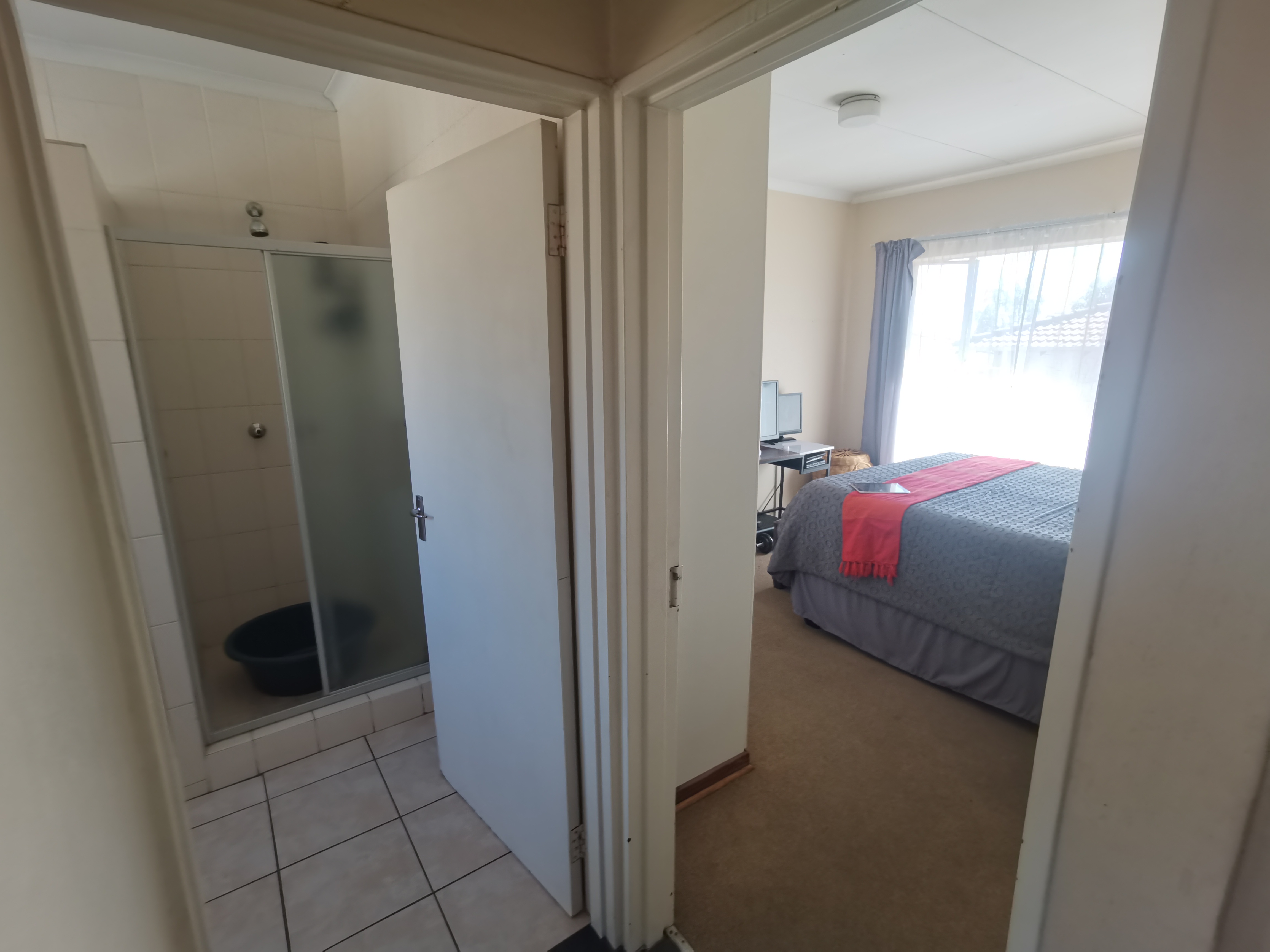 The roomy bedroom has plenty of cupboard space and is carpeted.