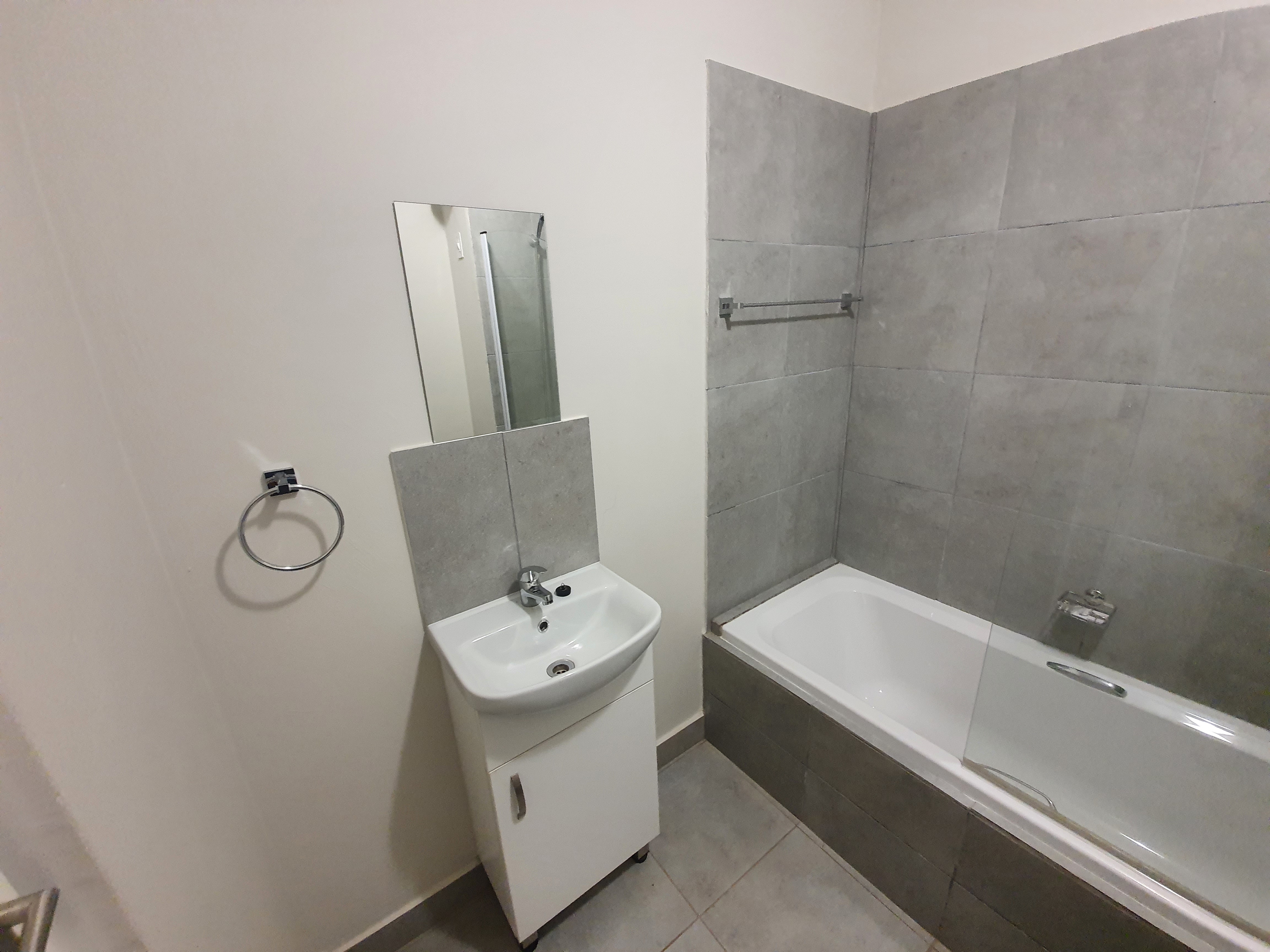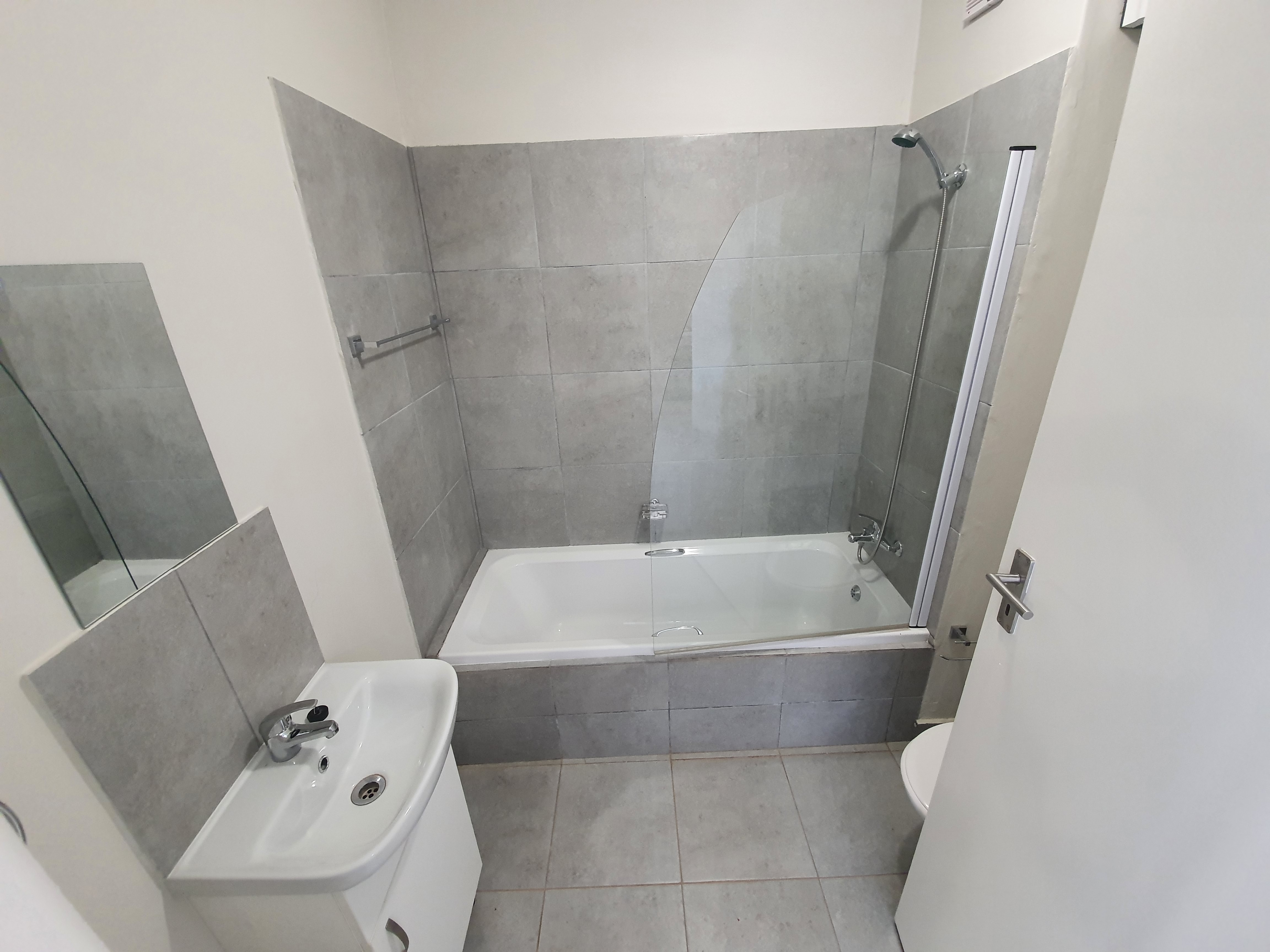 Enjoy open-plan living with tiled flooring throughout, a practical kitchen with two water connections, and a full bathroom with a shower-over-bath combination.