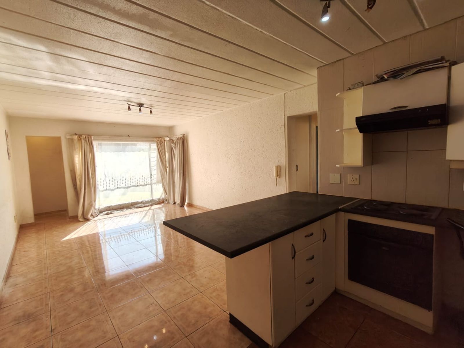 This neat and well-maintained ground floor apartment offers comfortable living in a secure complex. The unit features an open-plan kitchen and living area that leads out to a private, paved garden – ideal for relaxing or entertaining.