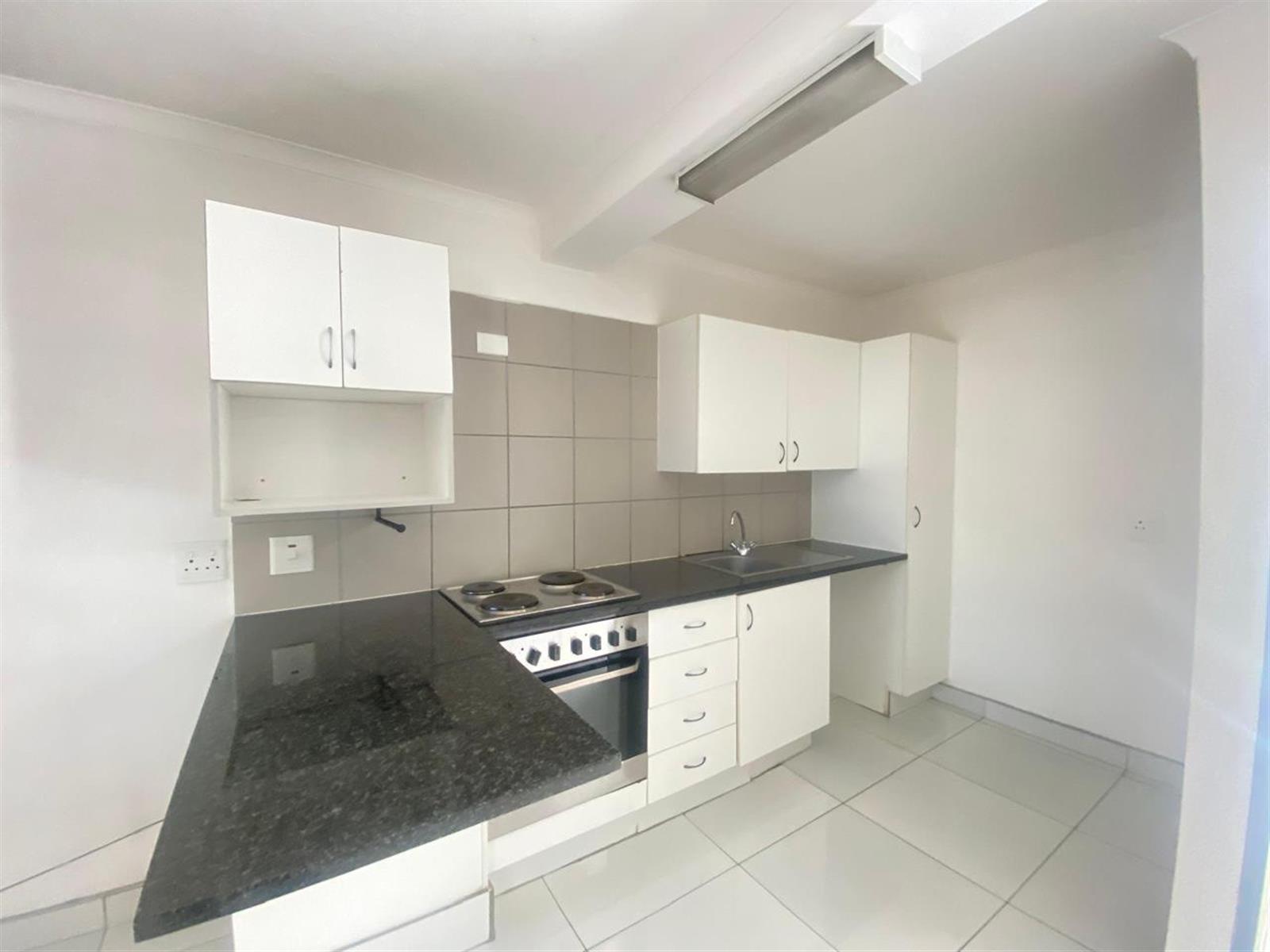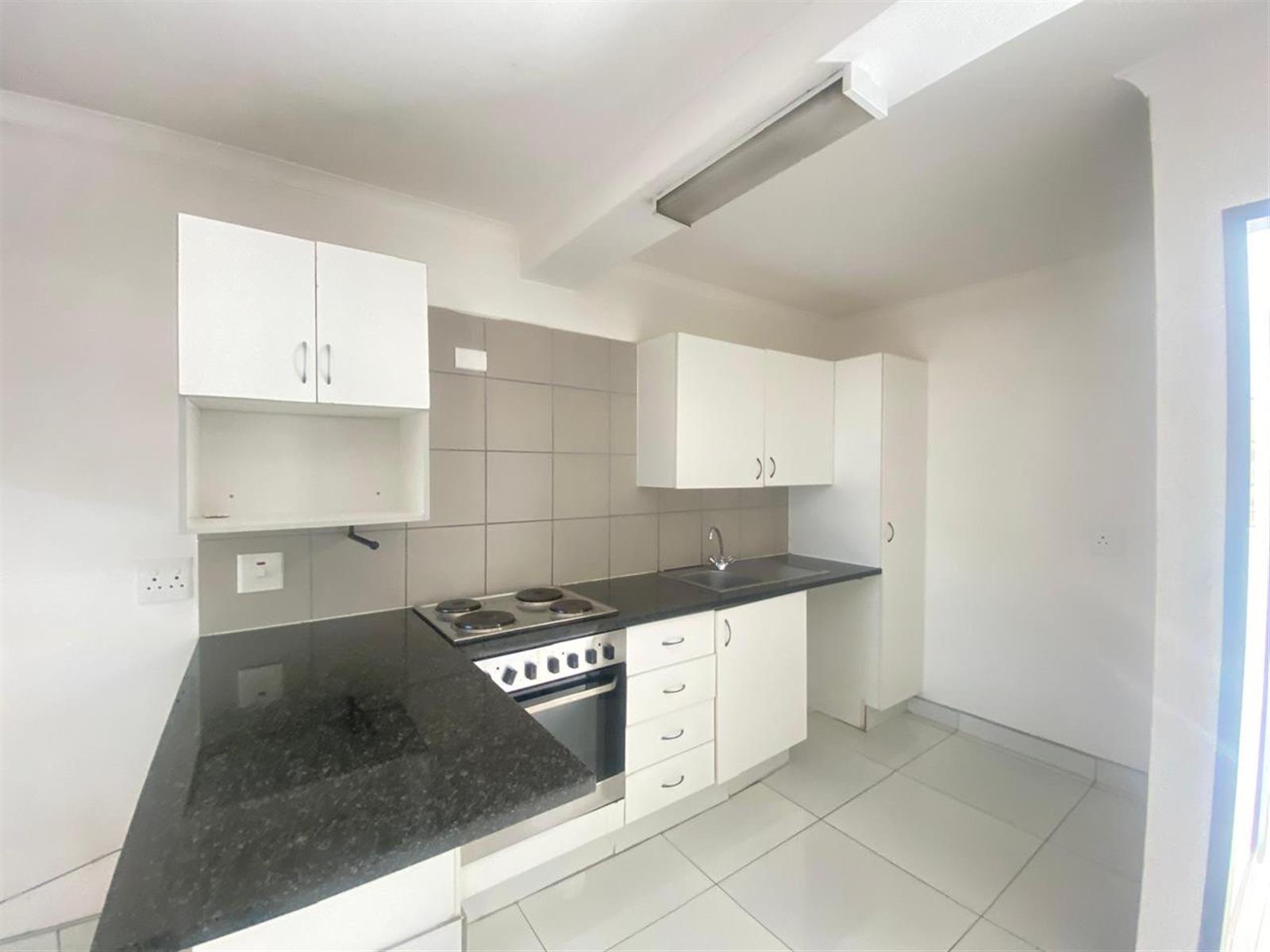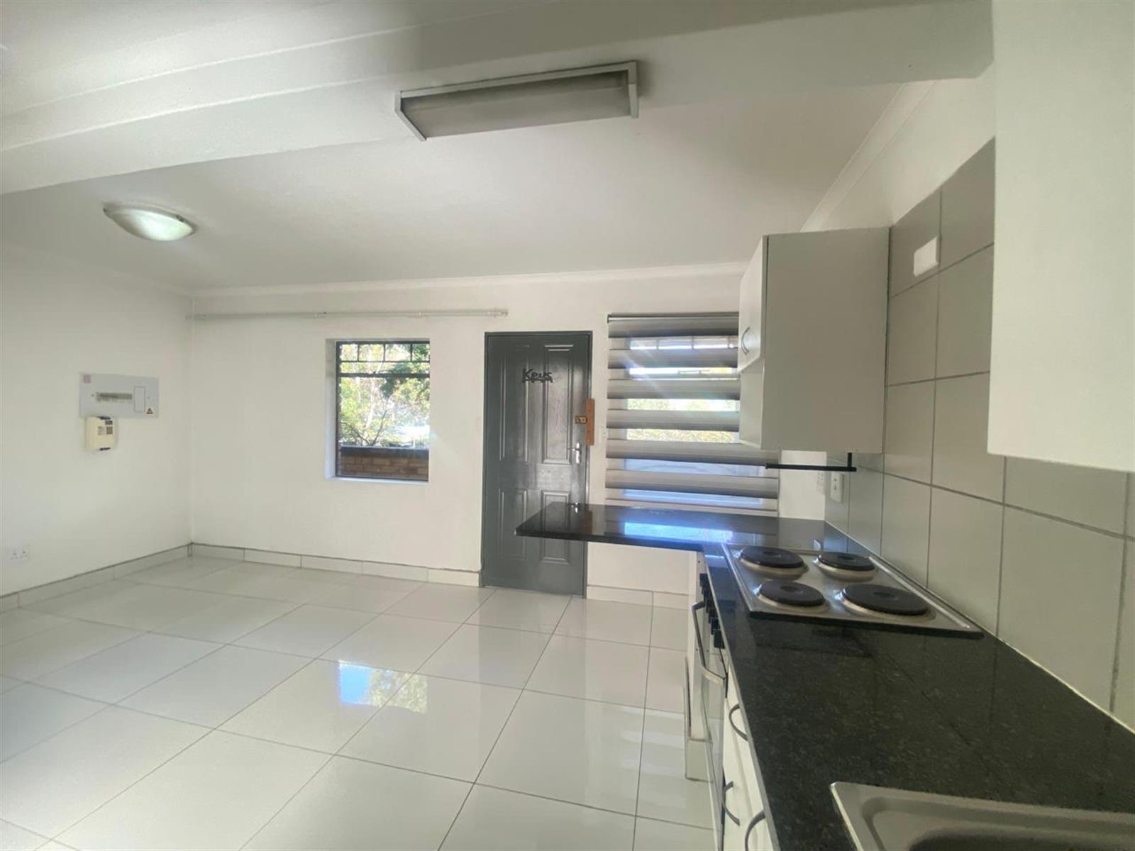 The apartment offers a spacious open-plan living area that flows effortlessly into a neat kitchen with ample cupboard space and room for appliances. The bedroom is generously sized with built-in cupboards, and the en-suite bathroom is modern, private, and designed for easy everyday living.