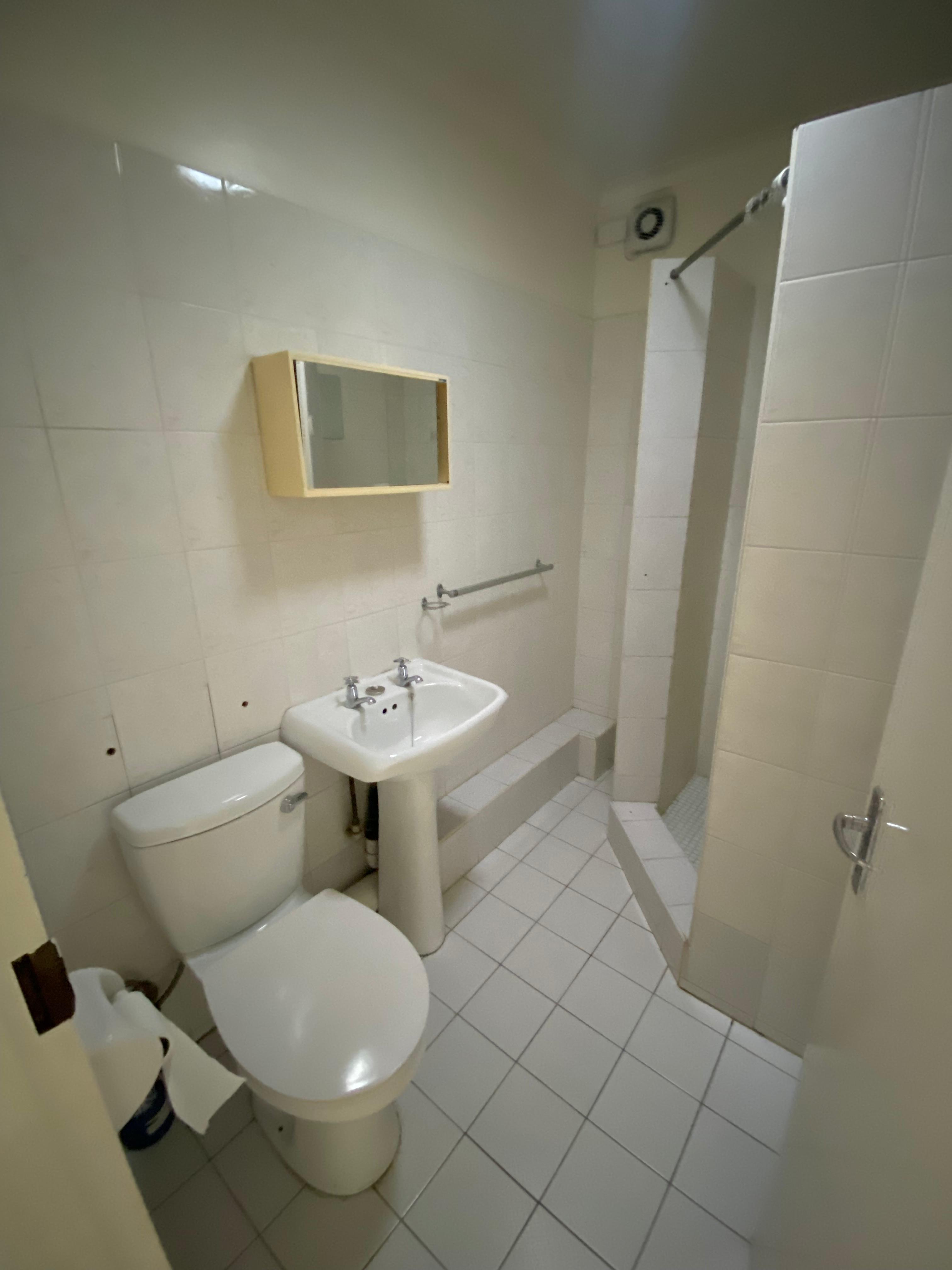 The main bedroom is large and fitted with built-in cupboards, while the second bedroom can easily be used as a study or guest room. Both bathrooms are well-appointed for convenience.