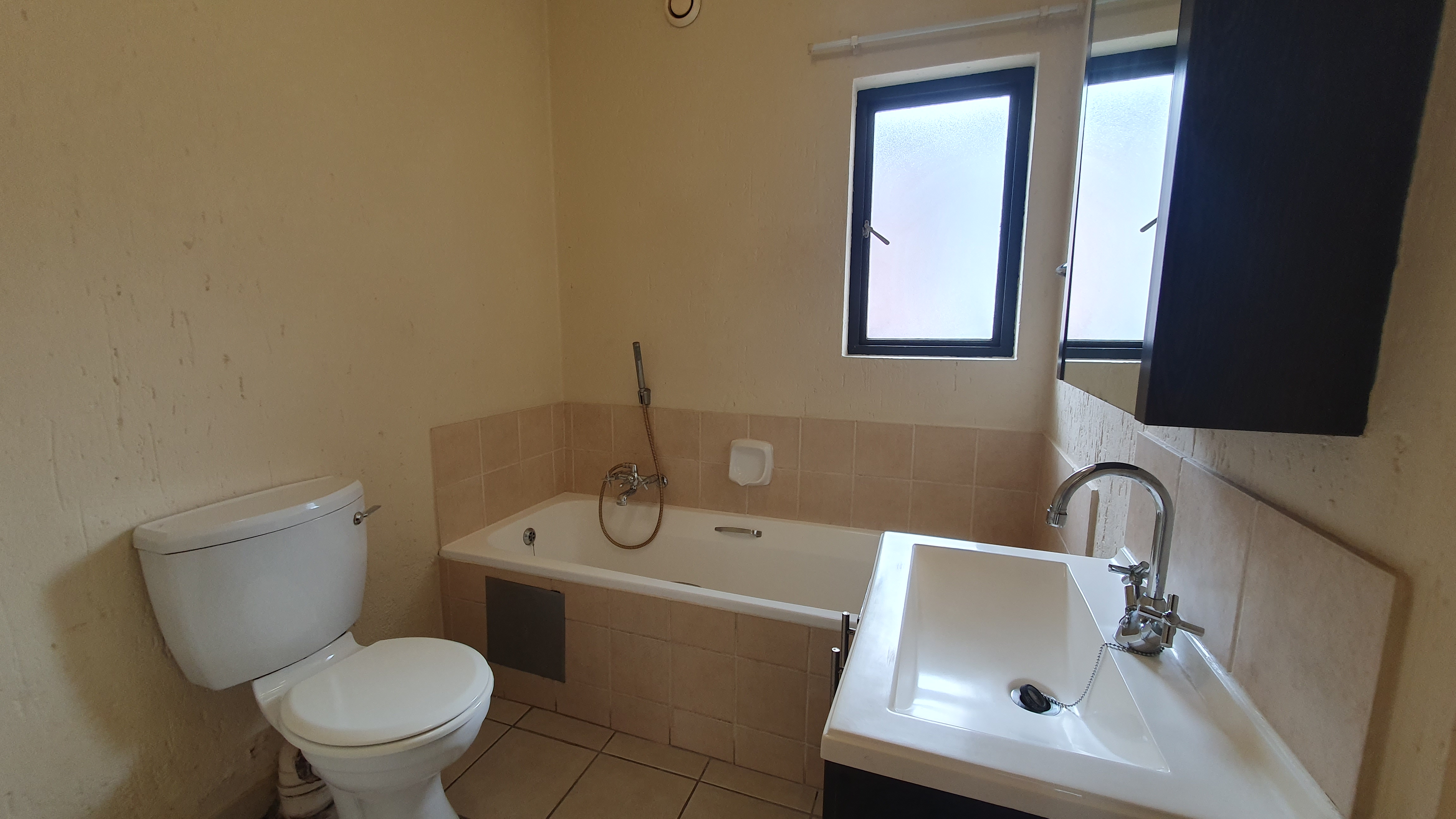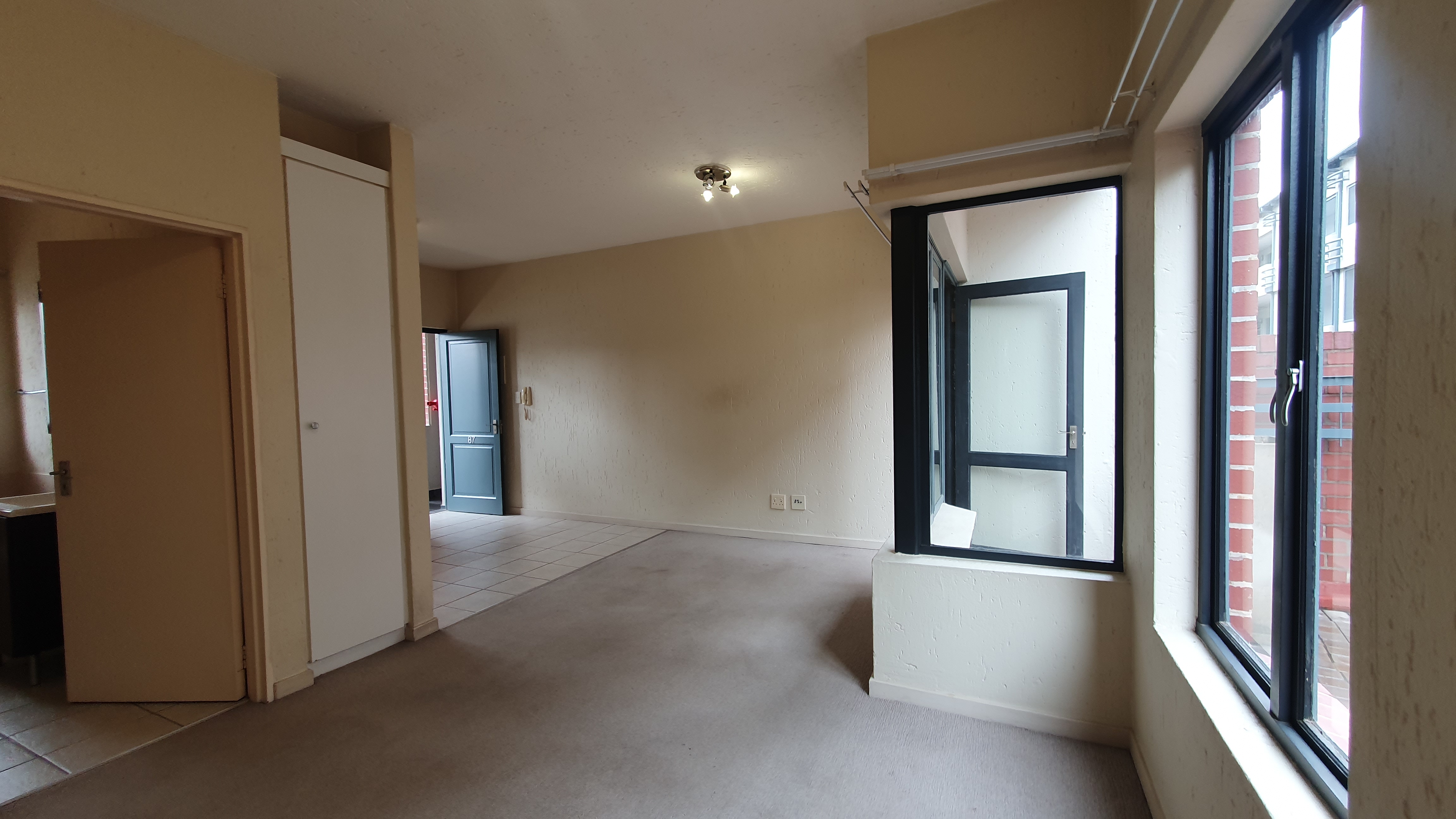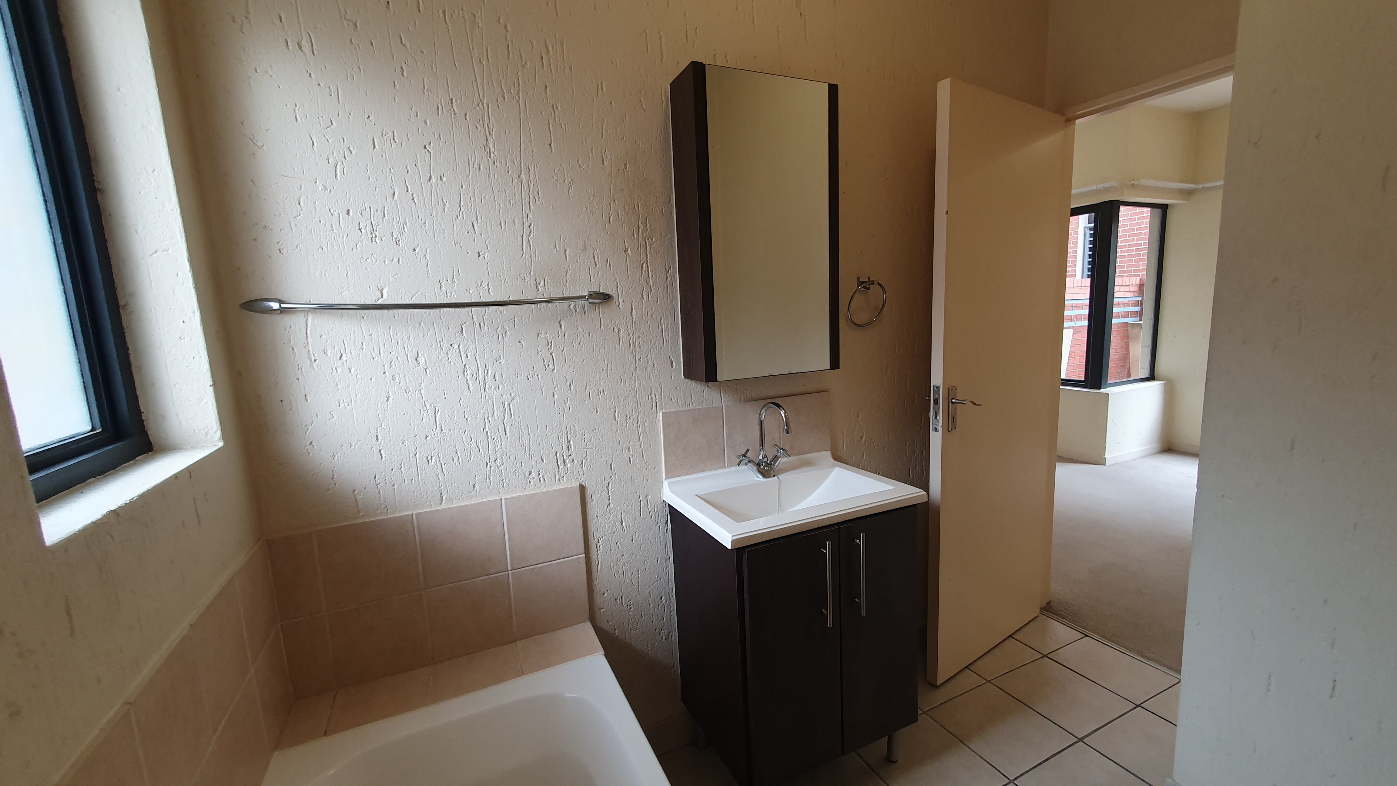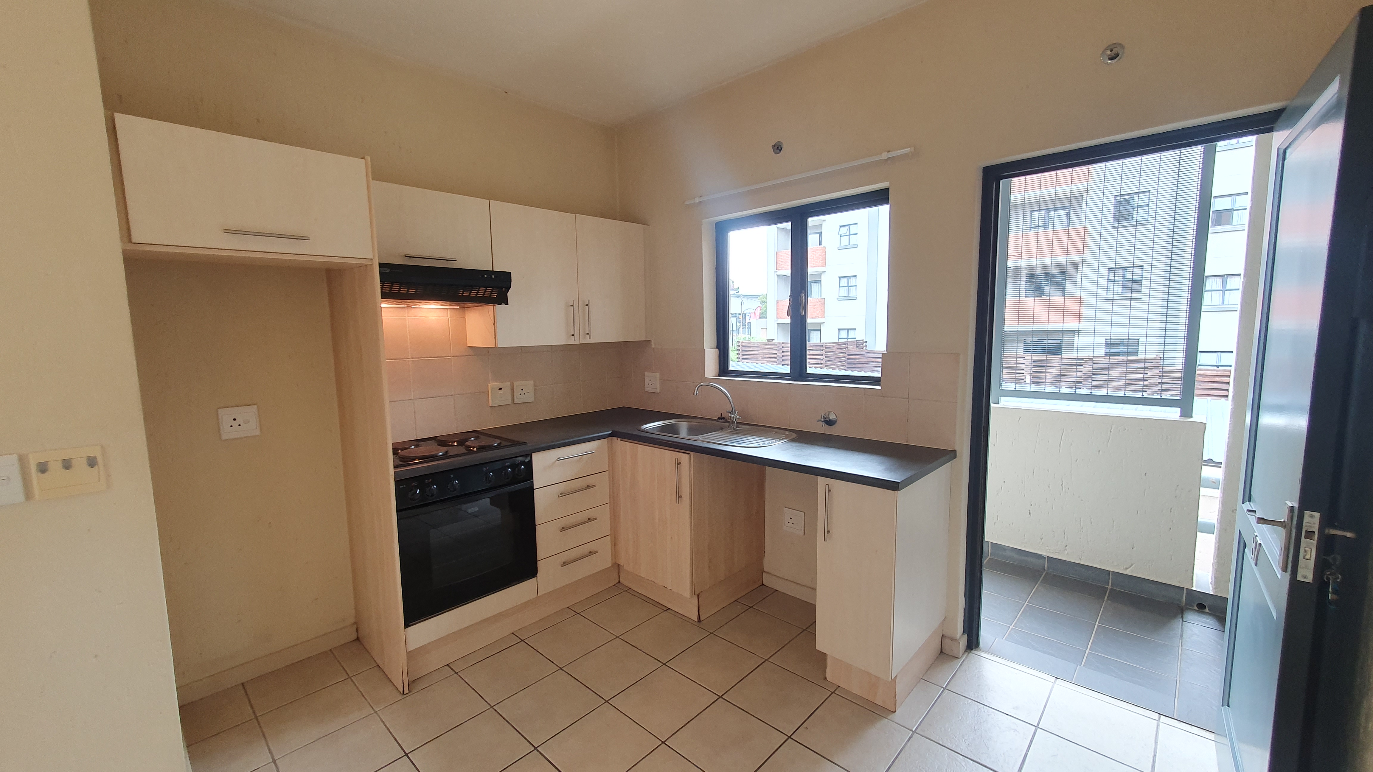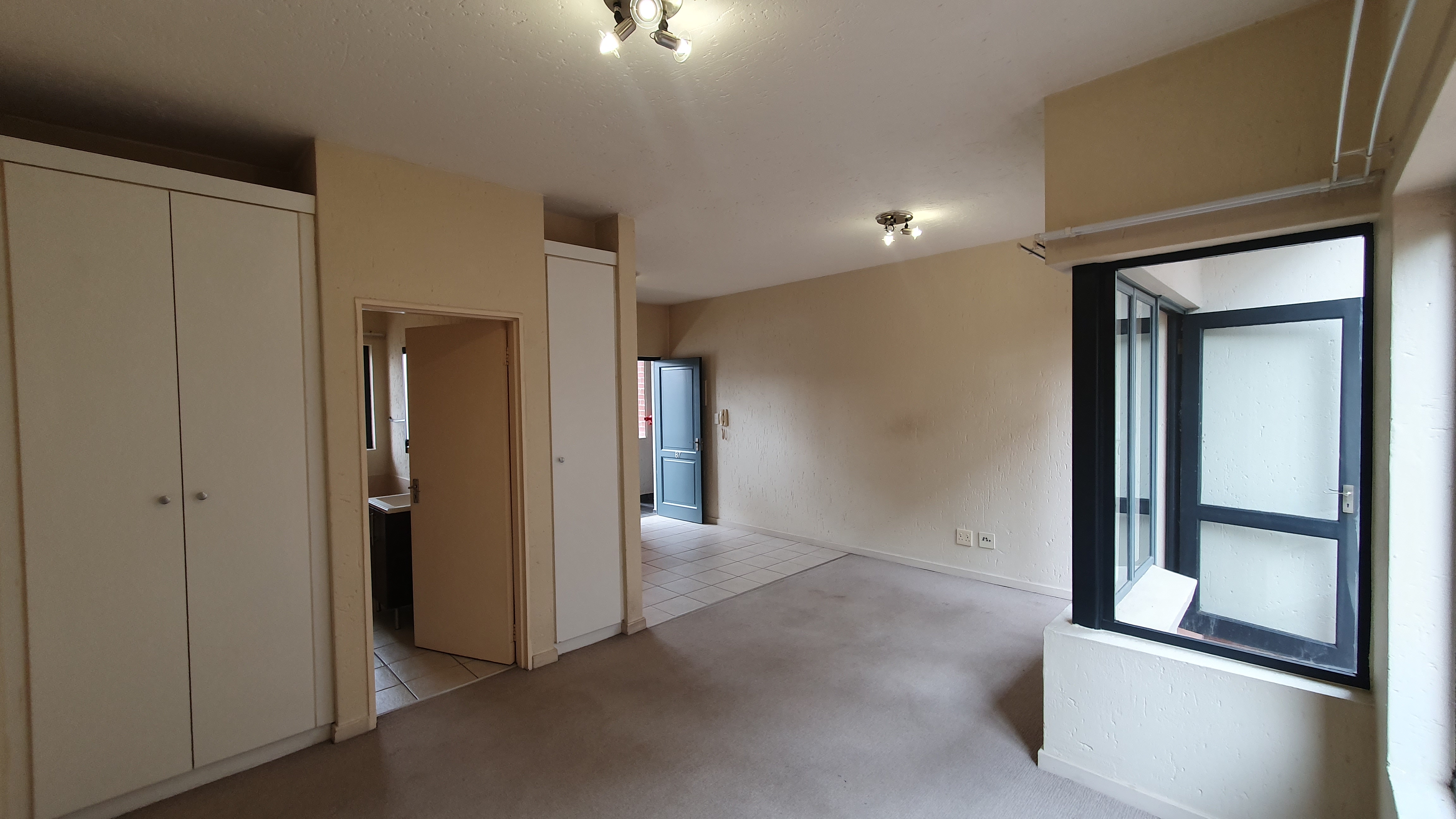 This is a ground floor STUDIO located in 456 Cypress in Ferndale, Randburg. Suitable for 1 person or a couple. The unit is completely open plan. On entrance, you will find the small but neat kitchen with everything you need. There is space for 1 under counter appliance and a single door fridge.The lounge area and bedroom area are carpeted. There are built in cupboards in the bedroom area. The bathroom offers a bath. The patio and courtyard are nice in size.