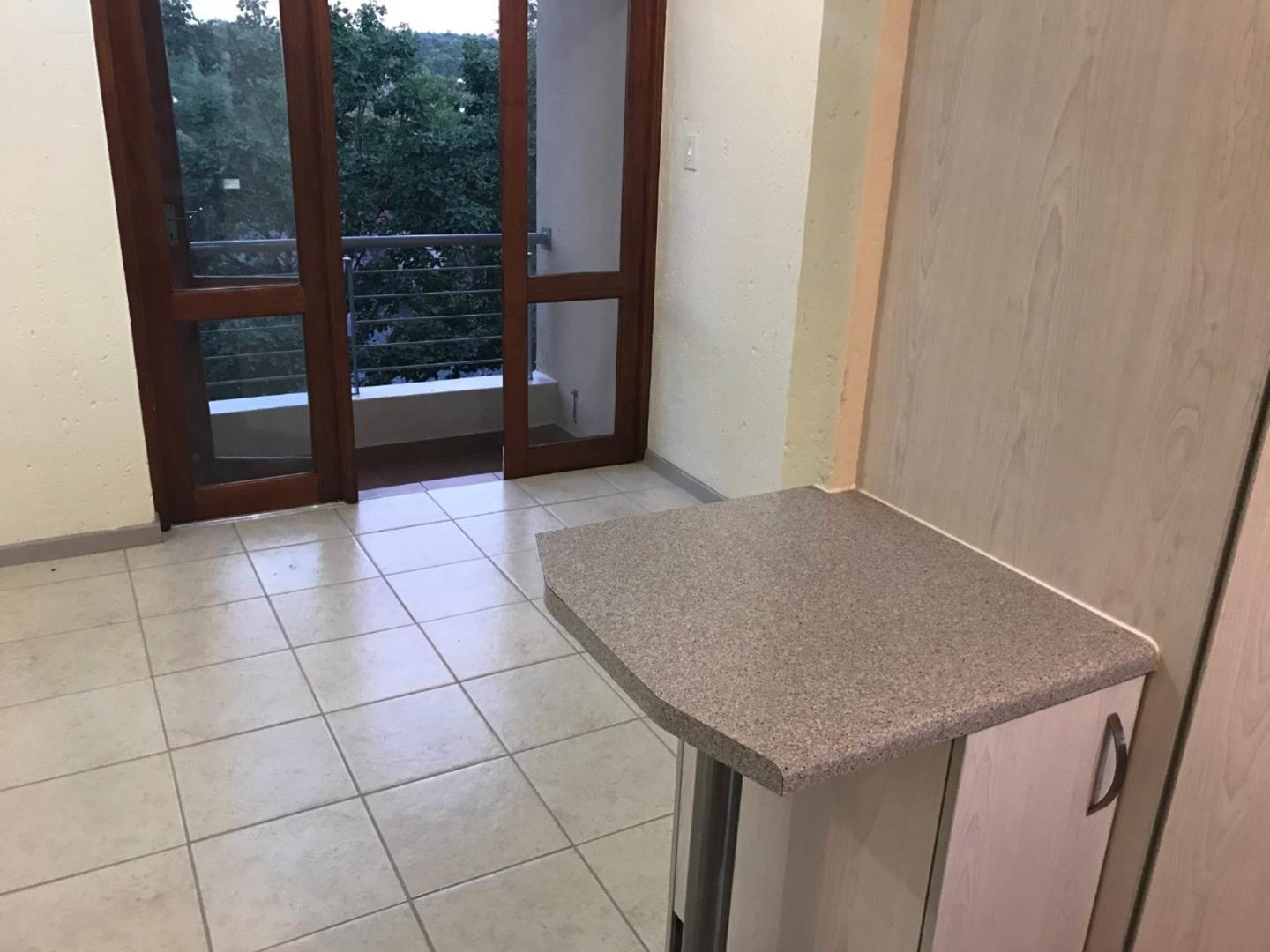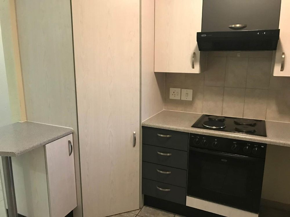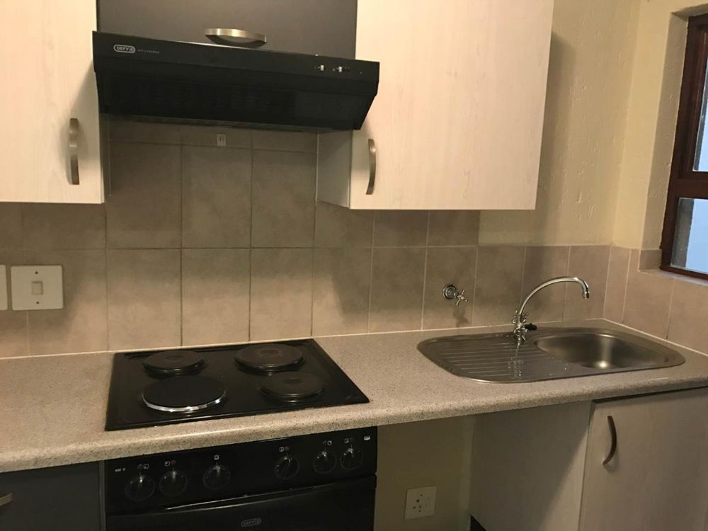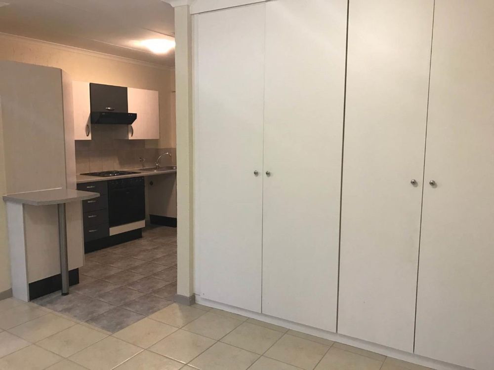 Safe and secure bachelor apartment on the top floor with scenic views. This unit is all open plan. Only the bathroom is separate. The bedroom area has built in cupboards and opens up to a small, covered and private patio. The bathroom is very spacious and has a bath. The kitchen has great cupboard space offering a big pantry cupboard. There is space for 1 under counter appliances.