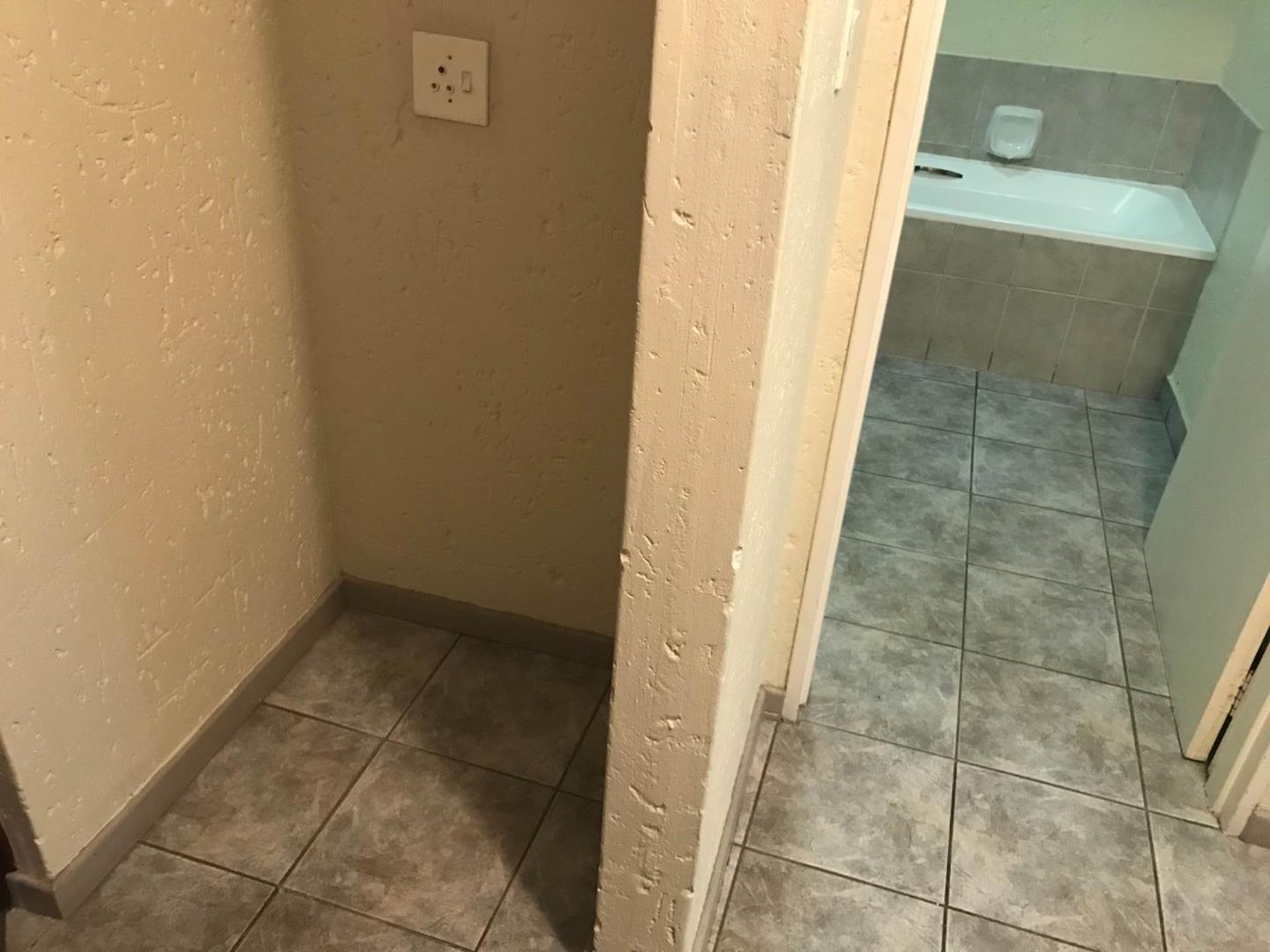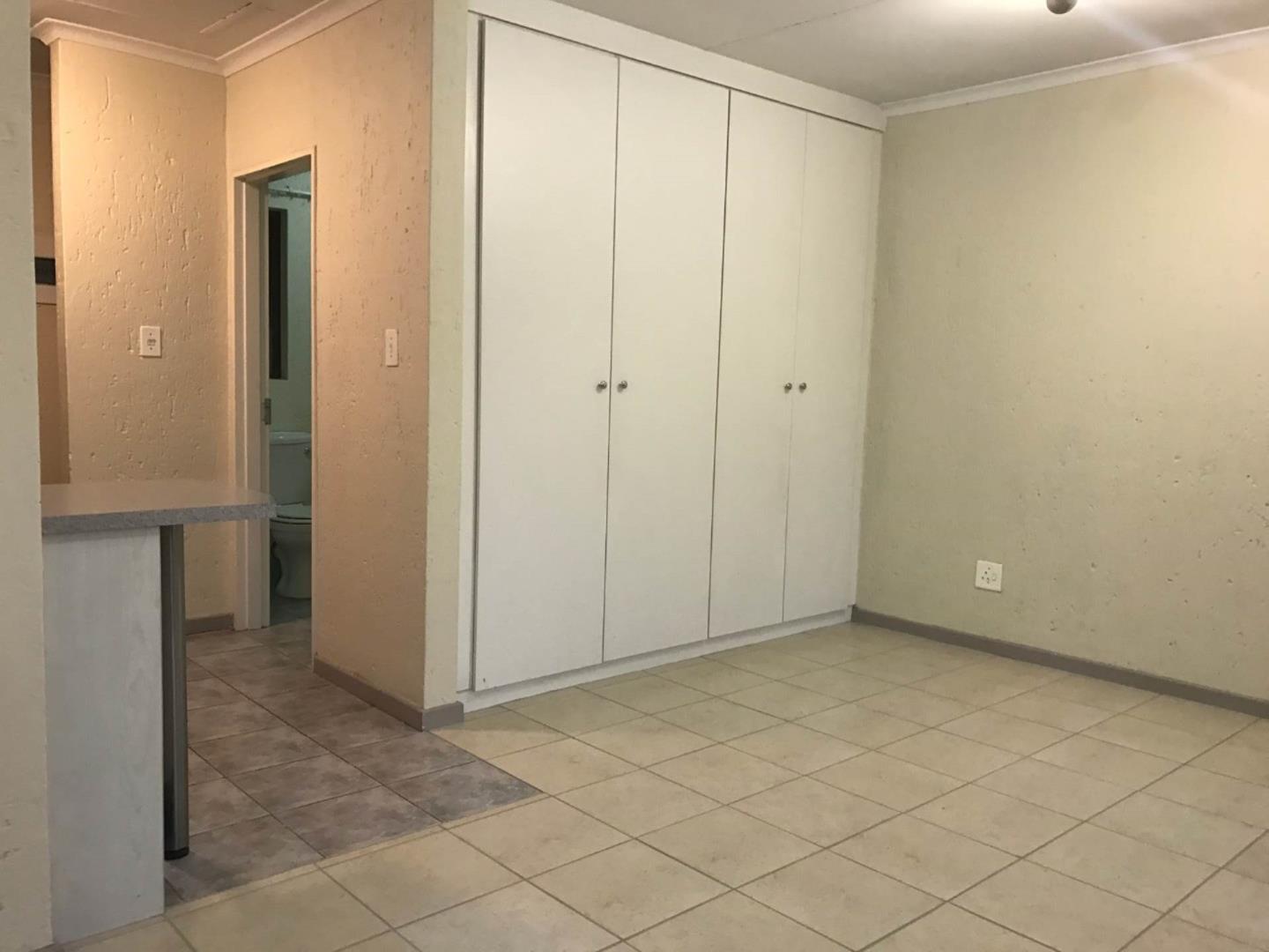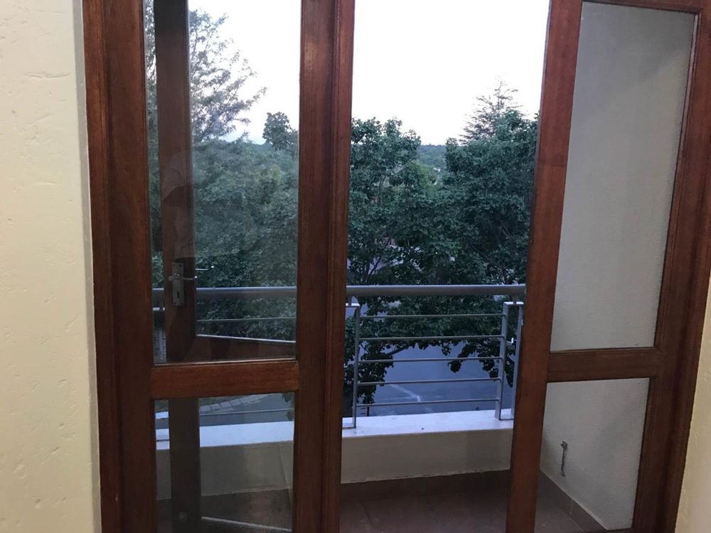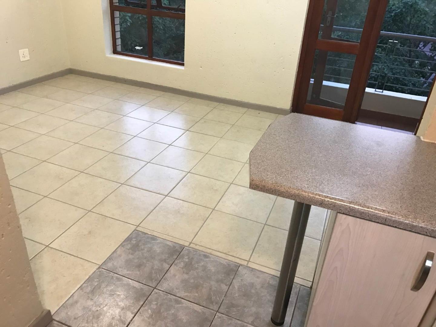 Safe and secure bachelor apartment on the top floor with scenic views. This unit is all open plan. Only the bathroom is separate. The bedroom area has built in cupboards and opens up to a small, covered and private patio. The bathroom is very spacious and has a bath. The kitchen has great cupboard space offering a big pantry cupboard. There is space for 1 under counter appliances.