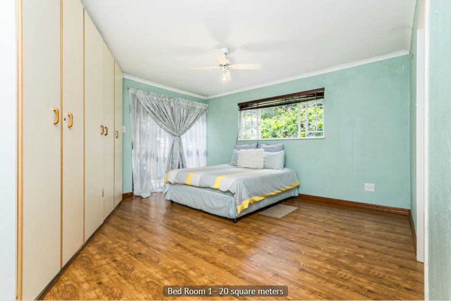 A passage off the lounge leads to the bedroom wing, where two bedrooms share a neatly appointed family bathroom. At the end of the passage, the main bedroom offers a peaceful retreat with ample space, a full en-suite bathroom, and a private storeroom for added convenience.