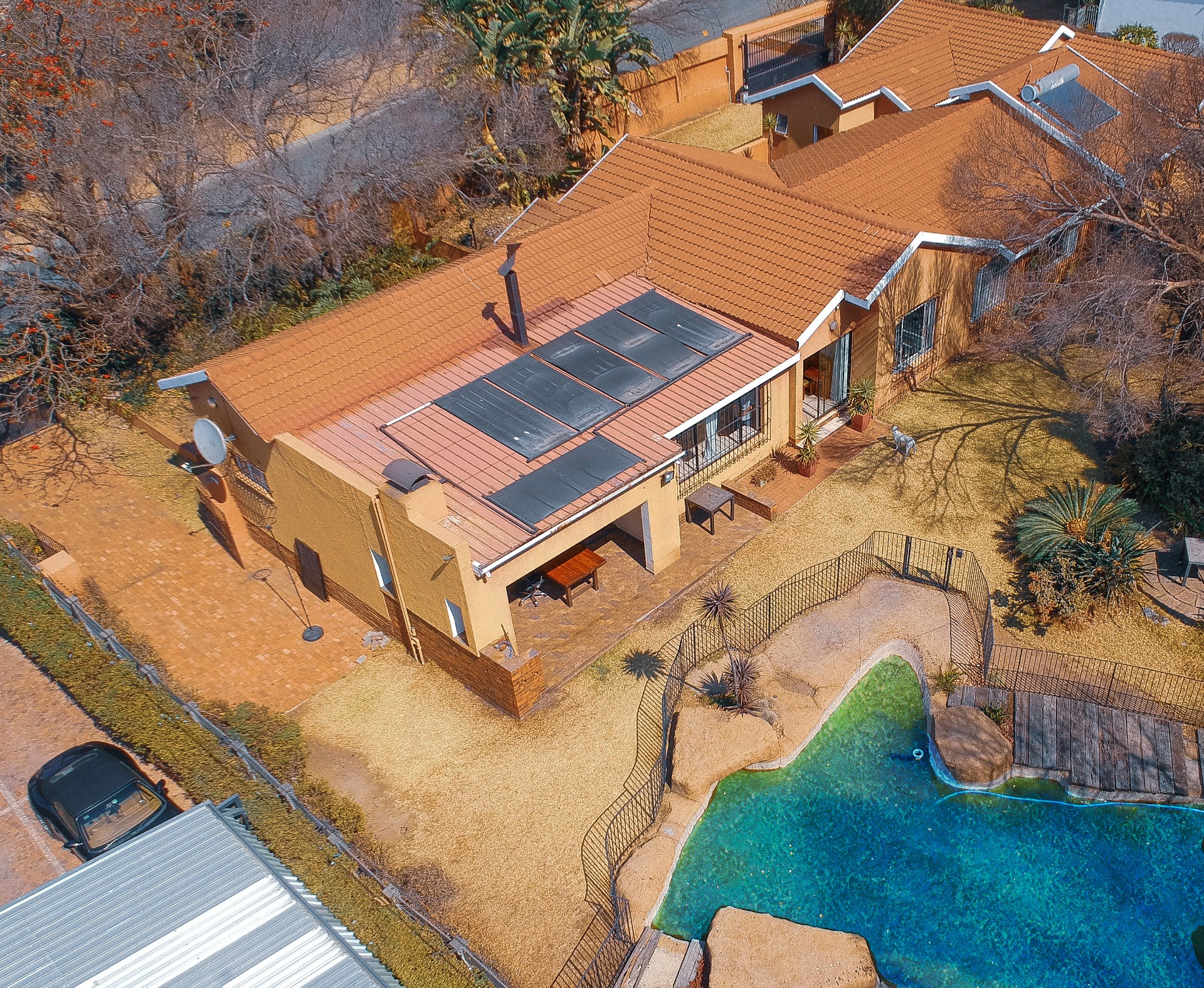 The staff quarters, complete with an en-suite bathroom and a separate entrance, offer the potential to be converted into a rental flatlet, making it an excellent opportunity for extra income.
