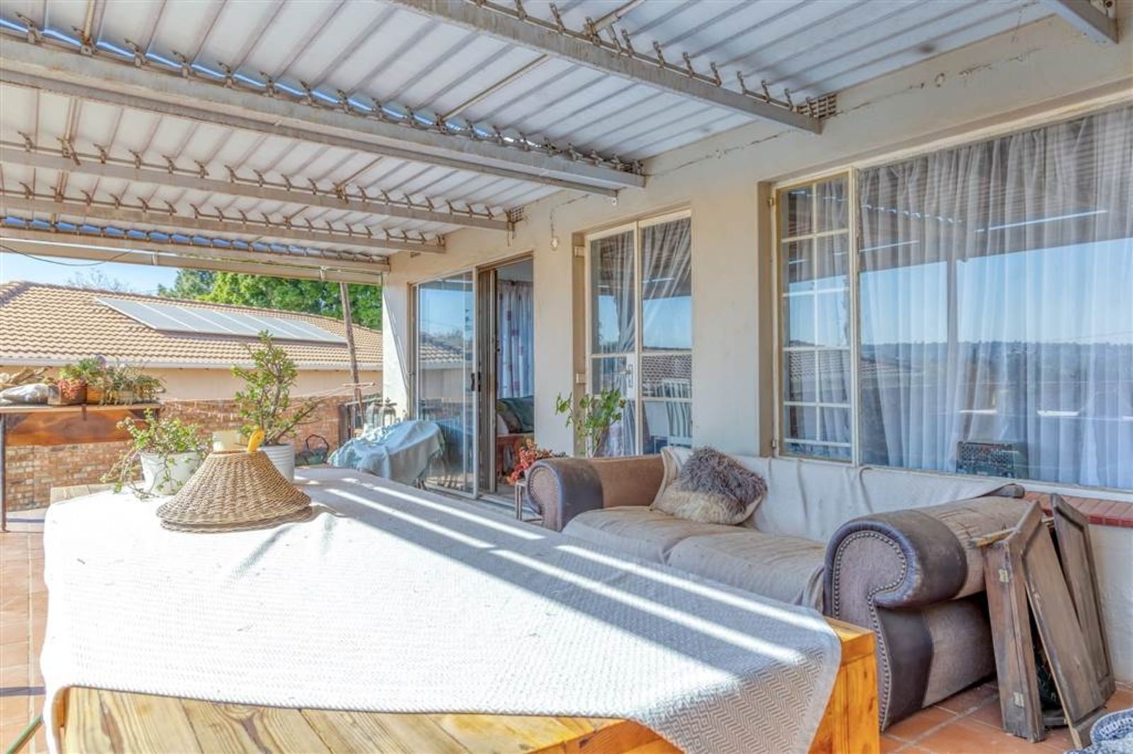 Spacious Main Residence: Enjoy the expansive 4-bedroom main house, boasting 2.5 bathrooms, two large lounges, a separate living room, and a well-equipped kitchen with a walk-in pantry and scullery. It opens onto a large covered patio overlooking a private garden with a swimming pool. Prepaid electricity ensures cost-effective living, and it's pet-friendly (small to medium-sized).