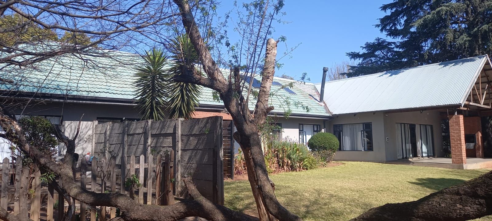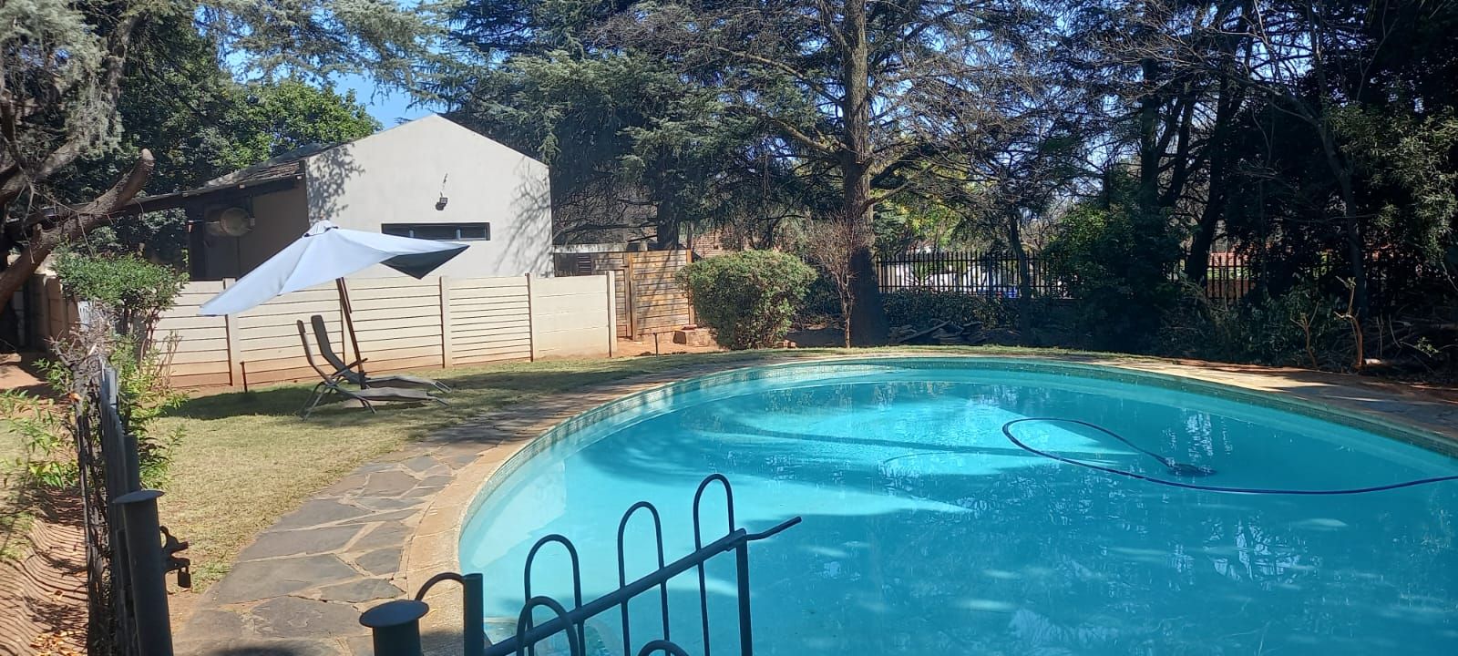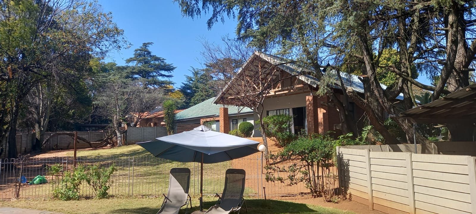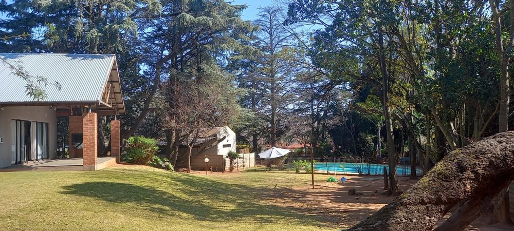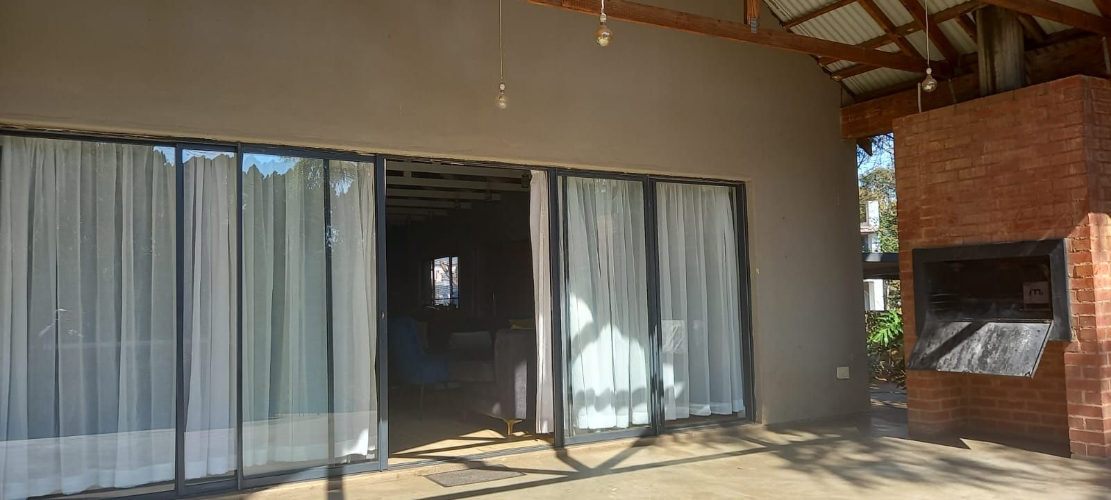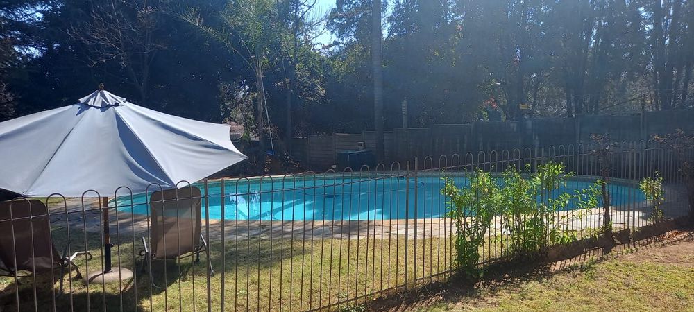 Inviting patio, braai area, lush garden, sparkling swimming pool, and lapa for guest enjoyment.