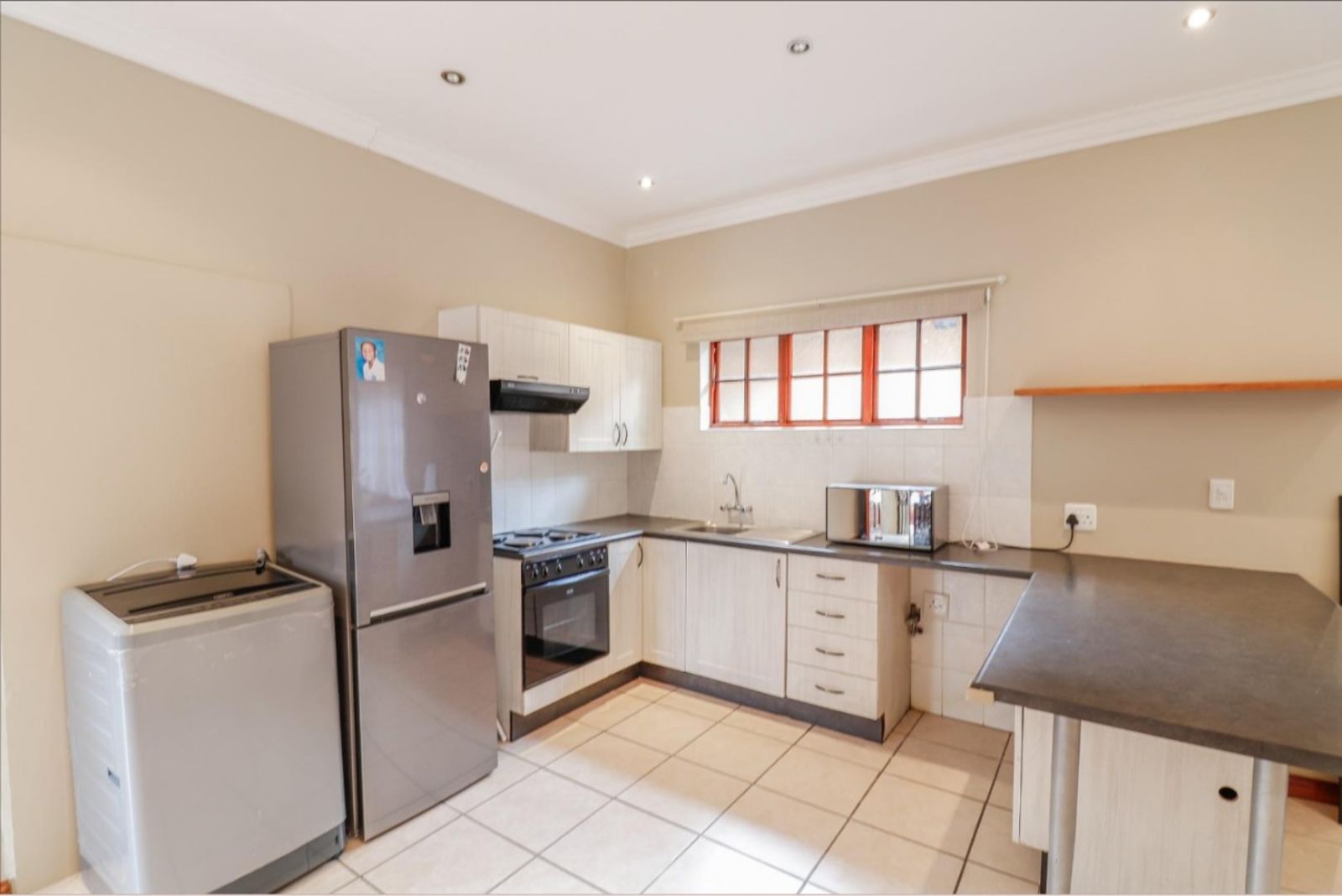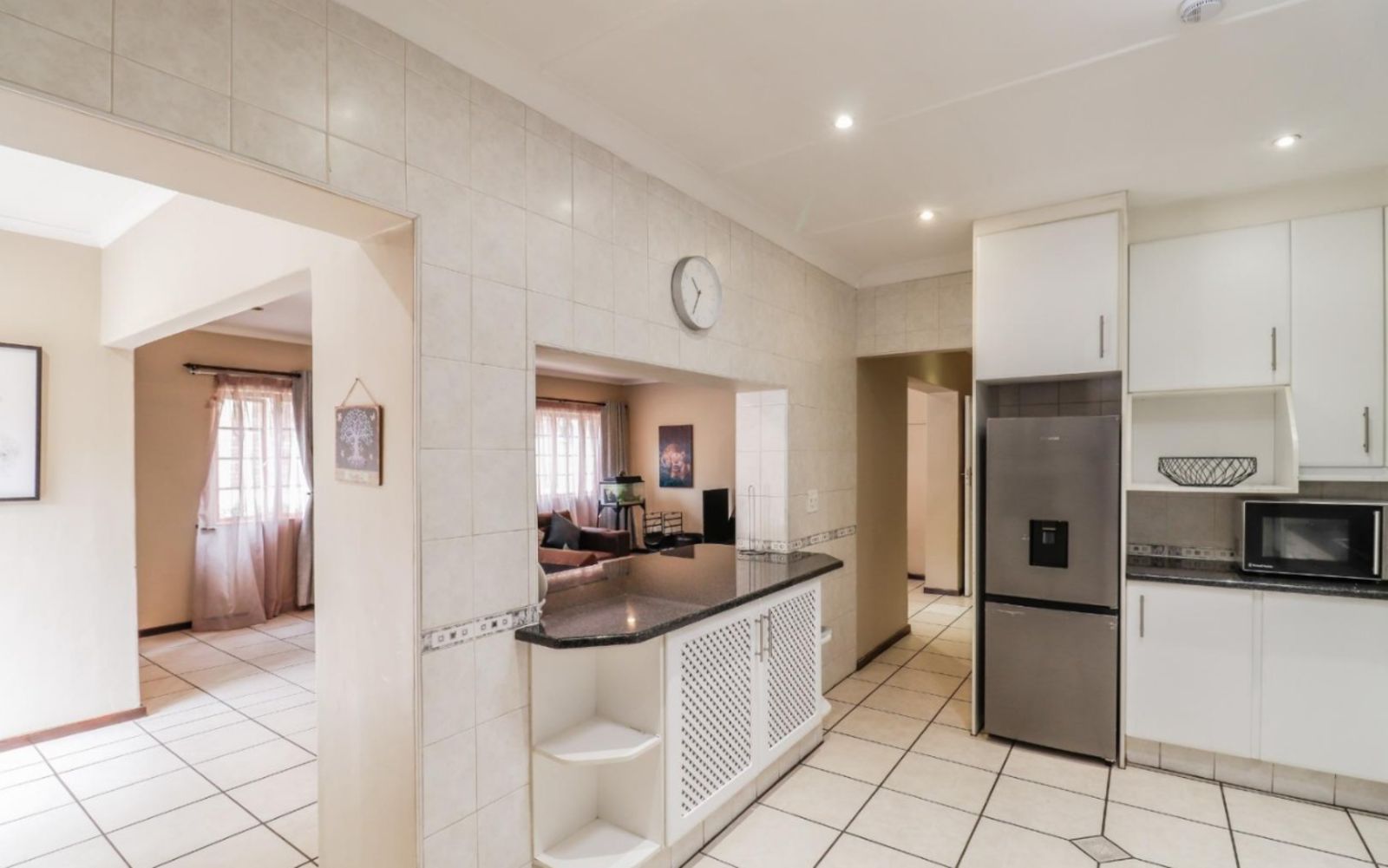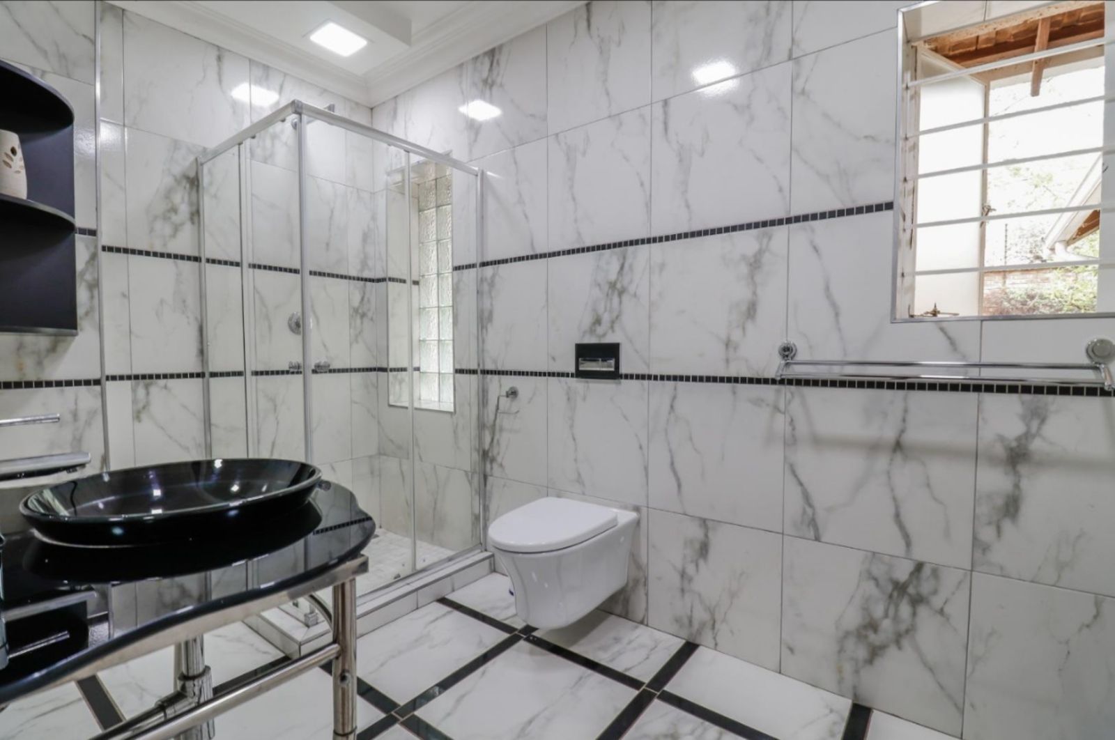 This modern and spacious home in the heart of Ferndale, Randburg offers versatile living with exceptional entertainment potential. The property features four well-sized bedrooms, with a fifth room currently used as an office conveniently located near the main entrance and bar area, making it ideal for working from home. The home boasts a large lounge and an expansive dining room that flow seamlessly into a generous entertainment bar area, perfect for hosting guests. The kitchen is well-appointed with a separate scullery, complemented by a dedicated server room for added functionality. The main bedroom includes an en-suite bathroom, while a full common bathroom serves the additional bedrooms, along with a separate guest toilet located near the bar area.
