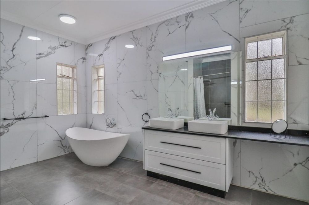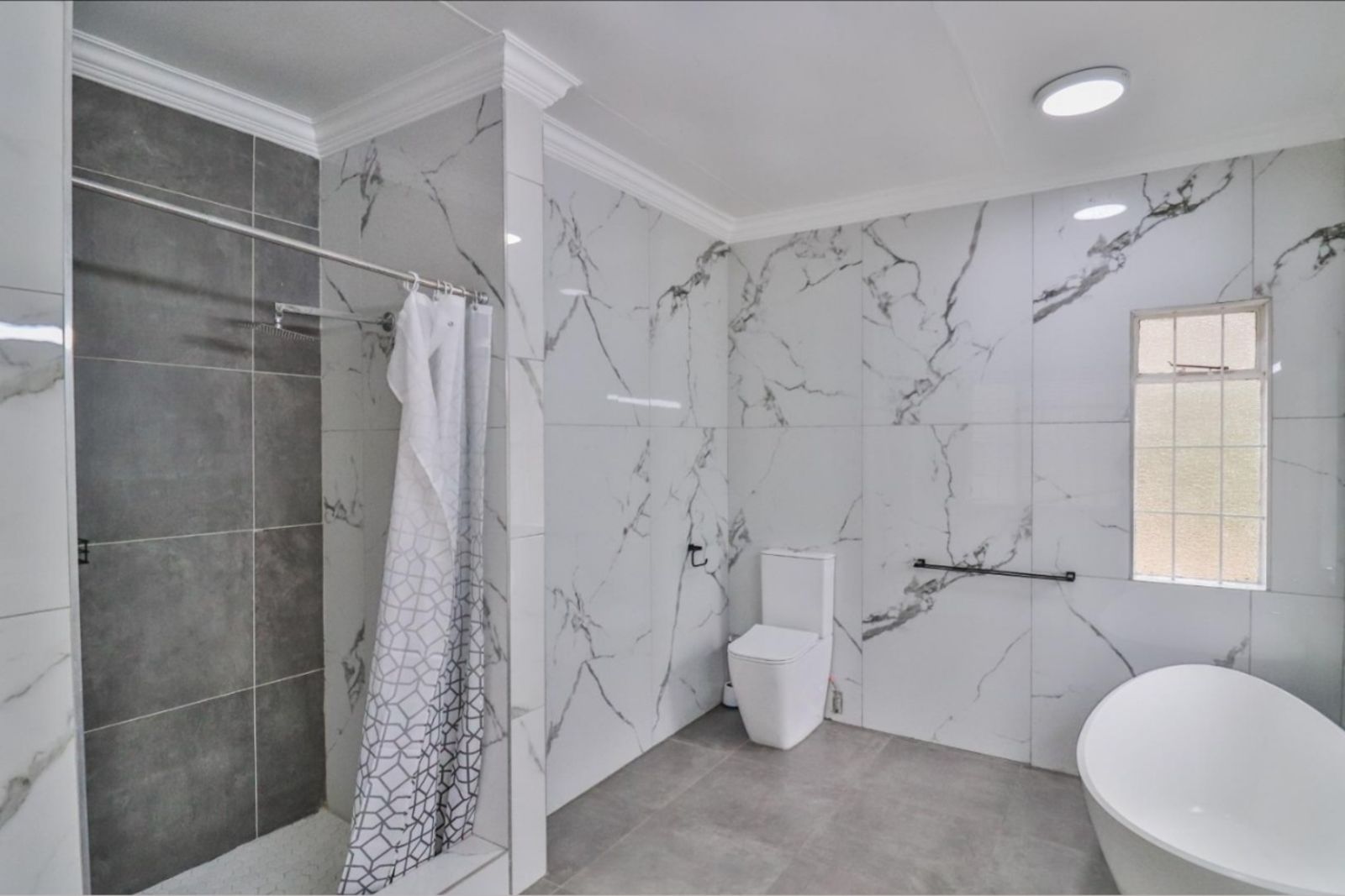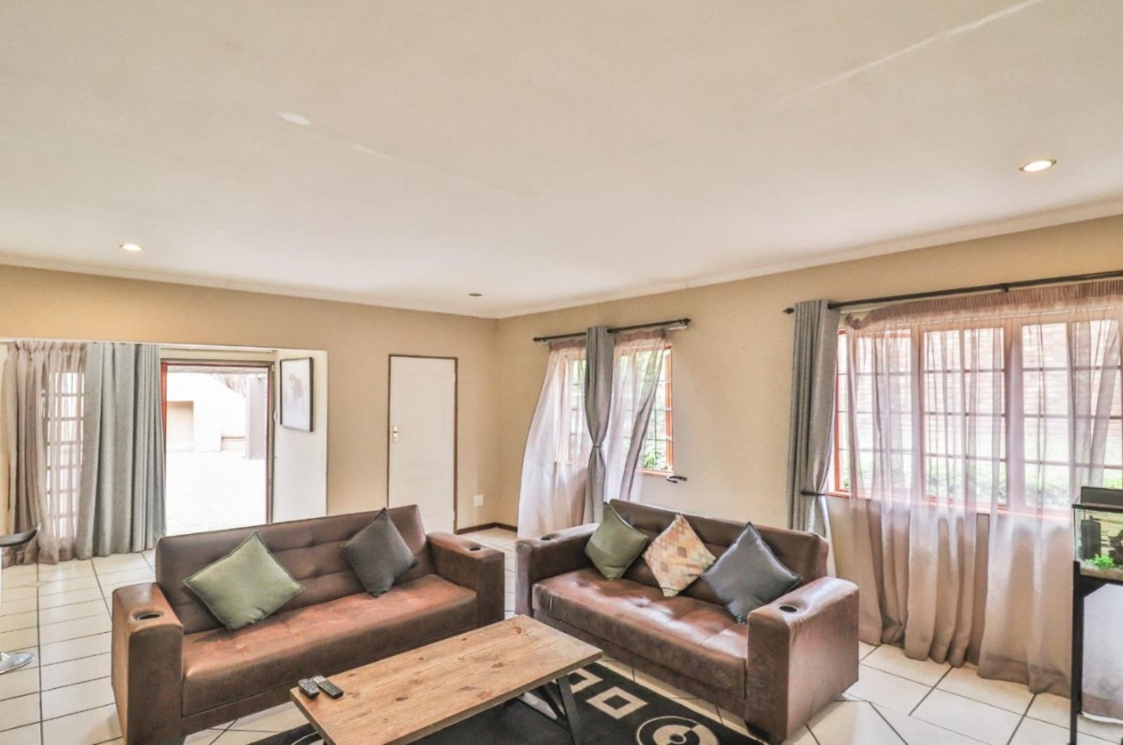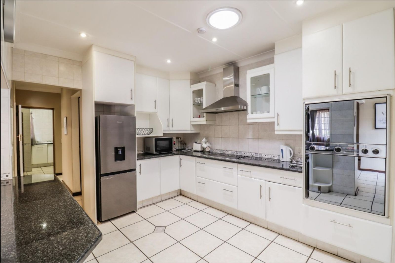 This modern and spacious home in the heart of Ferndale, Randburg offers versatile living with exceptional entertainment potential. The property features four well-sized bedrooms, with a fifth room currently used as an office conveniently located near the main entrance and bar area, making it ideal for working from home. The home boasts a large lounge and an expansive dining room that flow seamlessly into a generous entertainment bar area, perfect for hosting guests. The kitchen is well-appointed with a separate scullery, complemented by a dedicated server room for added functionality. The main bedroom includes an en-suite bathroom, while a full common bathroom serves the additional bedrooms, along with a separate guest toilet located near the bar area.