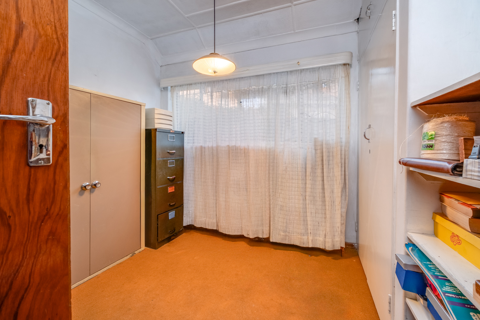 The third bedroom includes built-in cupboards, carpet flooring with teak beneath, and a large North-facing window.