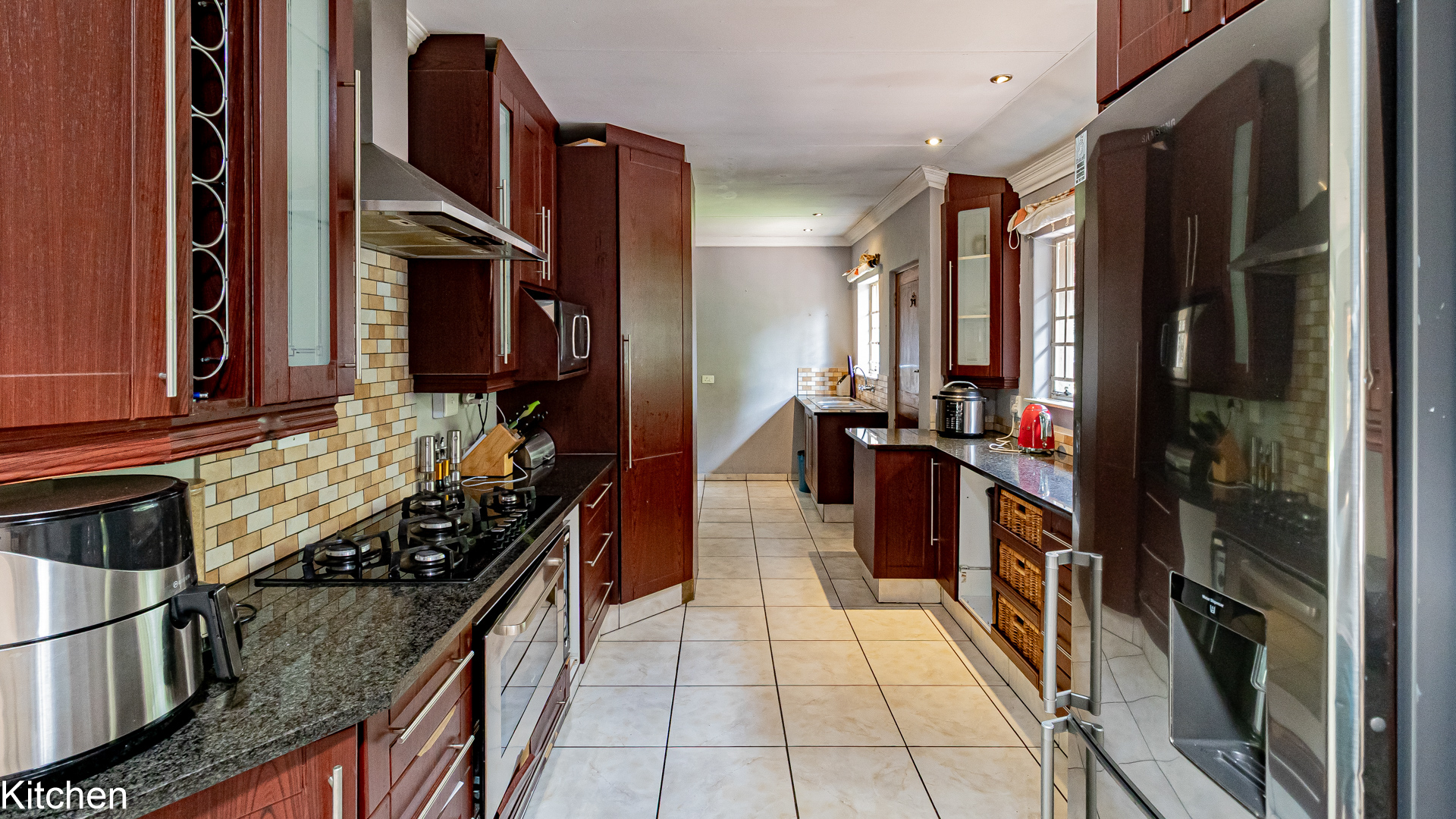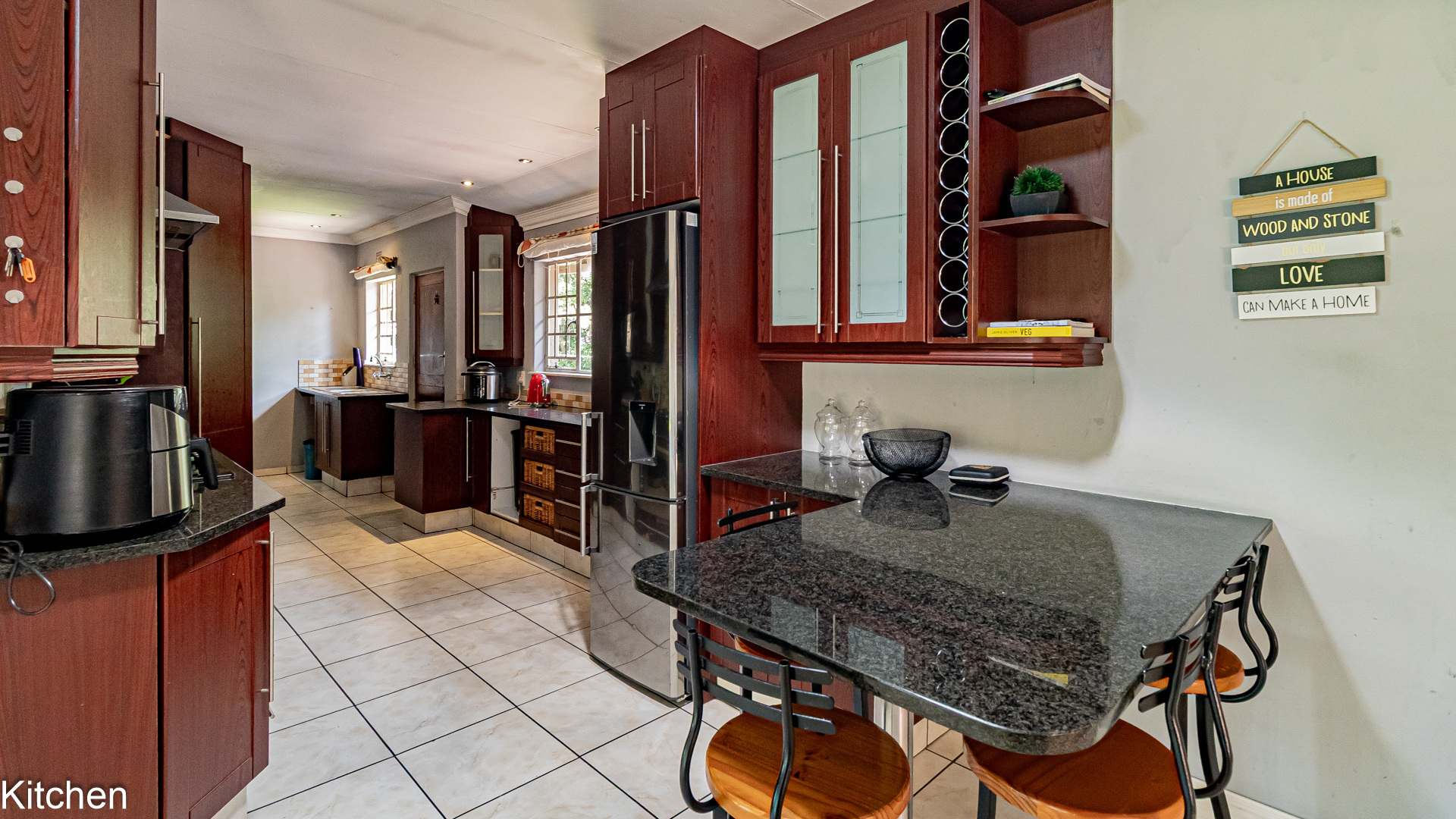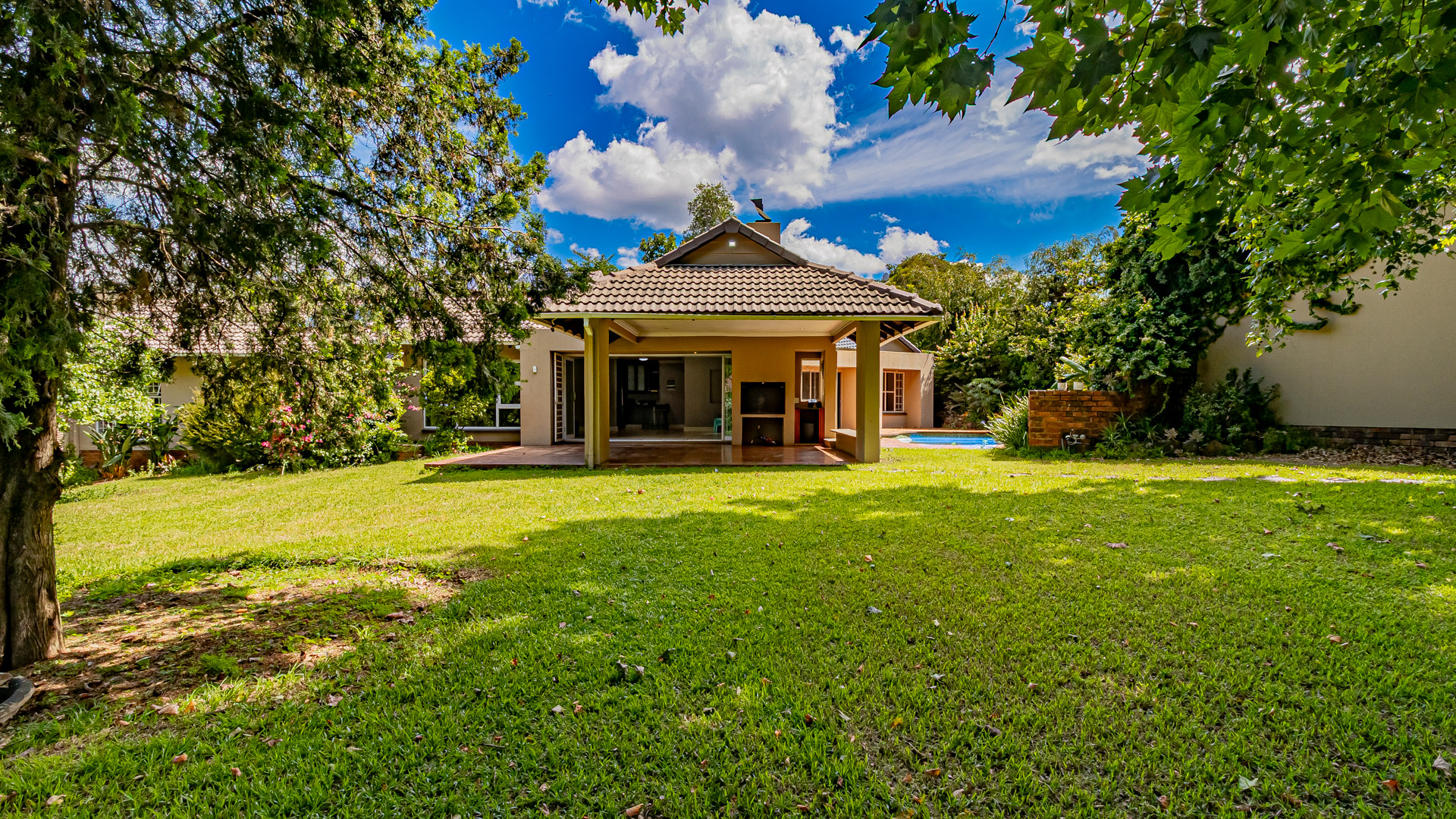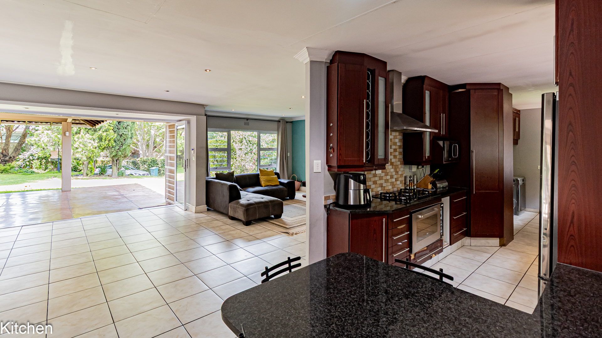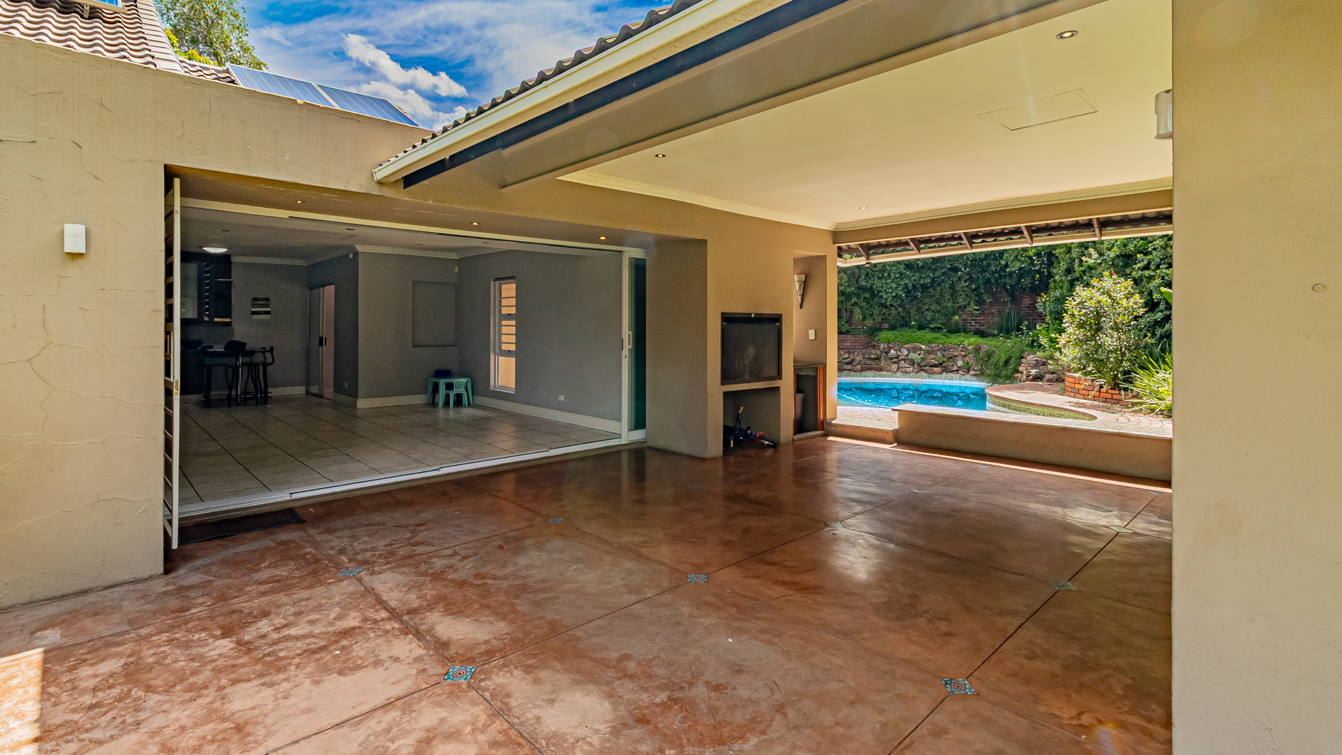 A large covered patio with a built-in braai welcomes you into the home and overlooks the swimming pool and established garden, creating an inviting space for outdoor entertaining and relaxation.
