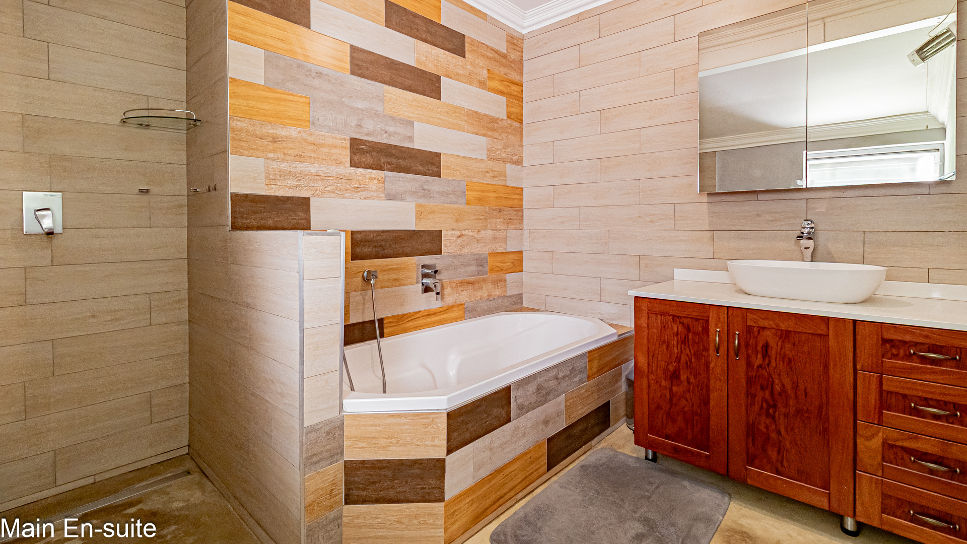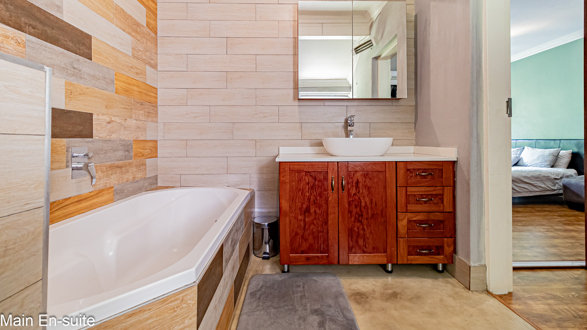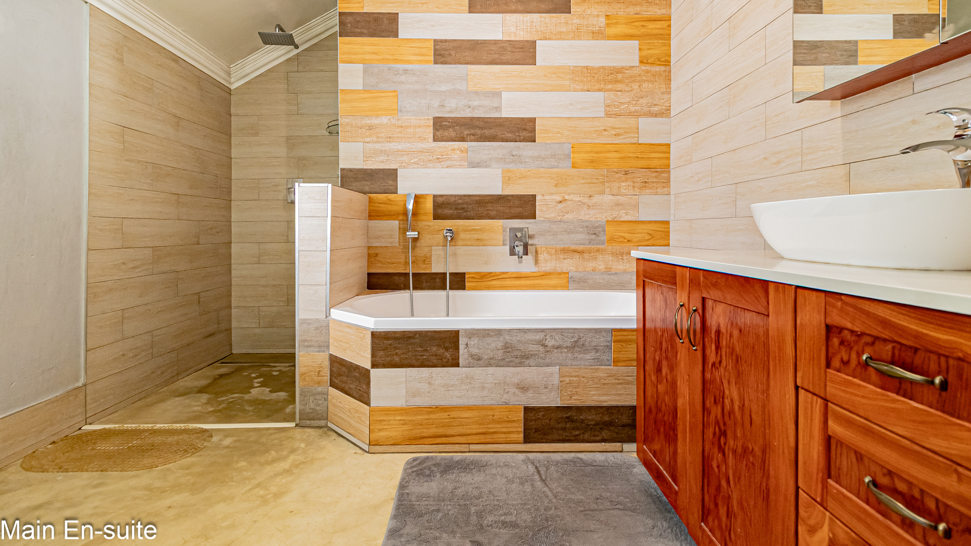 The main living wing comprises three generously sized bedrooms and two bathrooms. The main bedroom is particularly spacious and features a walk-in wardrobe along with a beautiful full en-suite bathroom.
