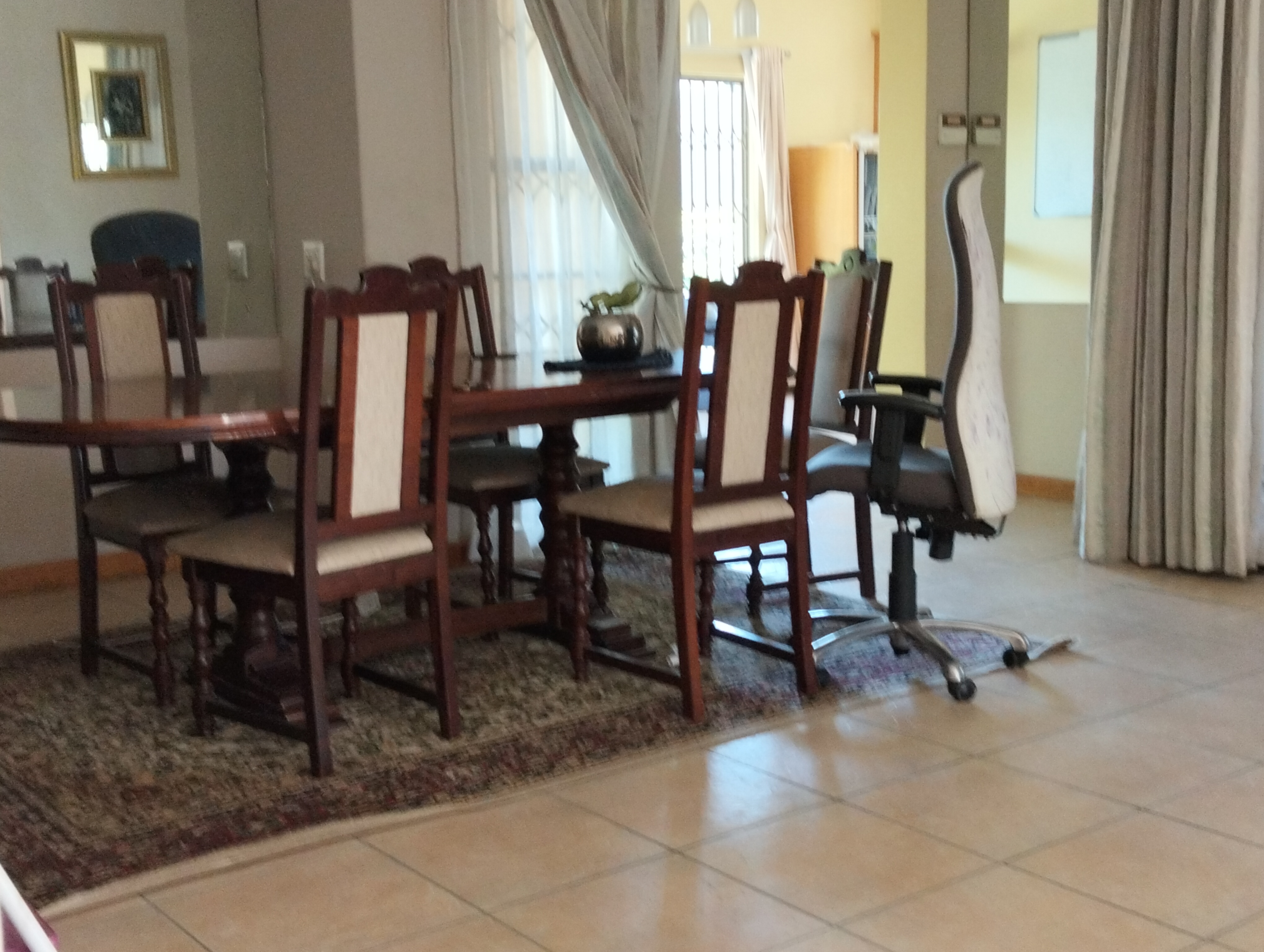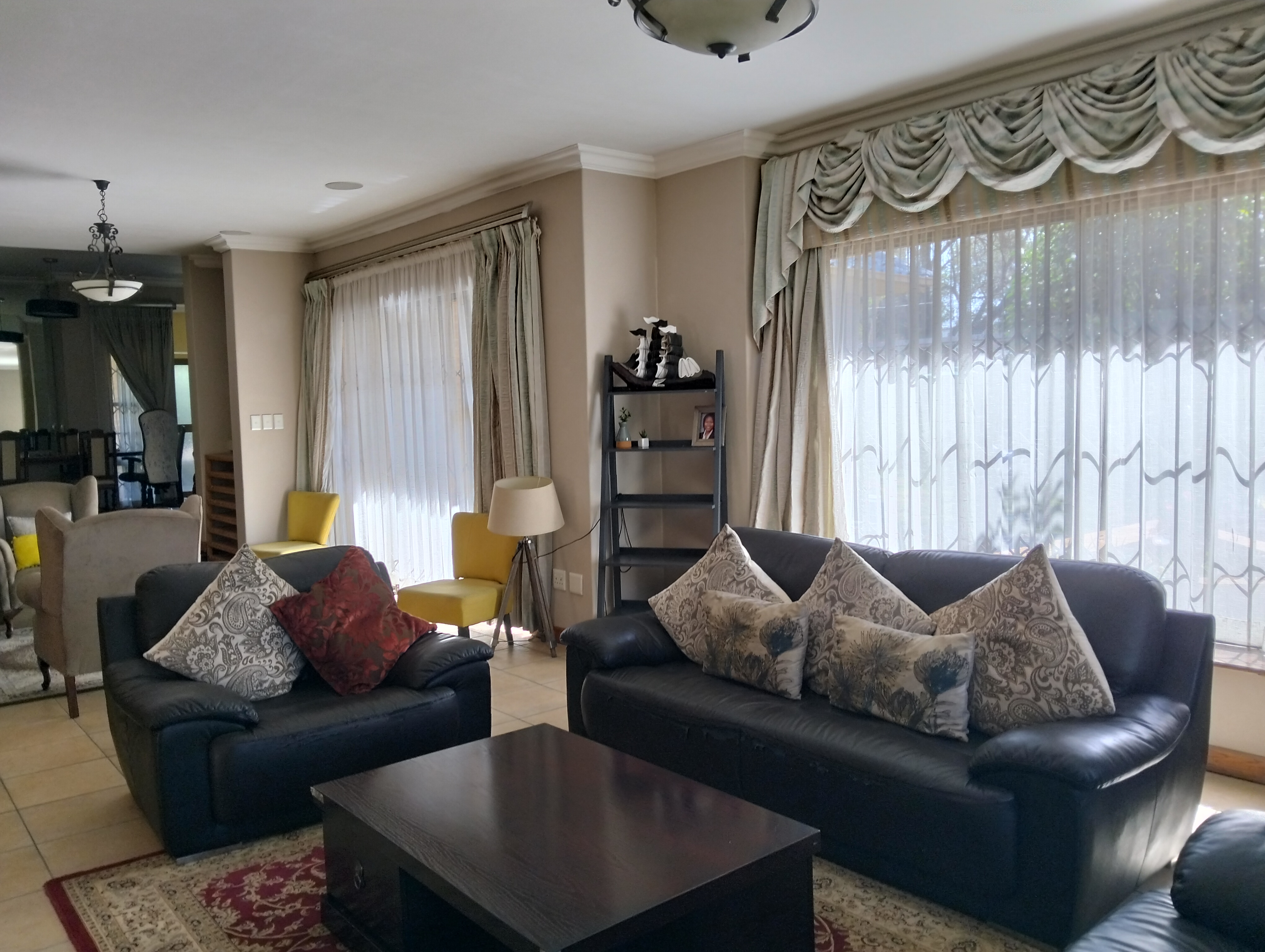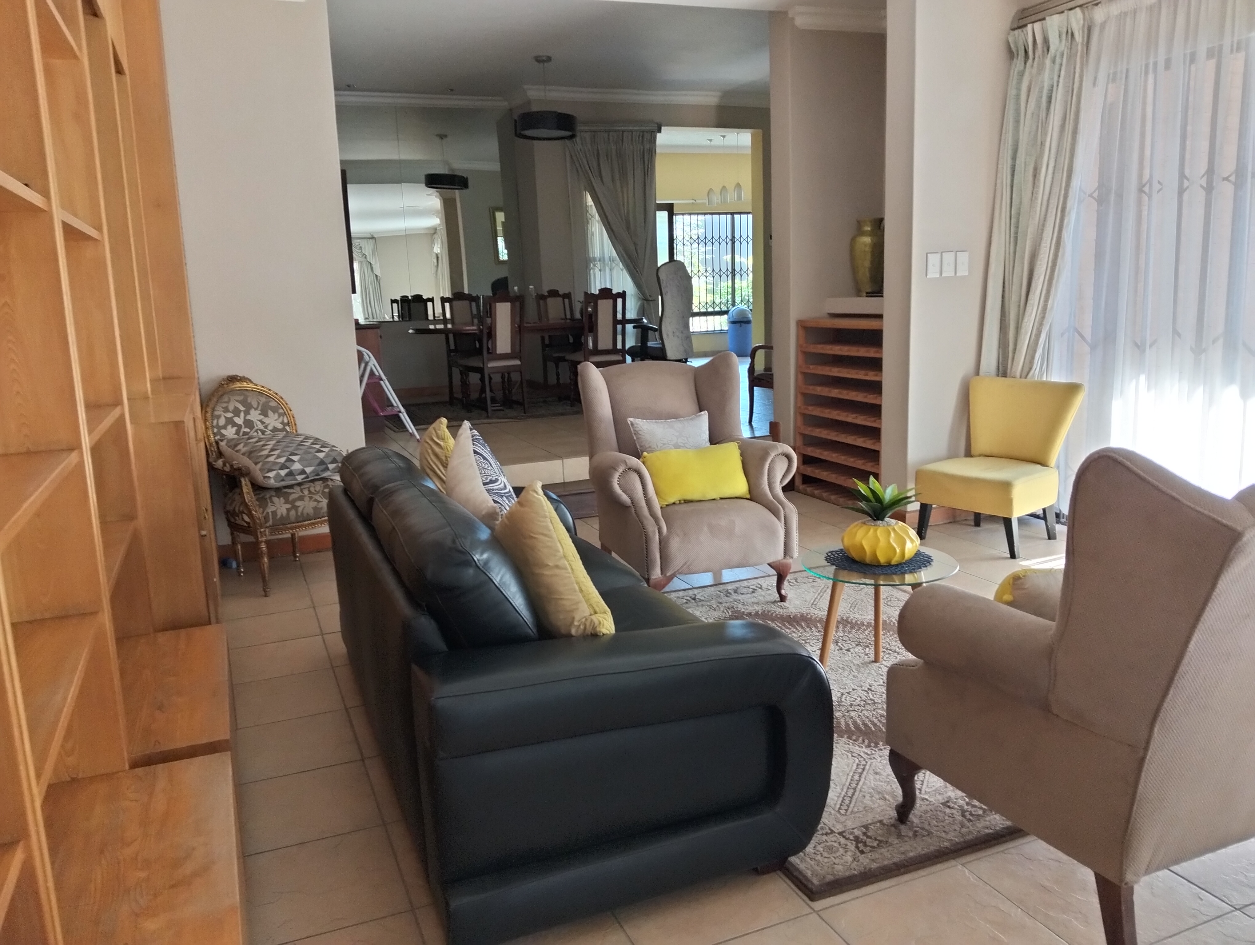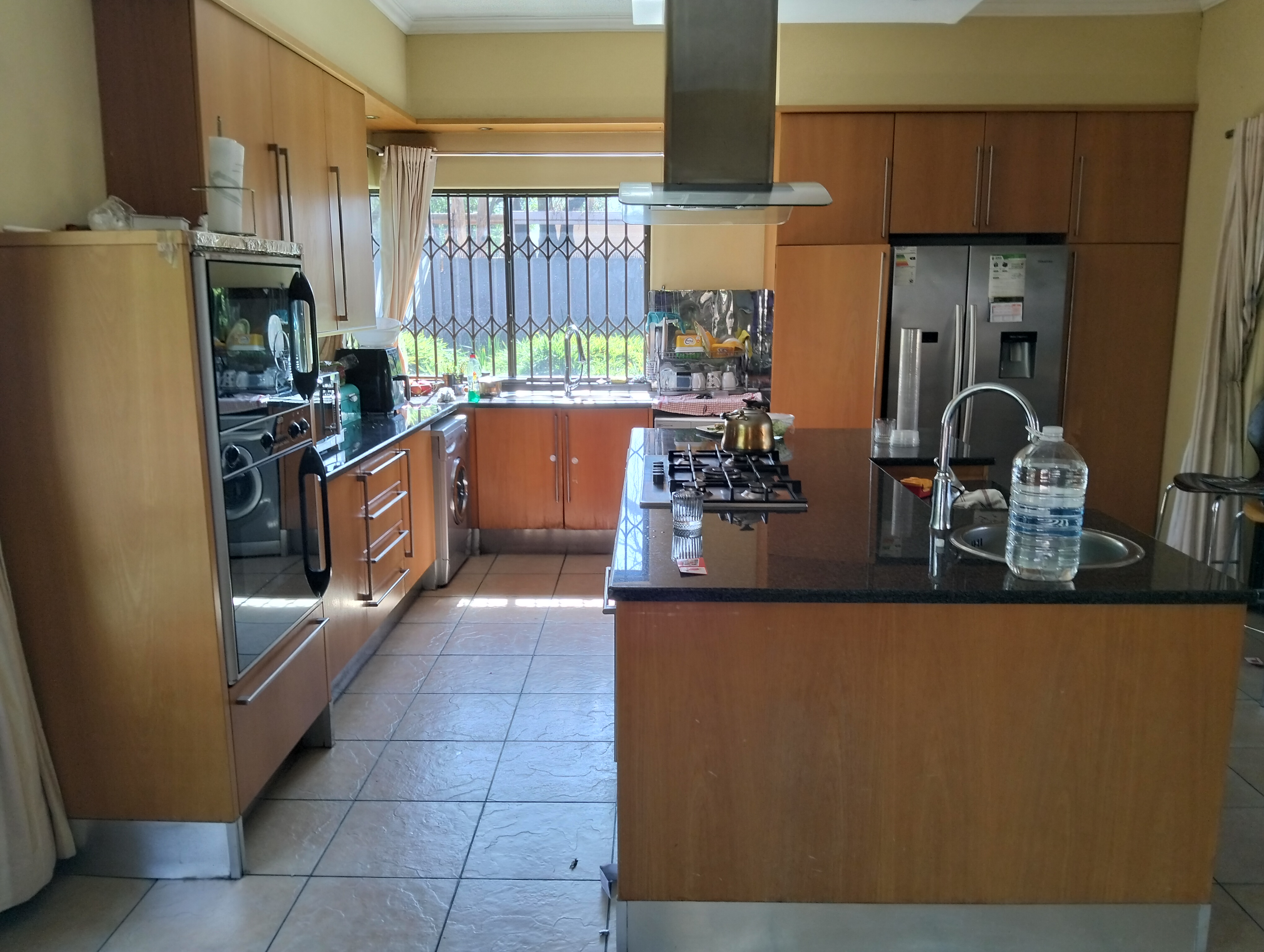 The house offers two lounges and dining room with a spacious kitchen and its 5 plates gas stove and a built in braai area.
