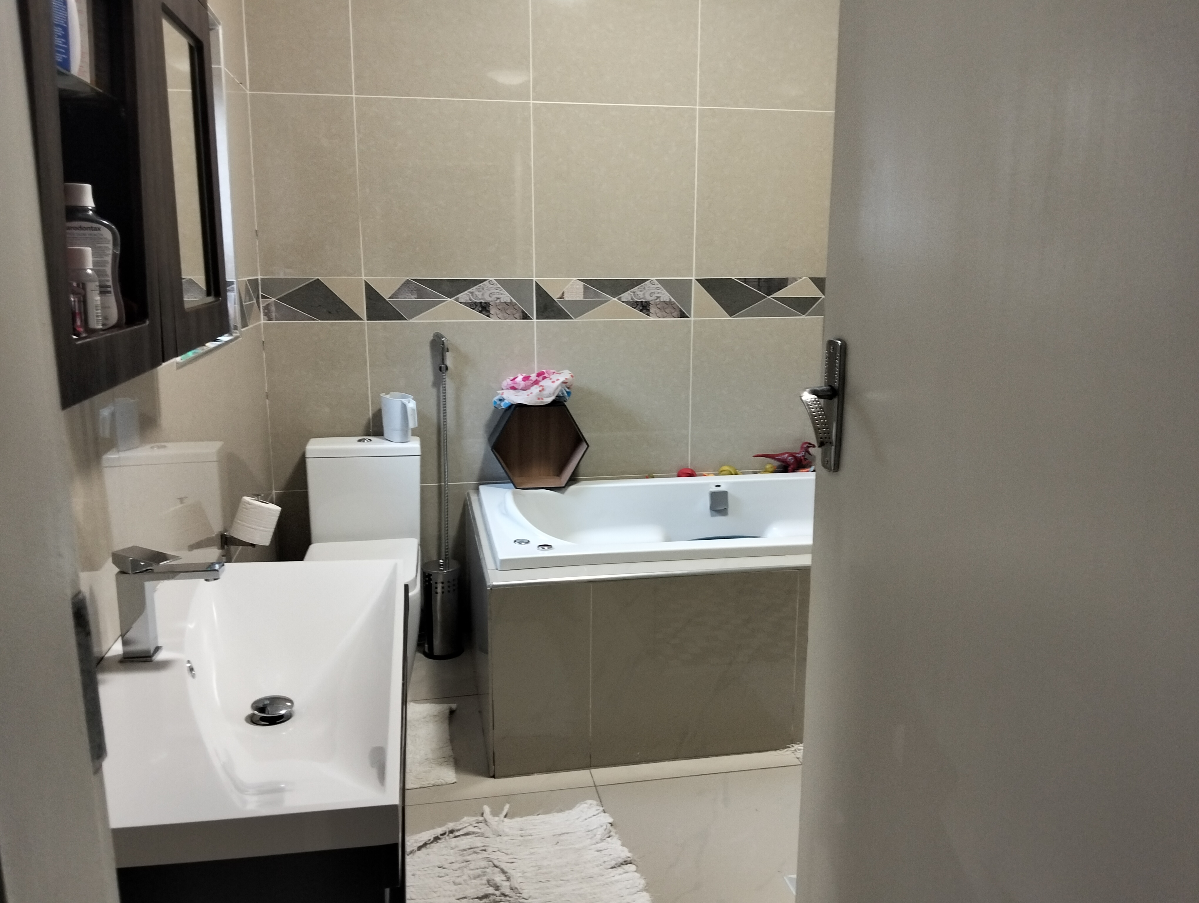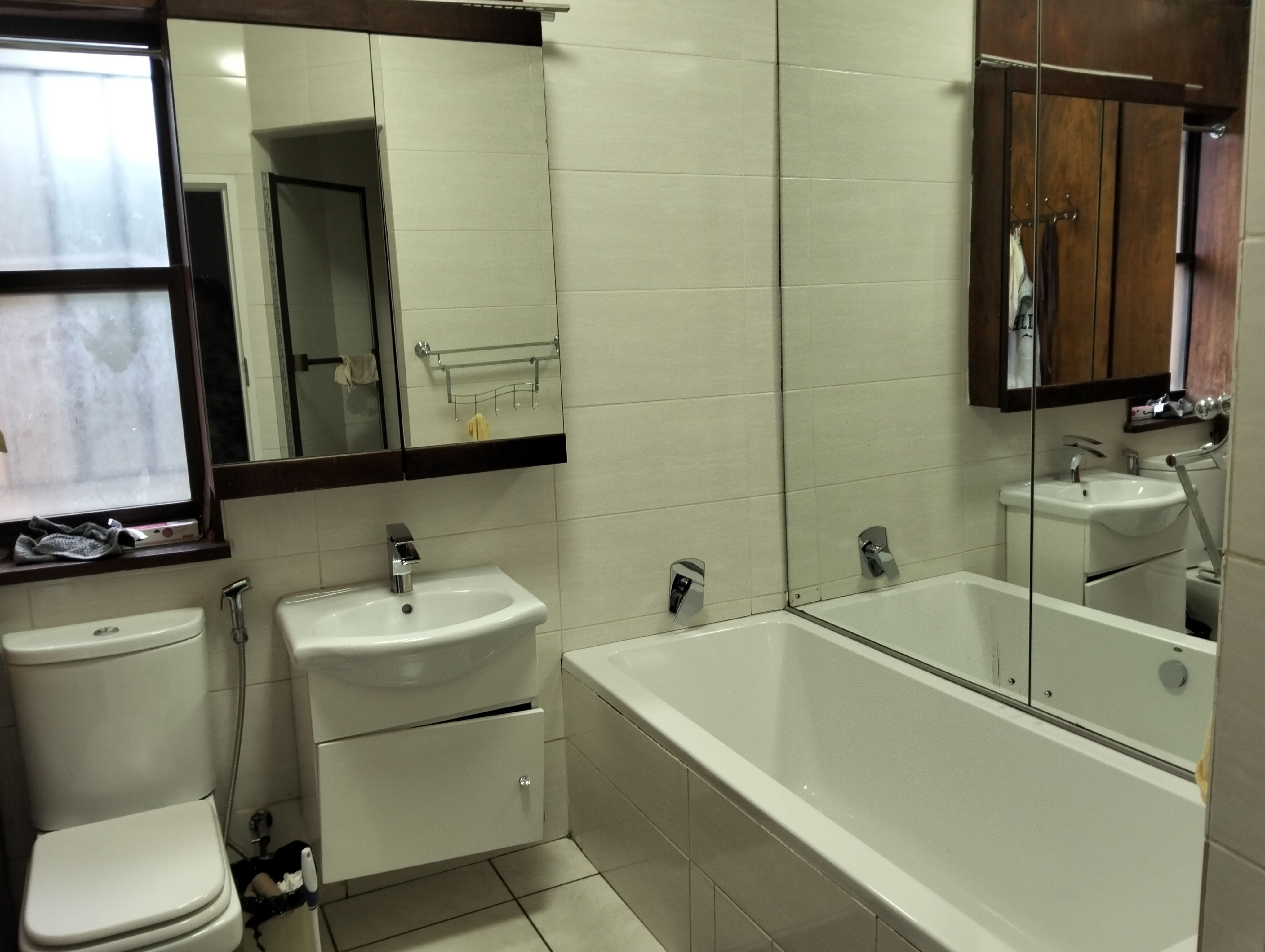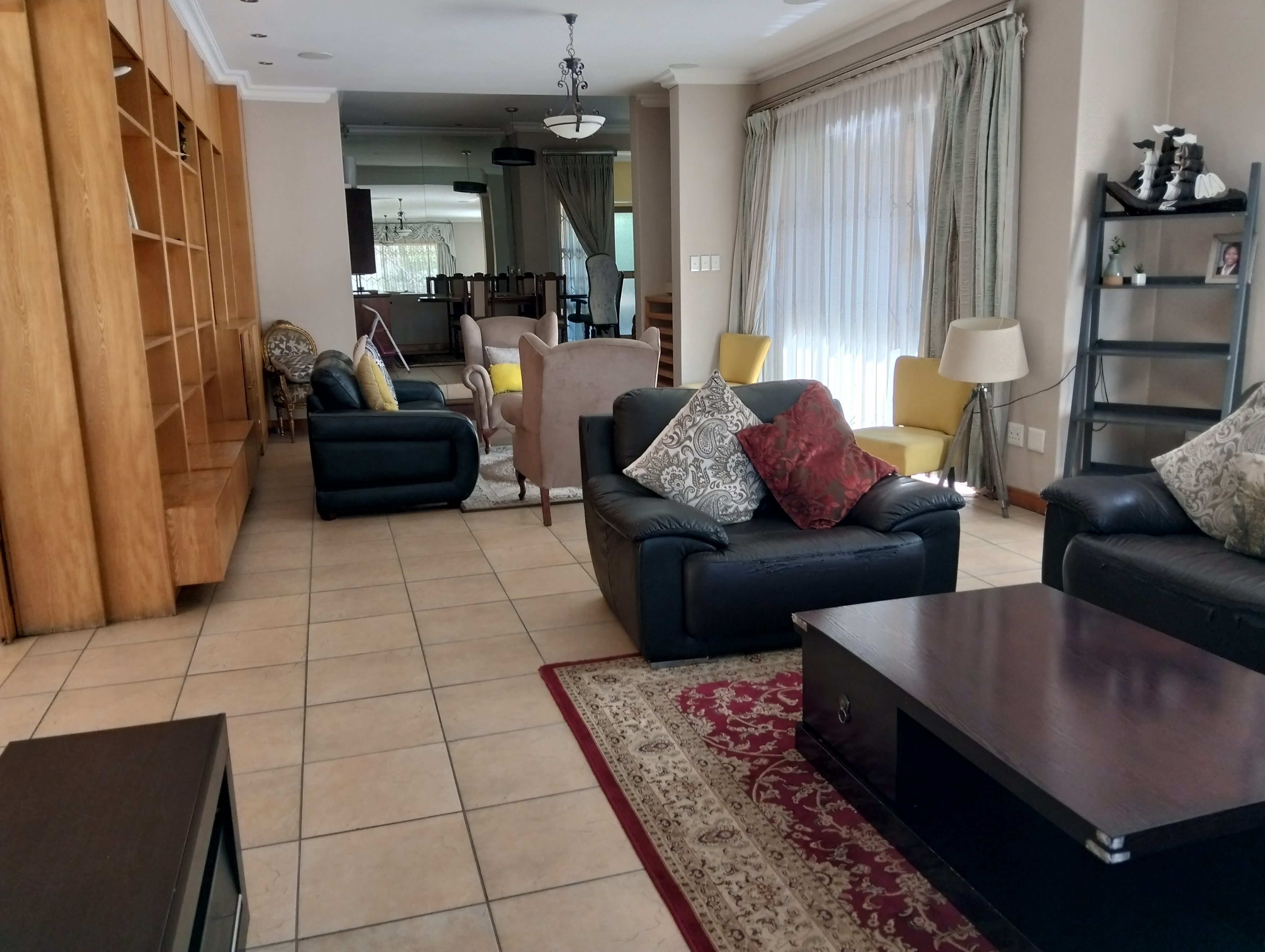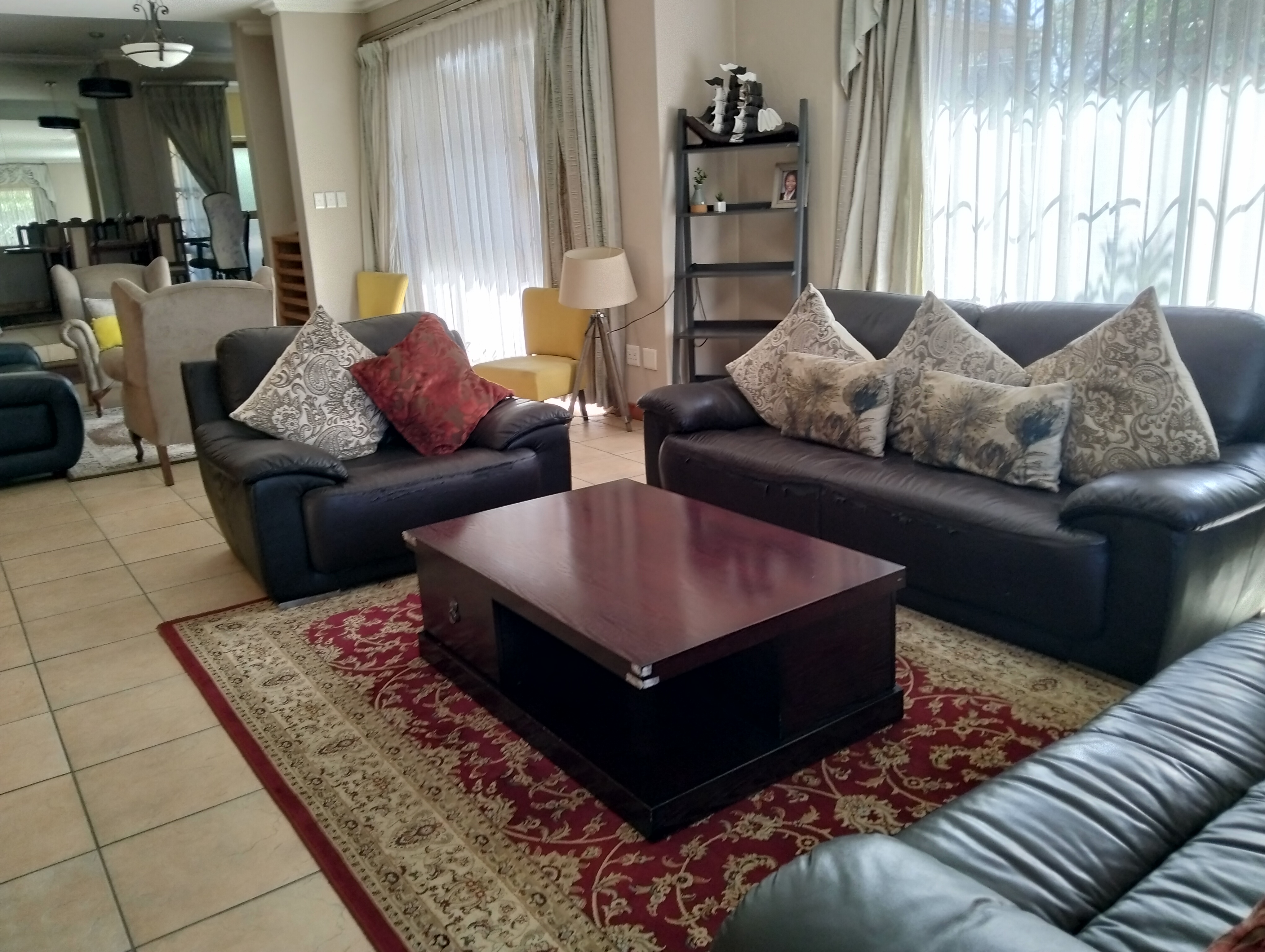 The house offers two lounges and dining room with a spacious kitchen and its 5 plates gas stove and a built in braai area.