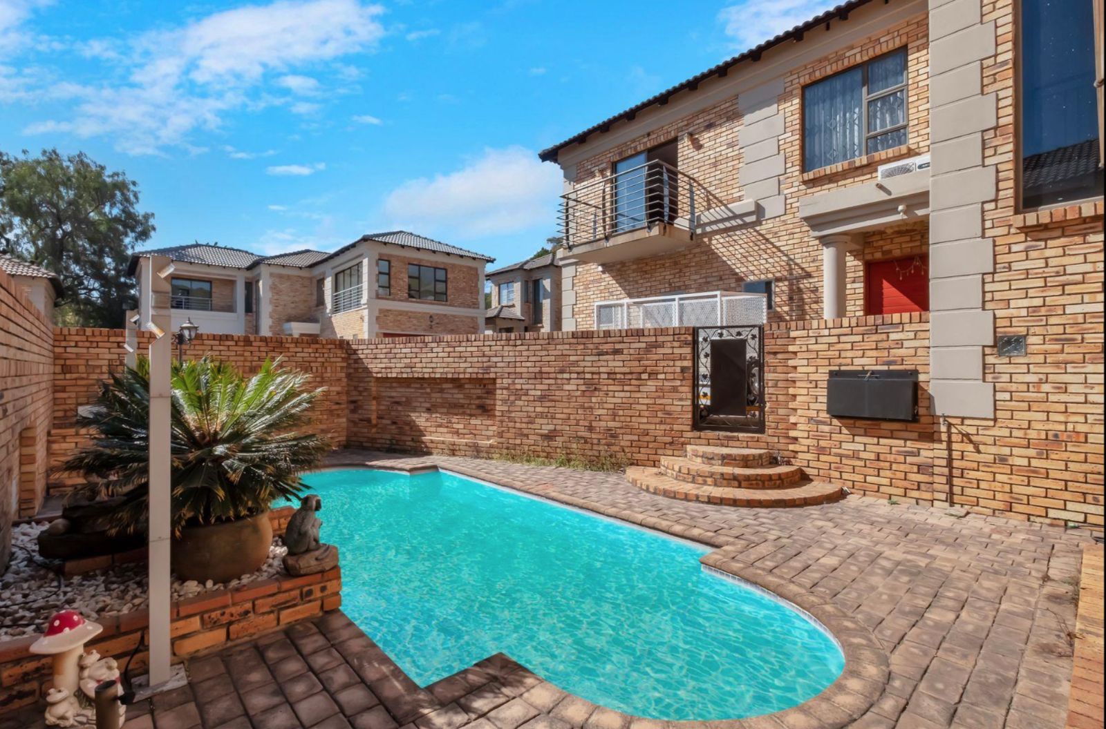 Inviting Outdoor Space: Enjoy your morning coffee or host gatherings on the inviting patio overlooking your private swimming pool.