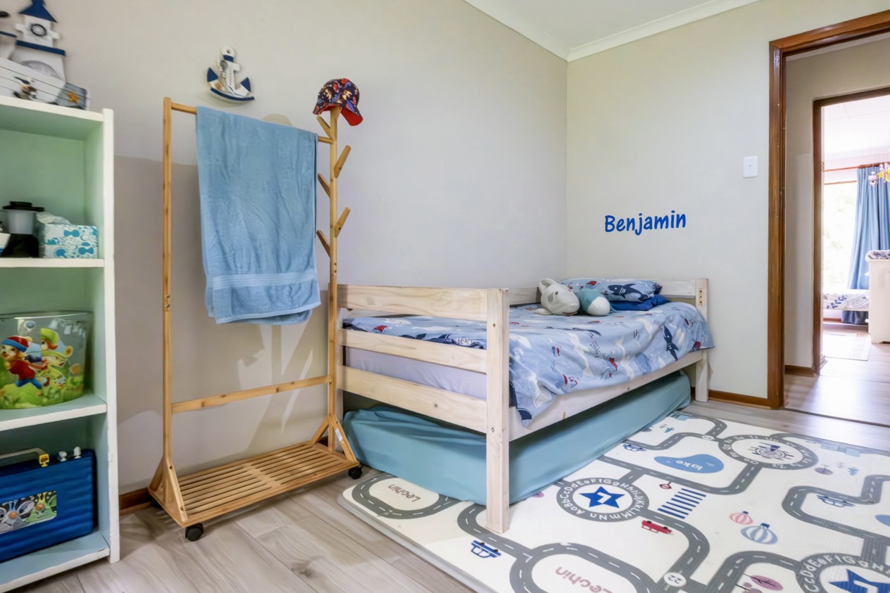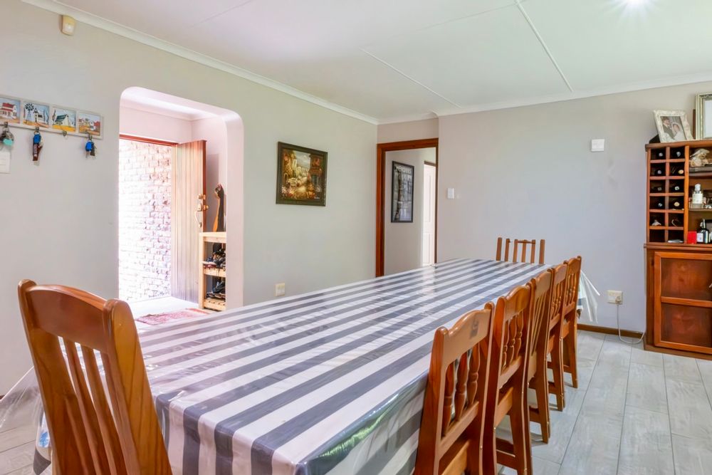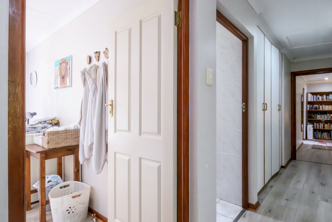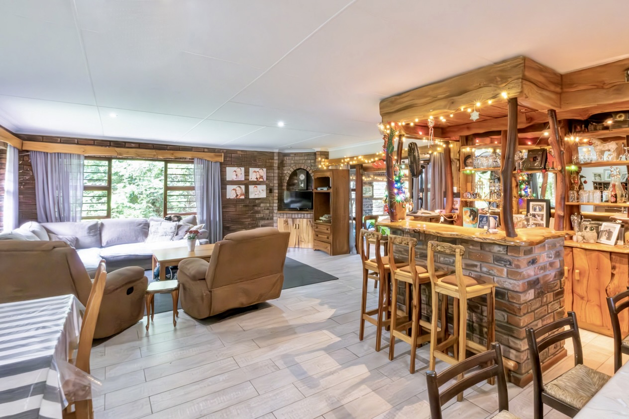 The home offers four comfortable bedrooms and two bathrooms, one of which is a well-appointed main en-suite. The open-plan living area creates an inviting, free-flowing space ideal for everyday living and easy entertaining and leads directly onto a braai room. The well-fitted kitchen is practical and complemented by a separate scullery that keeps the workspace uncluttered.