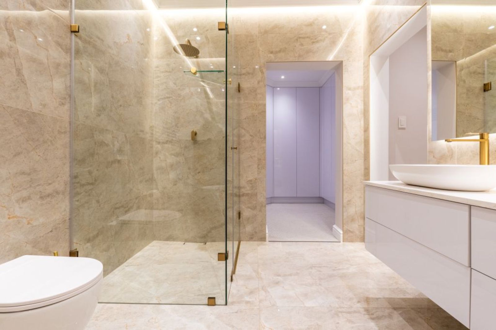 Main en-suite with imported marble tiles.