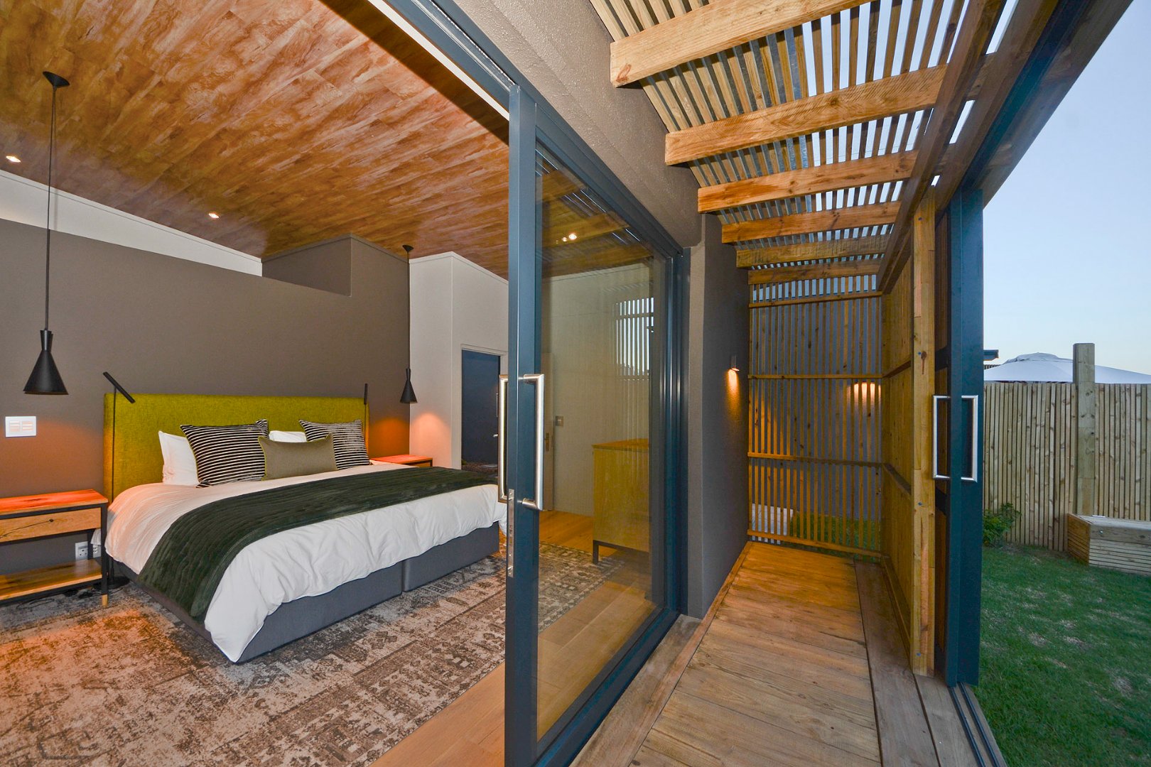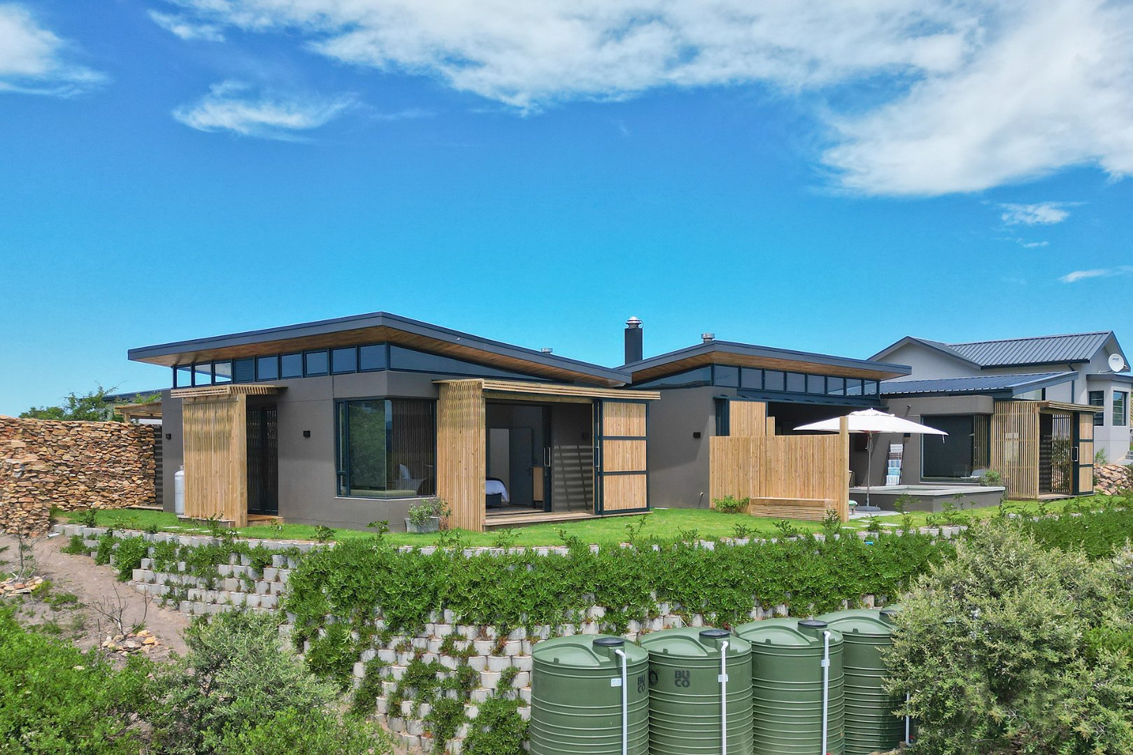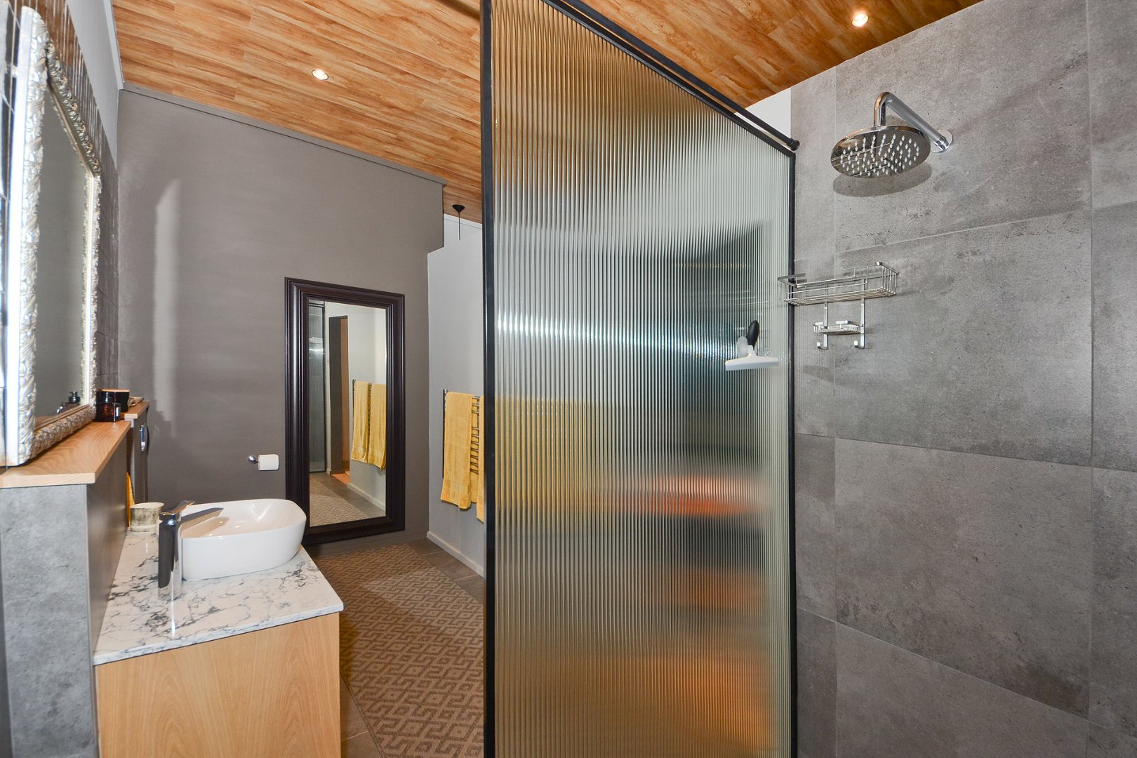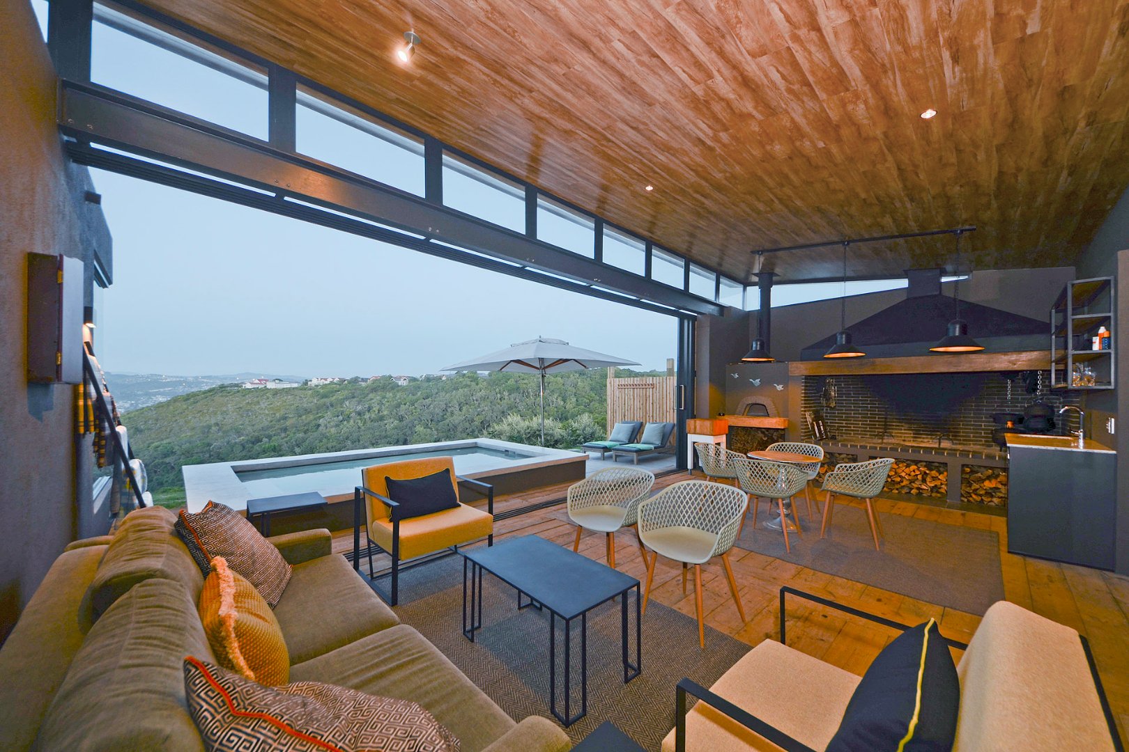 Vision and precision make this contemporary & classy eco-off-the-grid home a world class design. All within rectilinear concrete and steel structures, designed on one level in a steady flowing sequence of space and natural light, flanked by outsized sliding doors, this home peers onto the edge of its own indigenous forest valley. Specifically orientated north-eastwards along the green forest frame, built to enjoy the simultaneous living of flowing indoors and out – the owners, being outdoor people, took open plan living to another level. The piece de resistance brags a magnificent chef's delight in the huge patio featuring a stately BBQ fireplace and pizza oven. Mixed media with solid oak, concrete, and sandstone, stand out against the understated minimalist design, with practical use of every space – no cutting corners. The nuanced lighting highlights this masterpiece to the full.