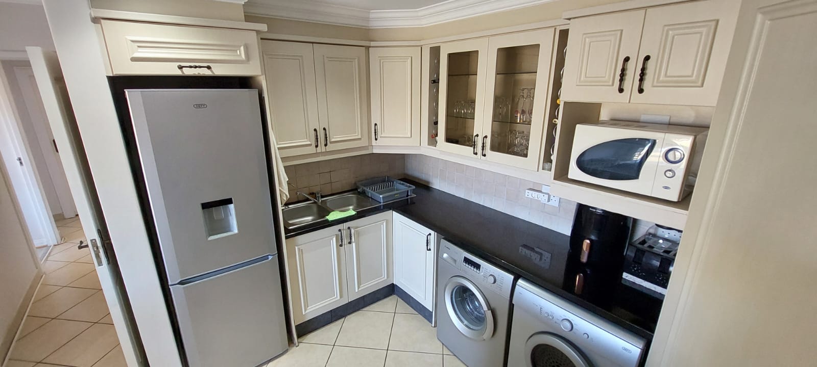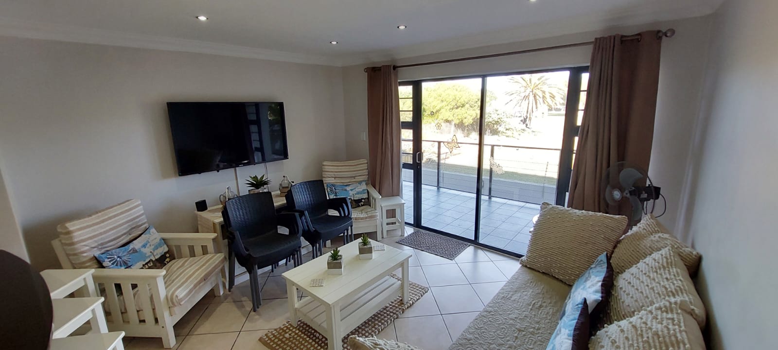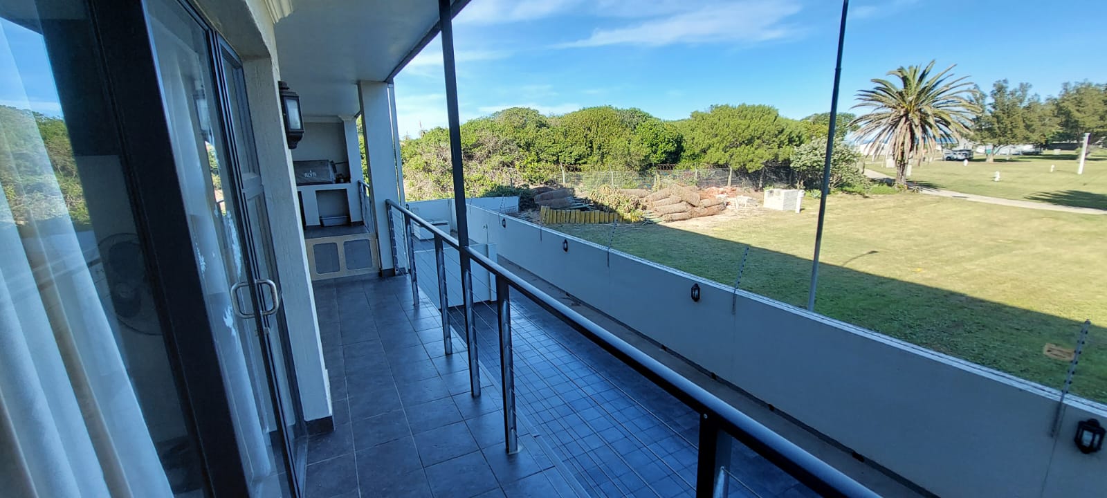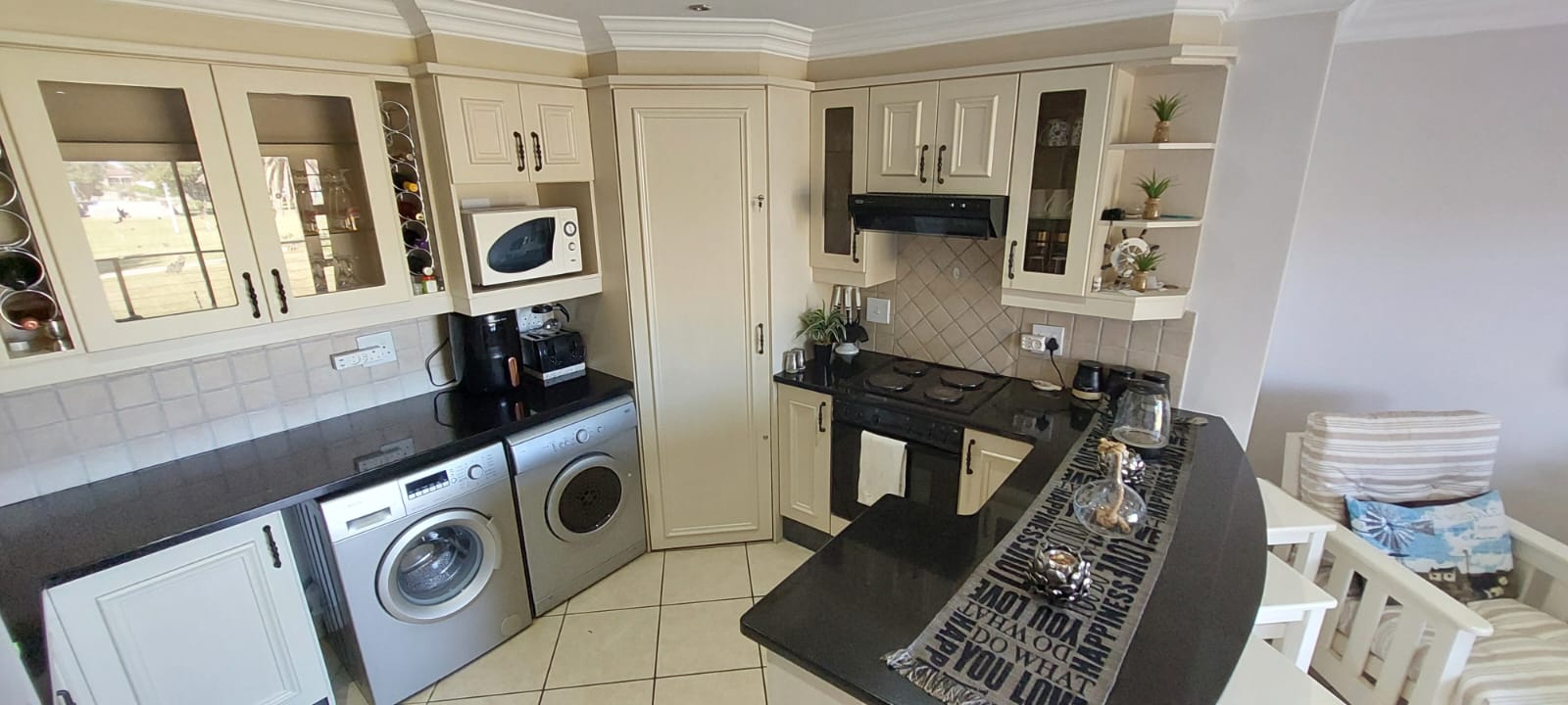 The open-plan kitchen and living room create a warm, functional space ideal for both long-term living and short-term letting. One of the standout features is the expansive, wraparound patio-style balcony, which stretches seamlessly from one side of the unit to the other. With direct access from both bedrooms and the living room, the balcony invites natural light and fresh sea air into every corner of the apartment. It also includes a built-in braai area, perfect for enjoying relaxed outdoor meals while soaking up the laid-back coastal atmosphere.
