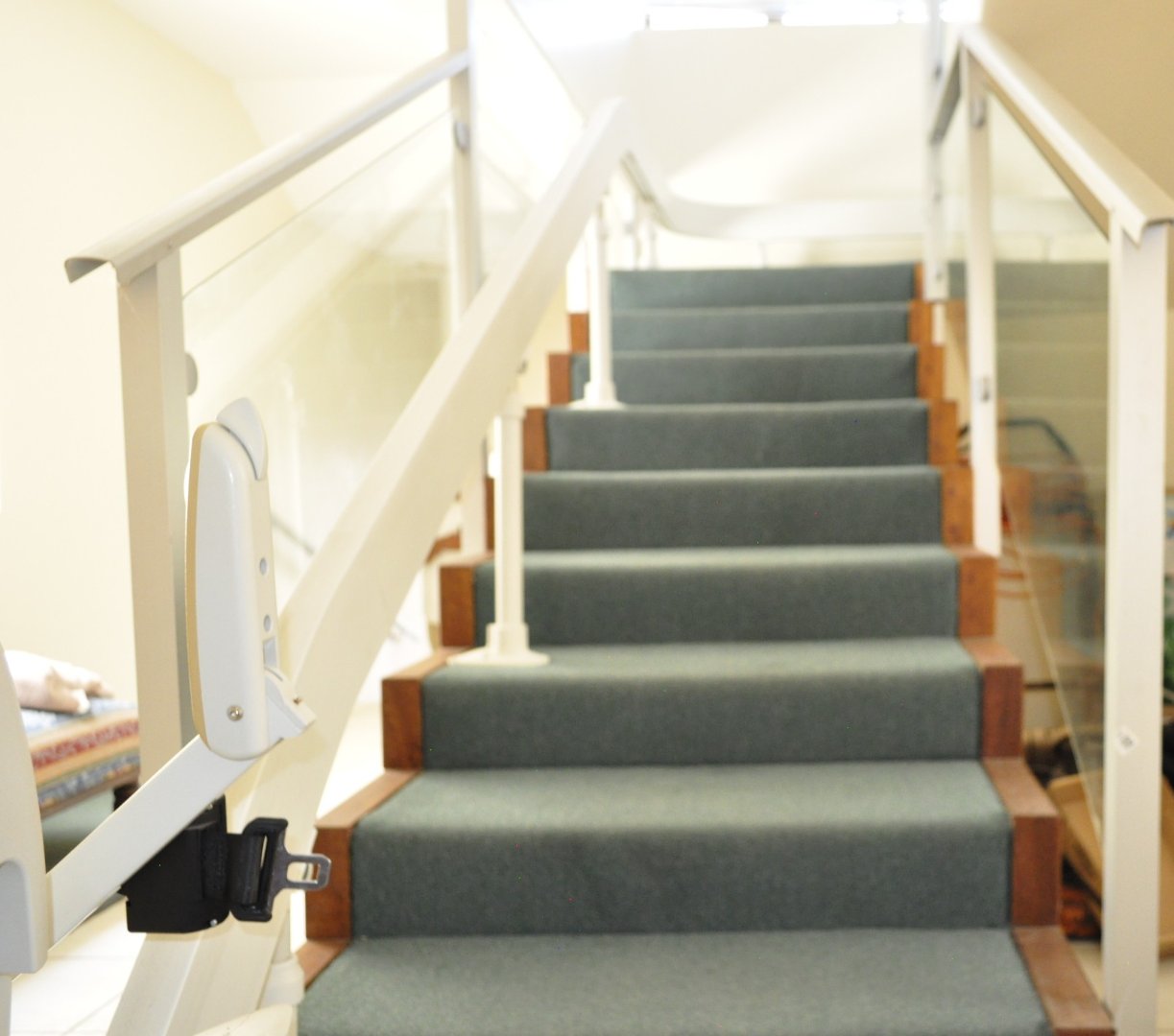 A chair-lift installed on the staircase to the second floor provides added convenience and accessibility.