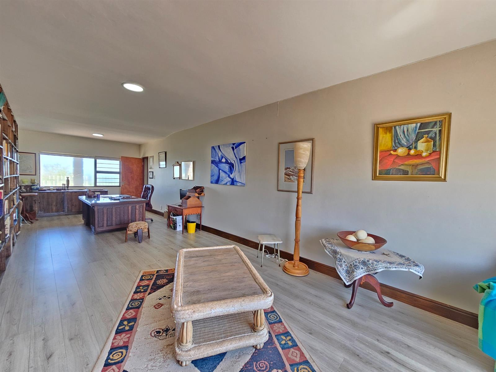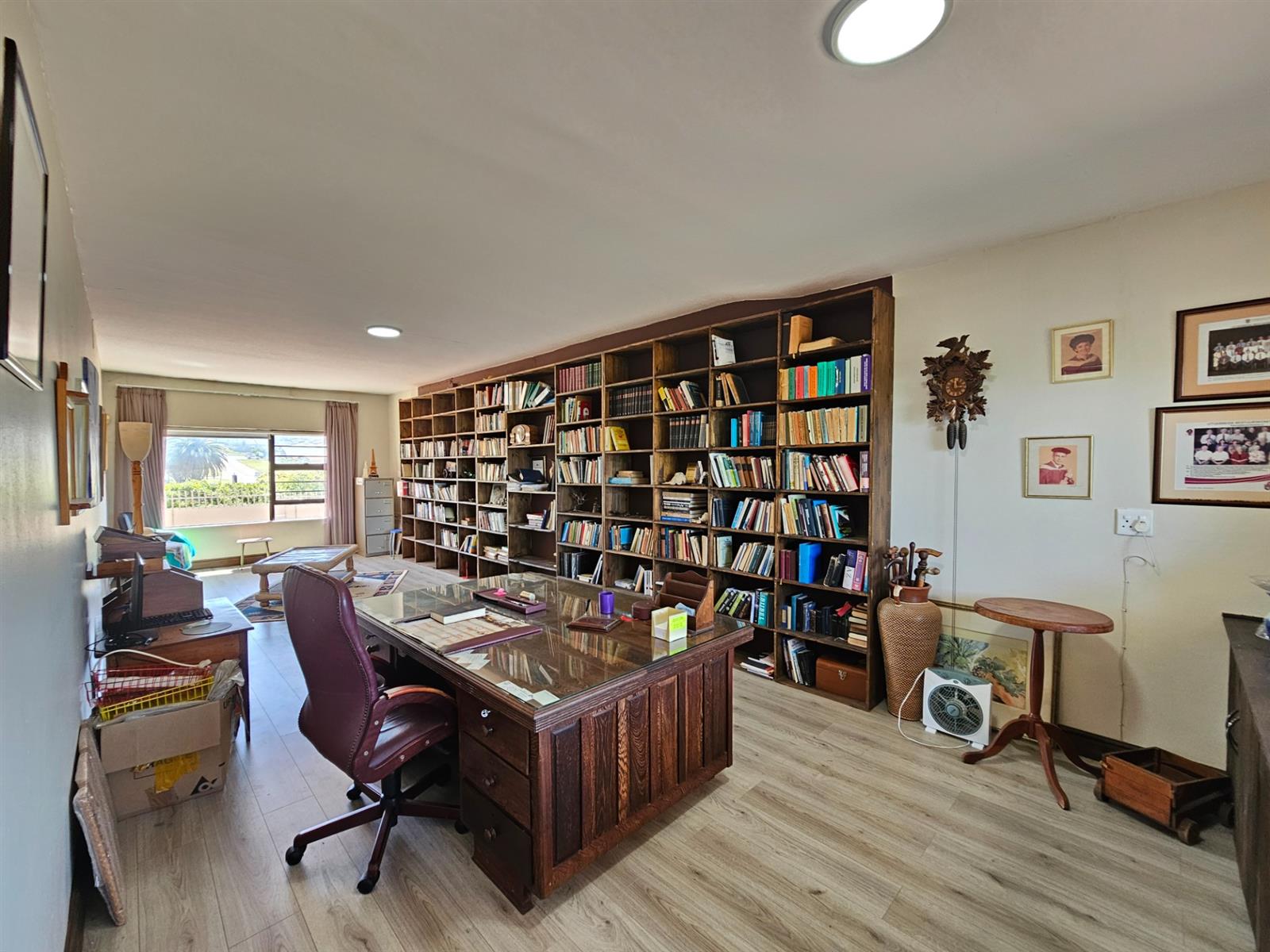 ·Spacious study with built-in bookshelves, ideal as a home office or guest reception area