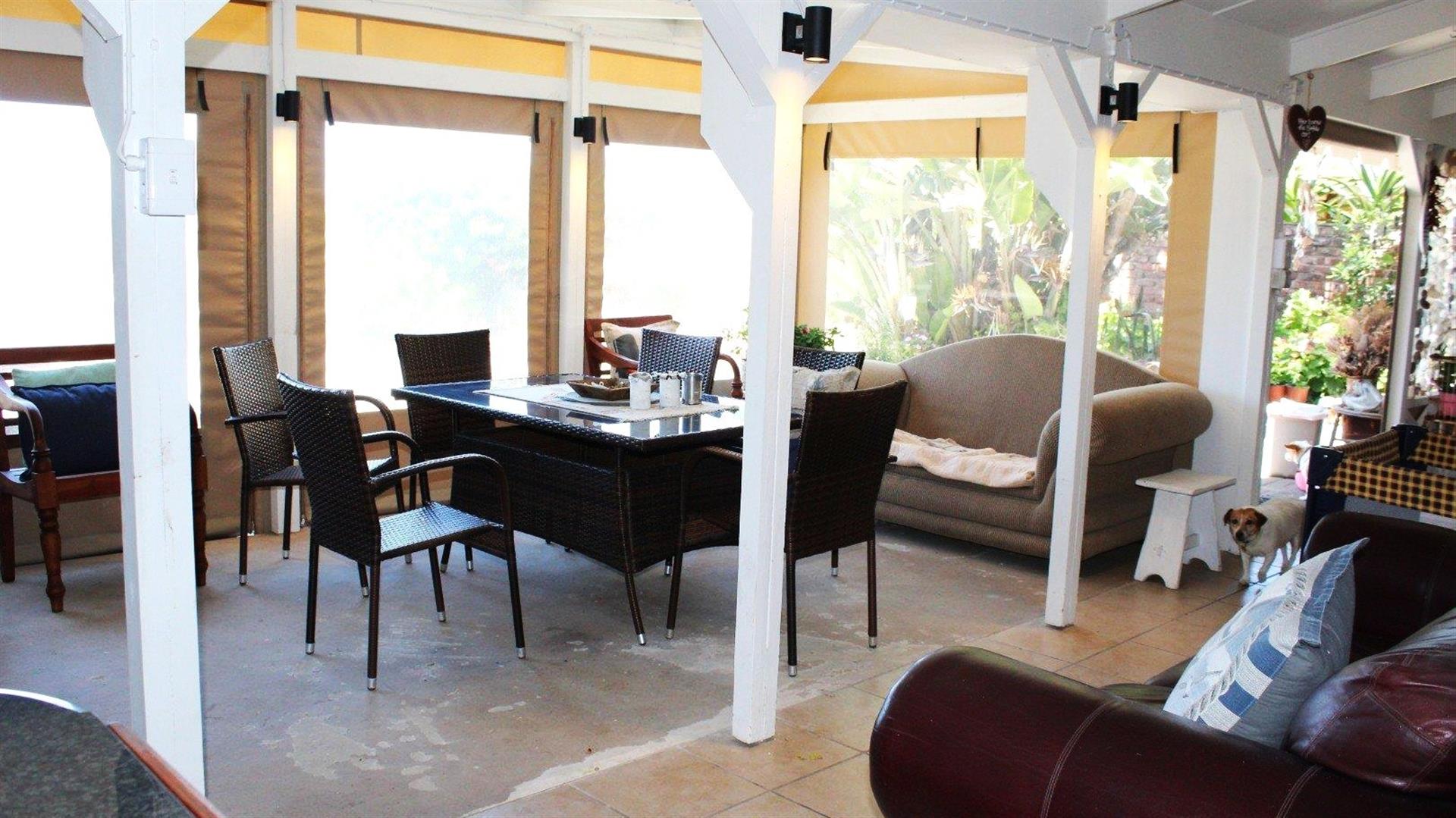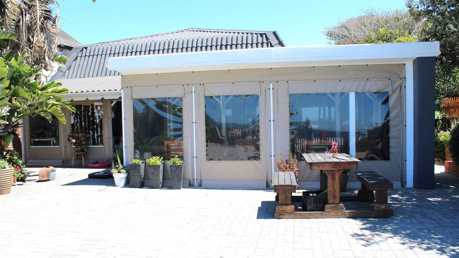 An enclosed entertainment room with a built-in braai opens toward the ocean — just a few steps from the waves, perfect for relaxed coastal living.