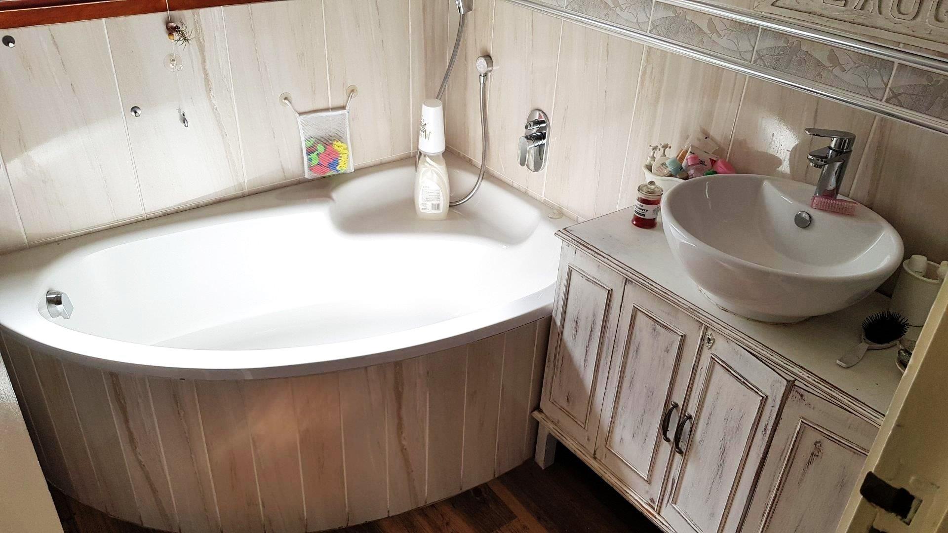 Inside, the entrance hall flows into a spacious open-plan lounge and stylish kitchen with a centre island and gas stove. The multi-level layout offers excellent privacy: