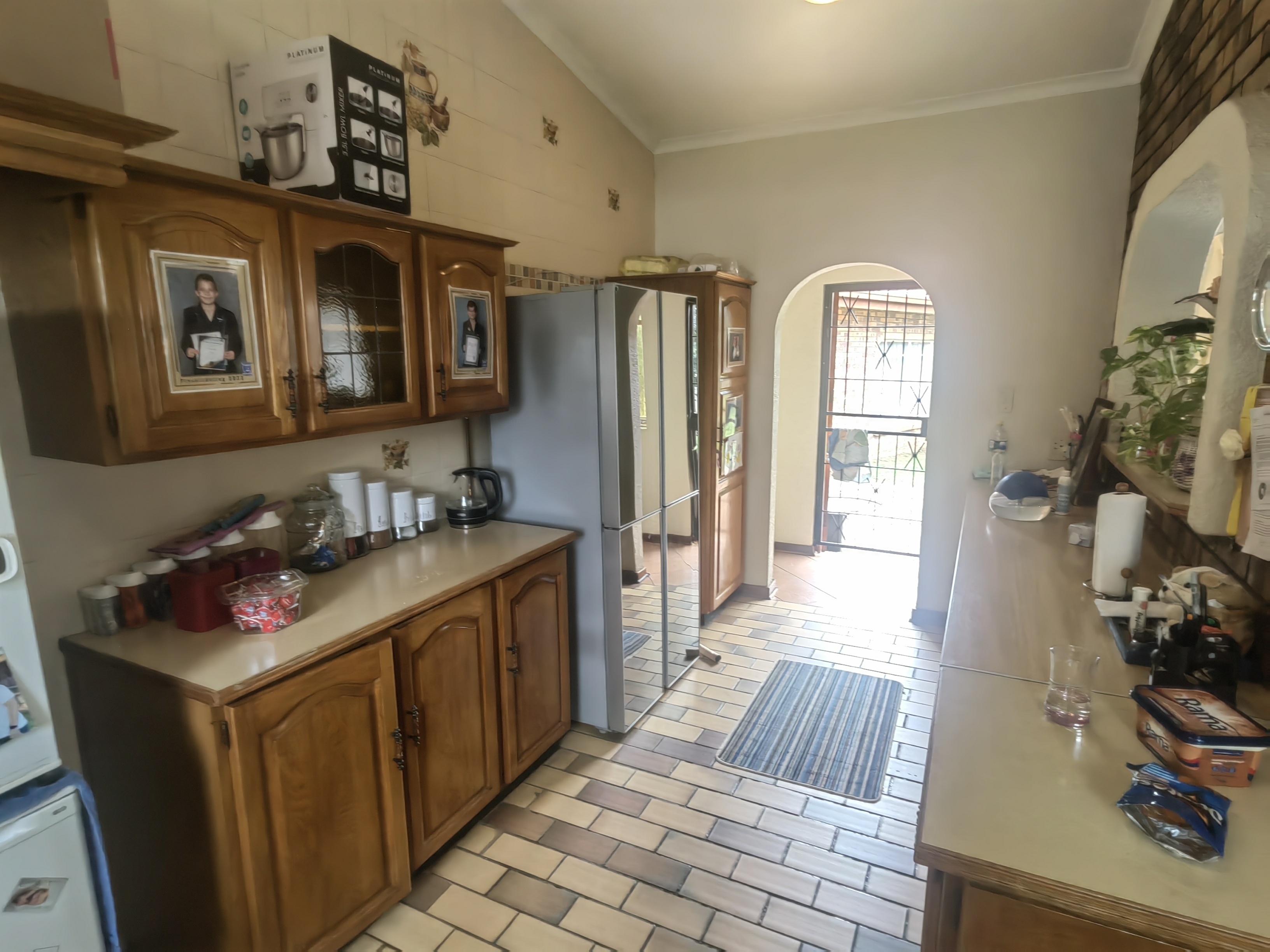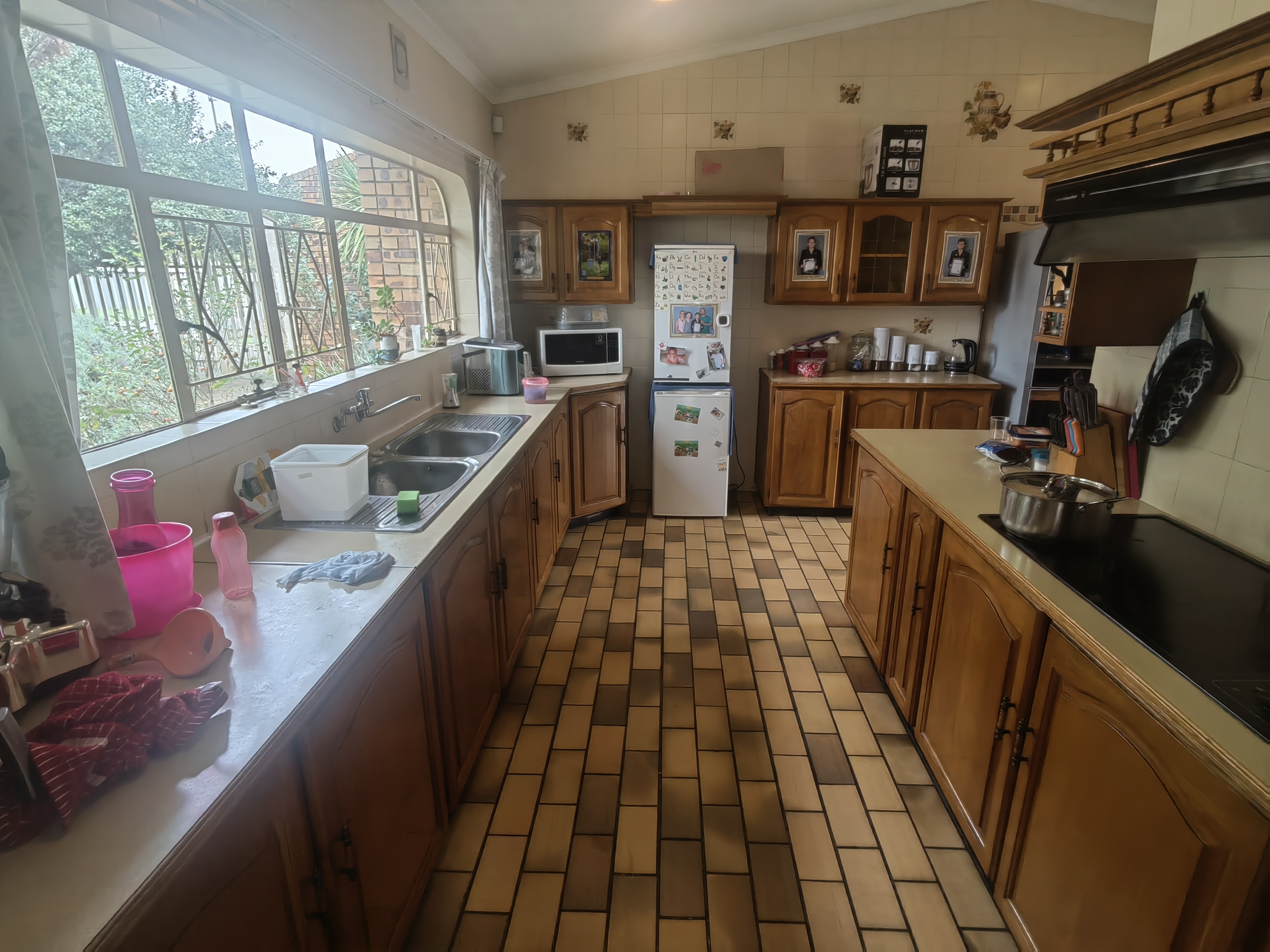 Spacious L shaped kitchen with plenty of build in cupboards a breakfast nook space for your fridge and dishwasher.