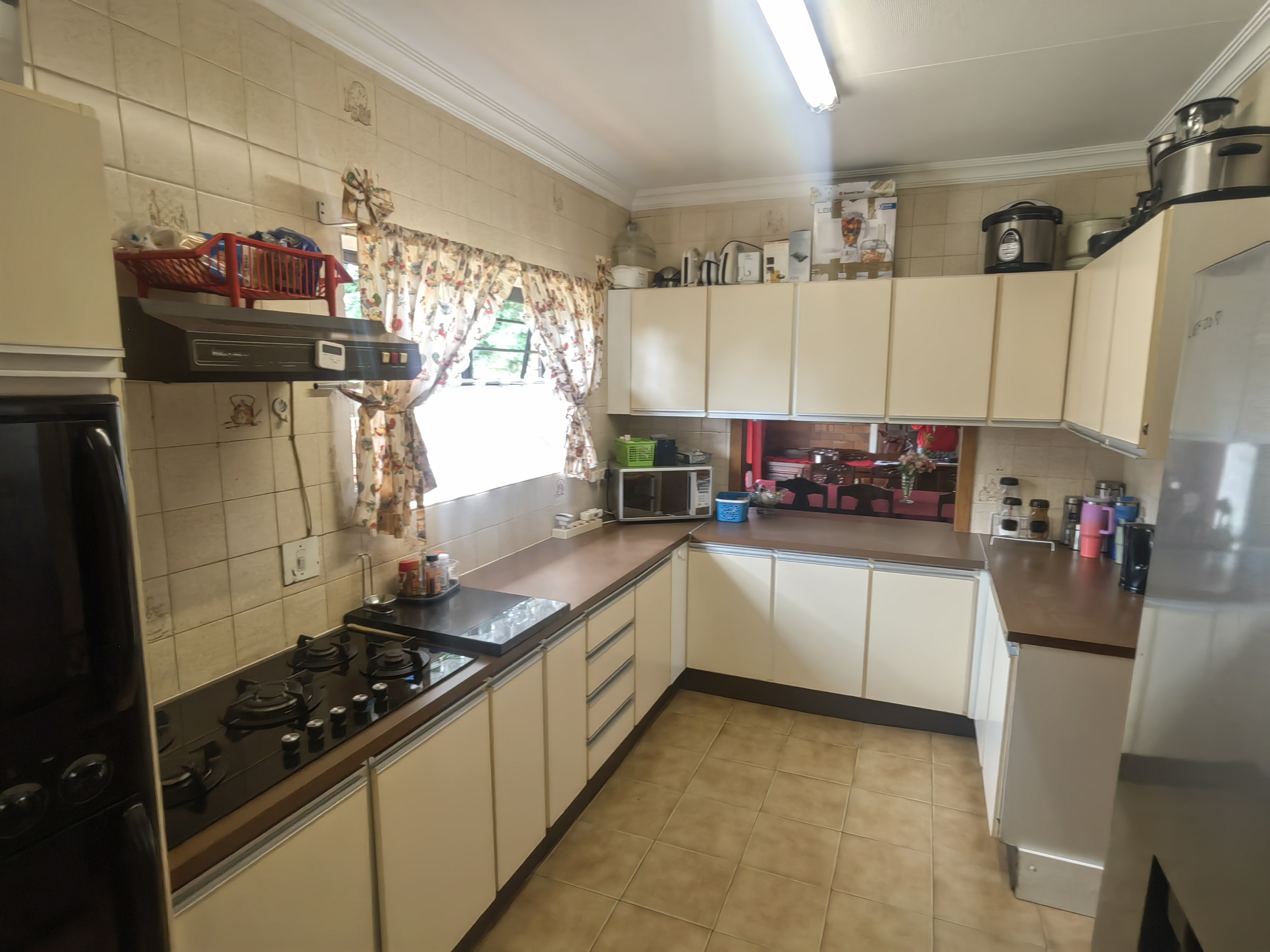There is 2 garages with automated garage doors. A working borehole. The alluminuim windows frame have burglar proof glass inside with a alarm system to the property. This property is situated in a quiet neighbourhood .