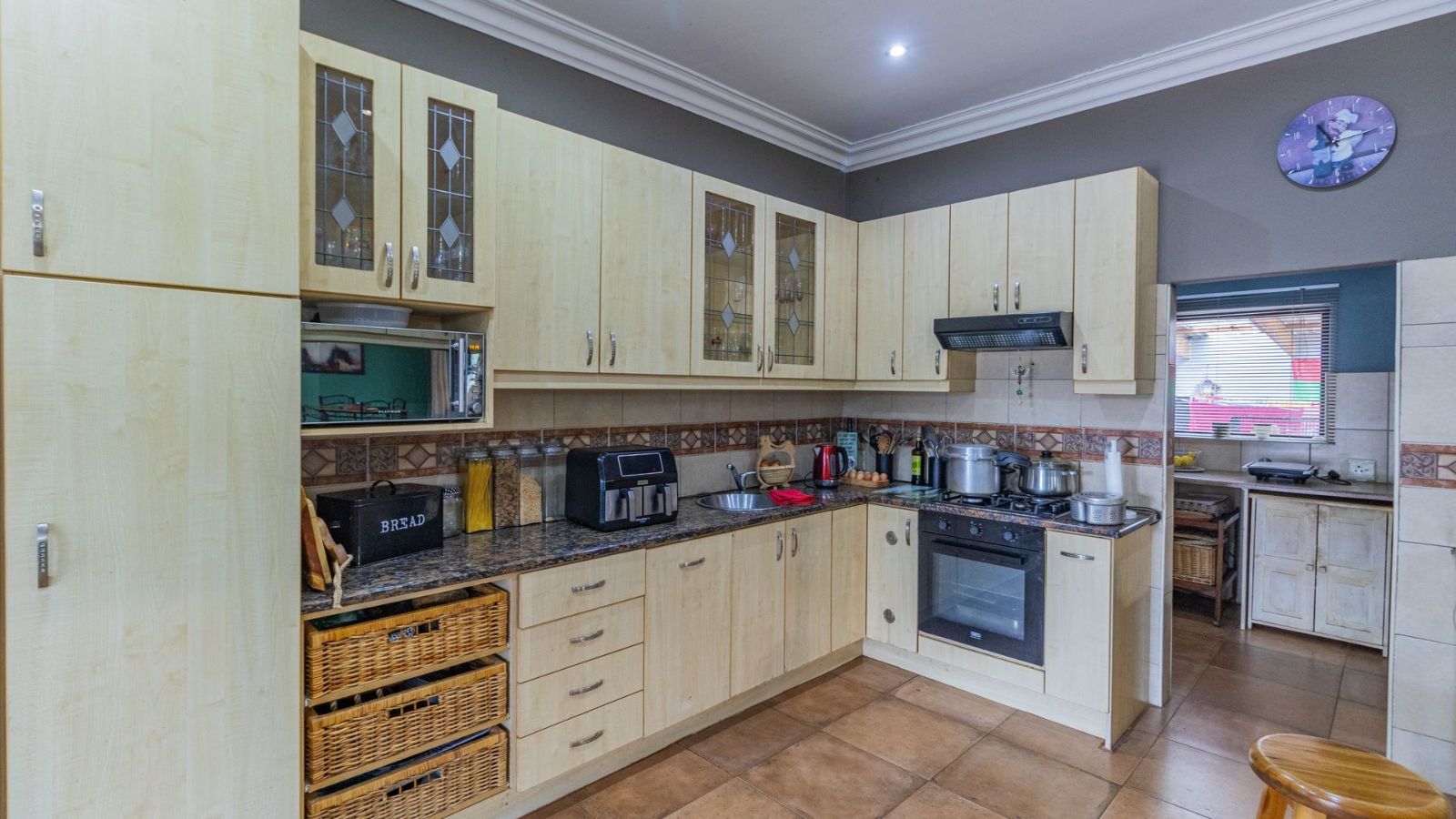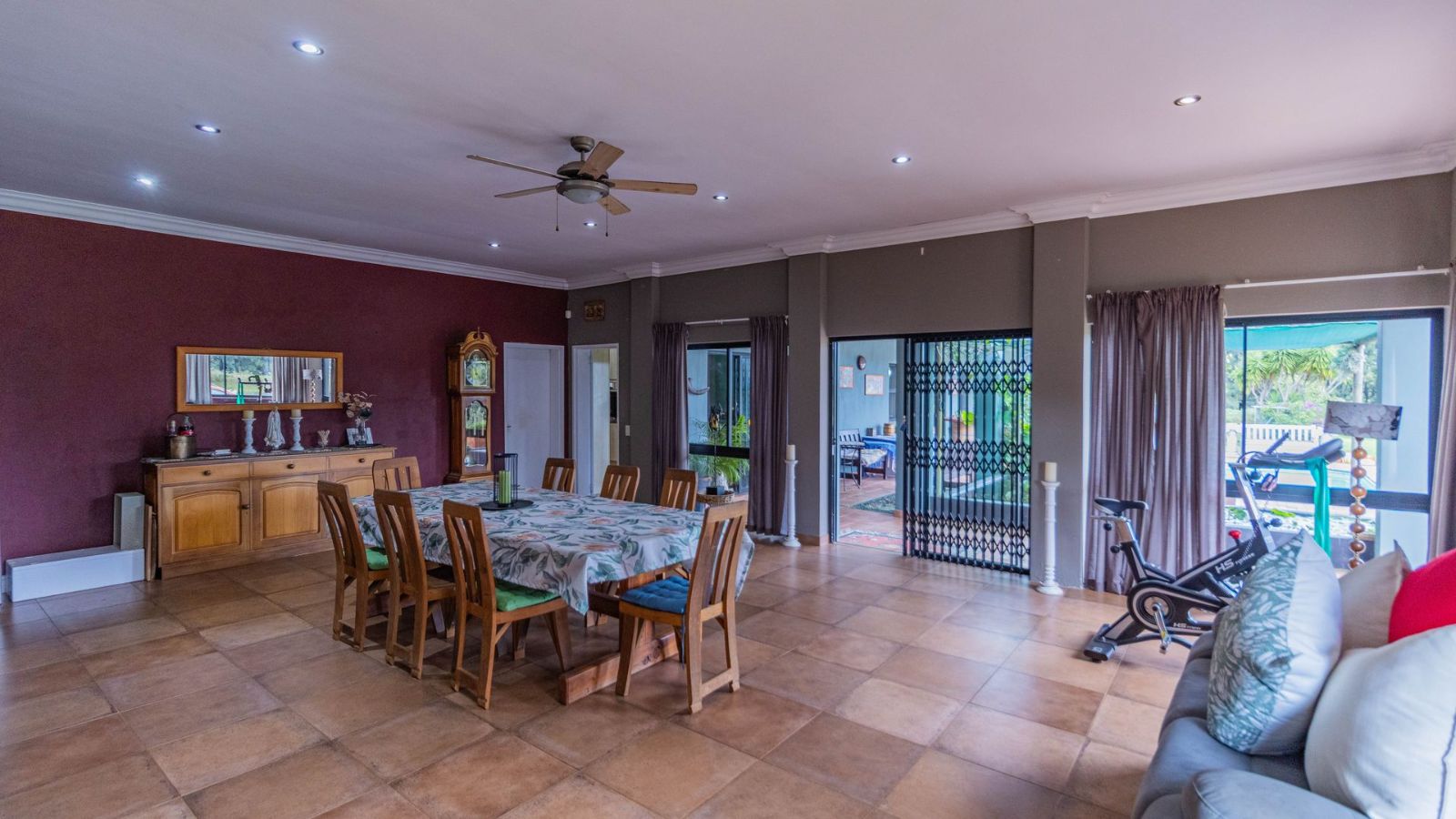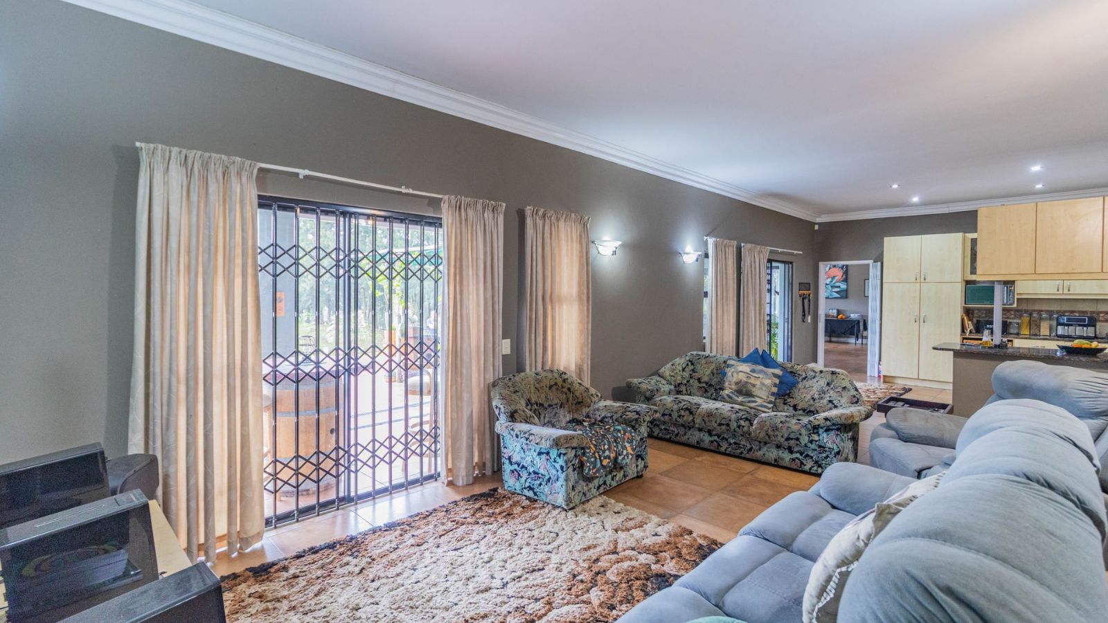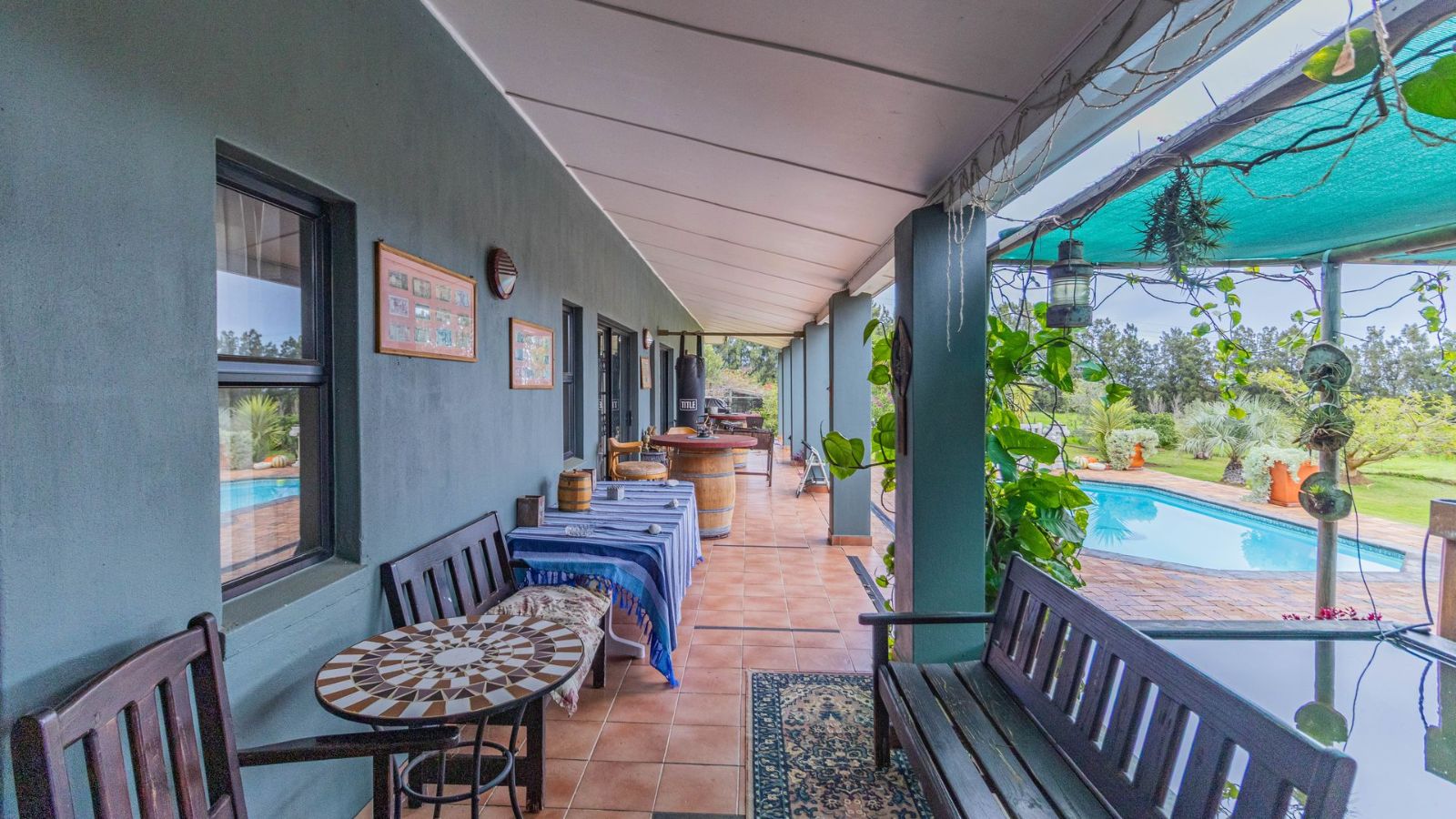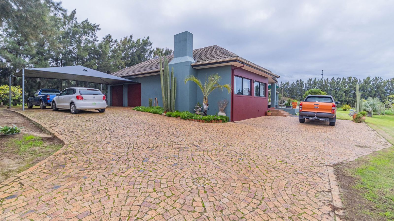Outdoors, you’ll find a double garage, double carport, and plenty of additional parking space. The property also features solar power and a borehole that supplies clean water – ideal for sustainable living. A full alarm system adds extra peace of mind.