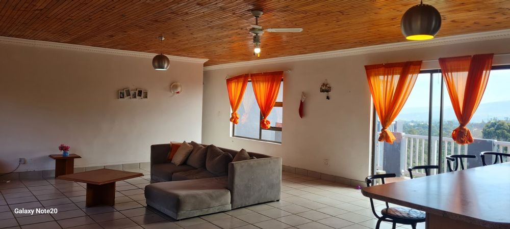 The lower level features a spacious open plan lounge area with a built-in braai, a kitchenette, one spacious bedroom, a bathroom with shower, toilet, basin.