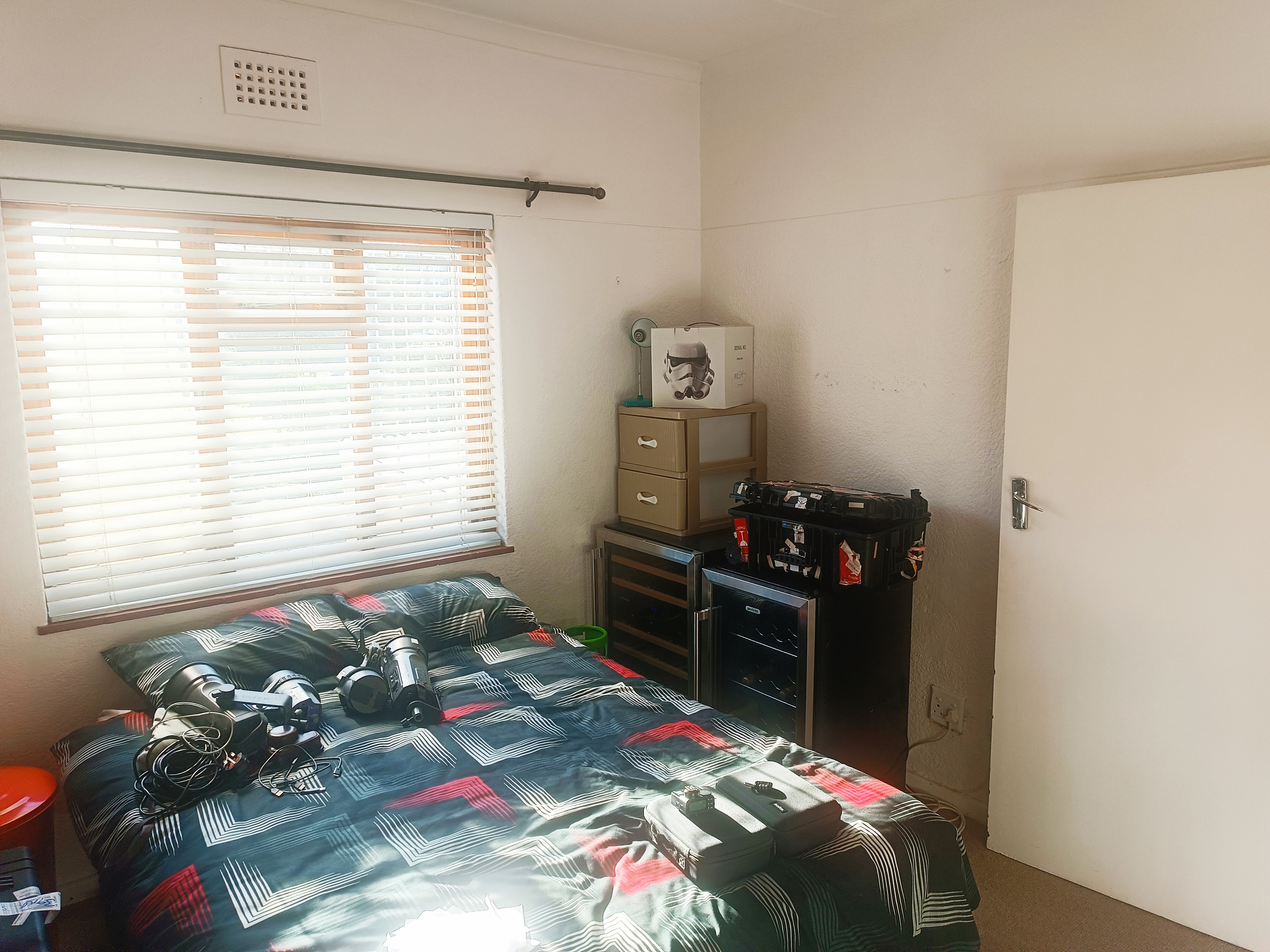 Situated on the first floor, this light and airy two-bedroom apartment offers comfortable and convenient living in the heart of Fish Hoek. The open-plan lounge area is carpeted and welcoming, with natural light streaming in, creating a relaxed living space. The tiled kitchen is well-equipped with a built-in oven, stove, extractor fan, and generous cupboard space—perfect for everyday cooking and storage.