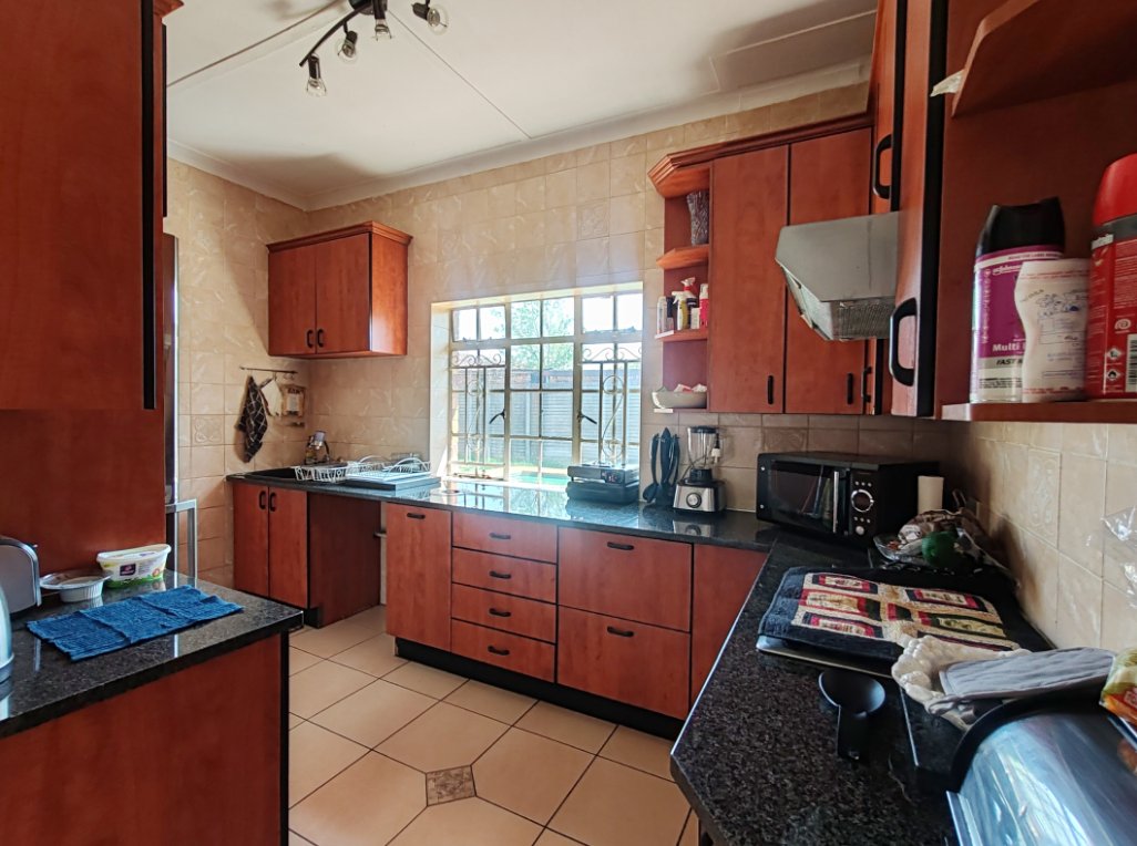 Outdoors, enjoy the sparkling pool (with solar heating), a built-in pub for entertaining, and ample parking including a double garage and a carport. The property is fully walled with burglar bars and a security gate for peace of mind. Don’t miss out on this well-maintained home that offers both comfort and security!