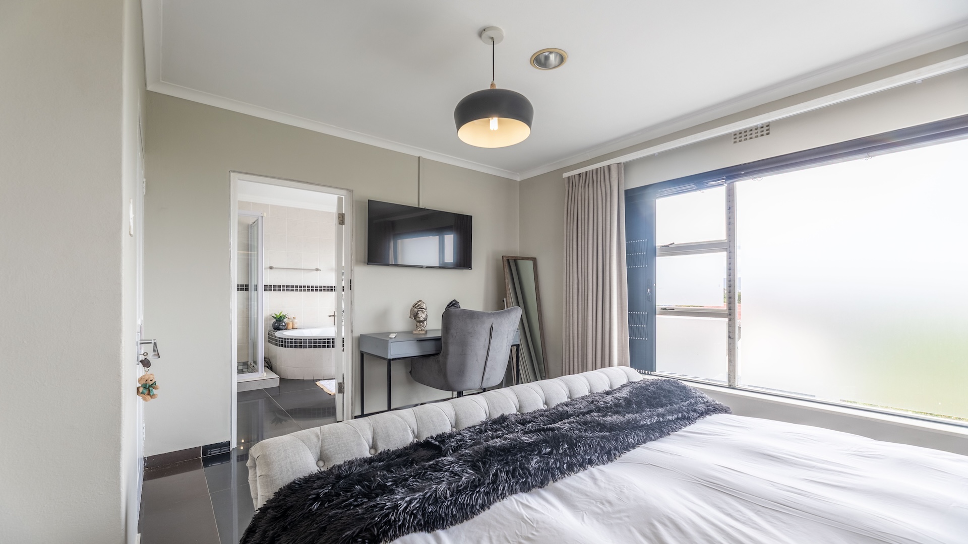 The main bedroom is a standout feature, offering privacy, space, and scenic views creating a peaceful retreat within your own home.