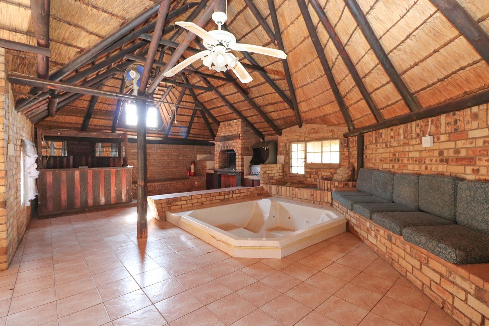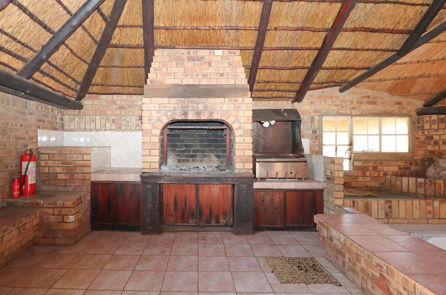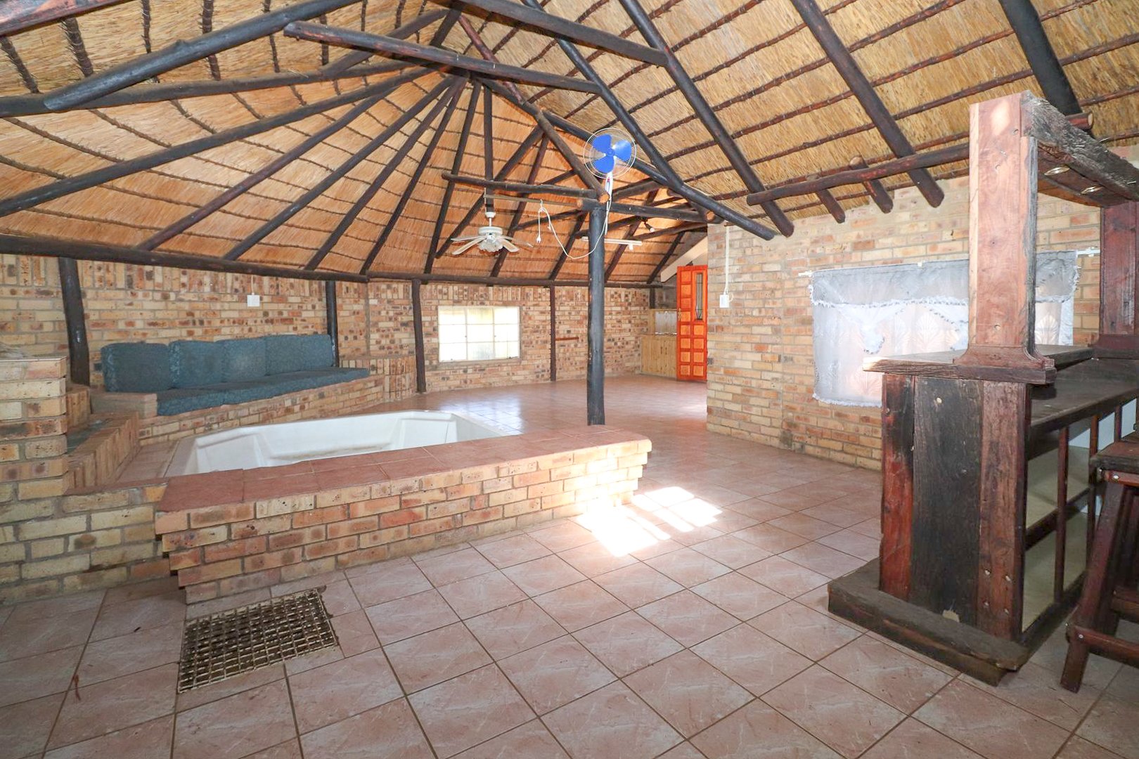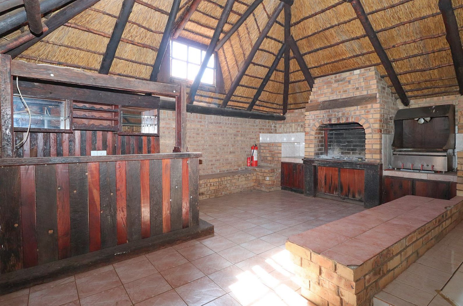 A spacious home with cozy living spaces, including a large thatched lapa with built-in braai, -bar.