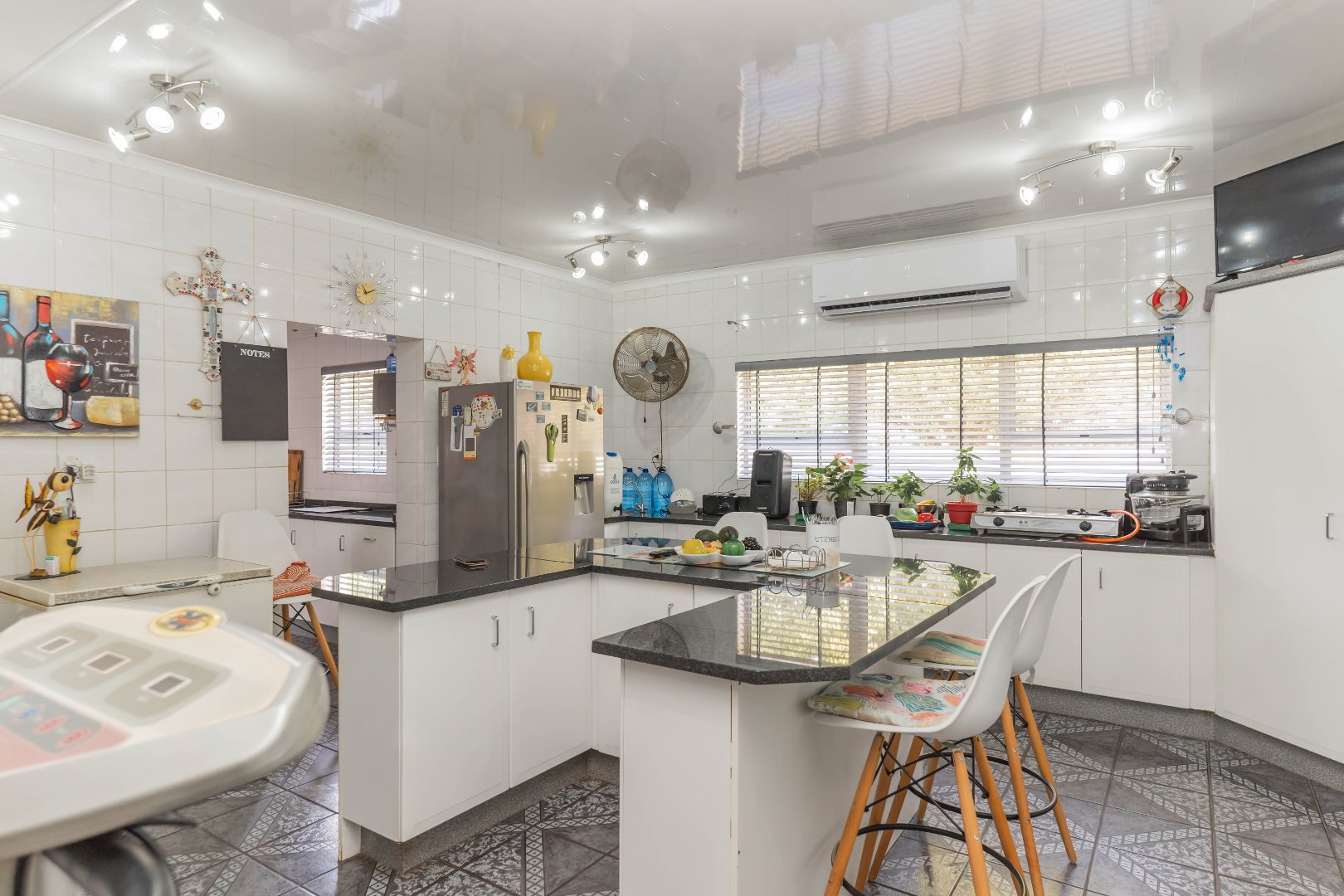 The kitchen is very well planned with center island, lots of built-in cupboards, laundry and scullery