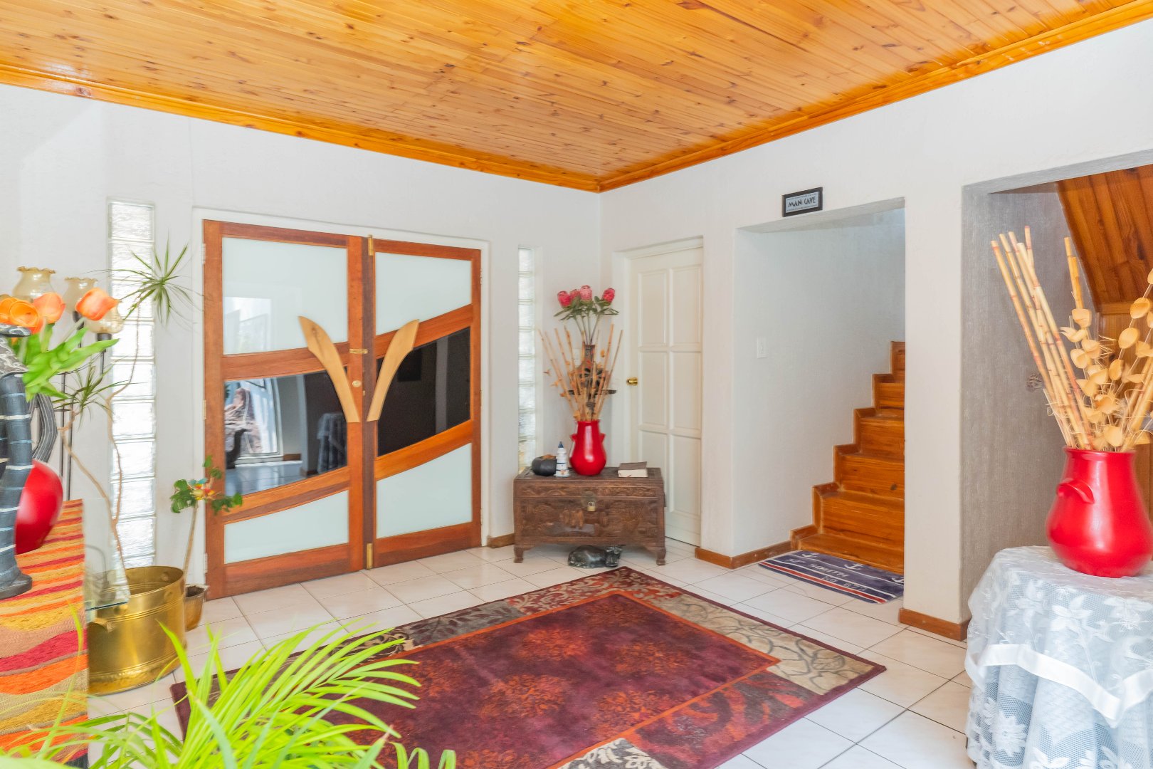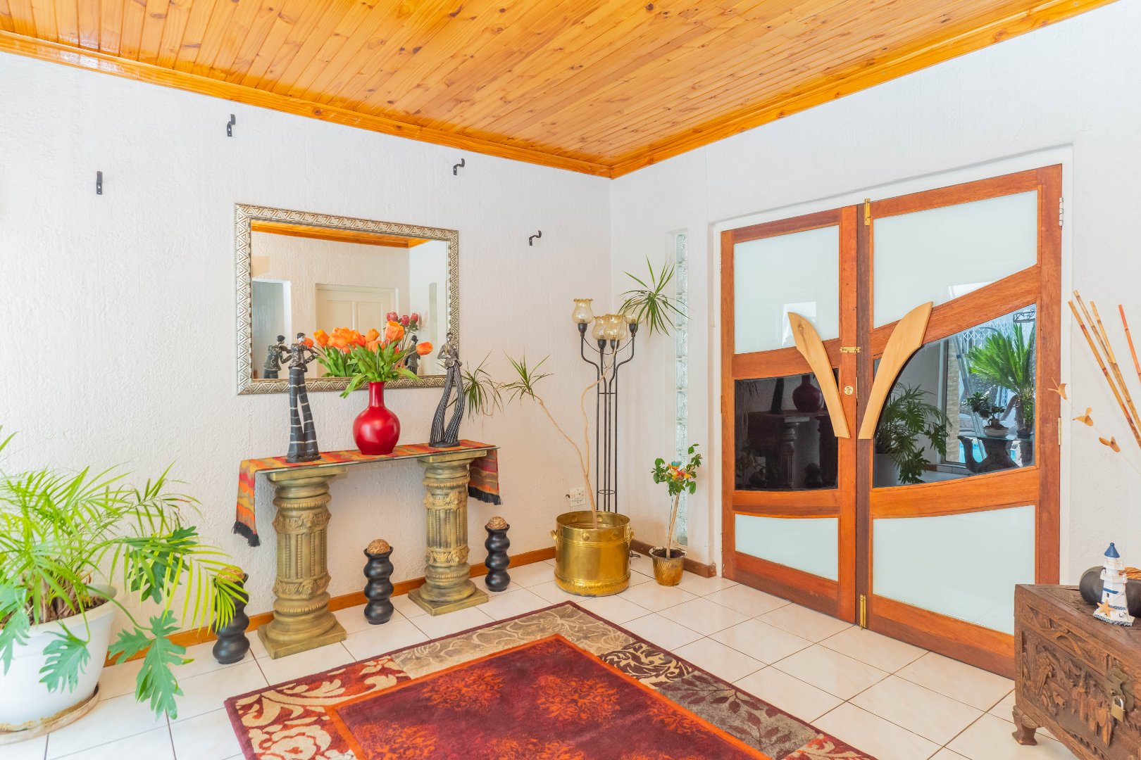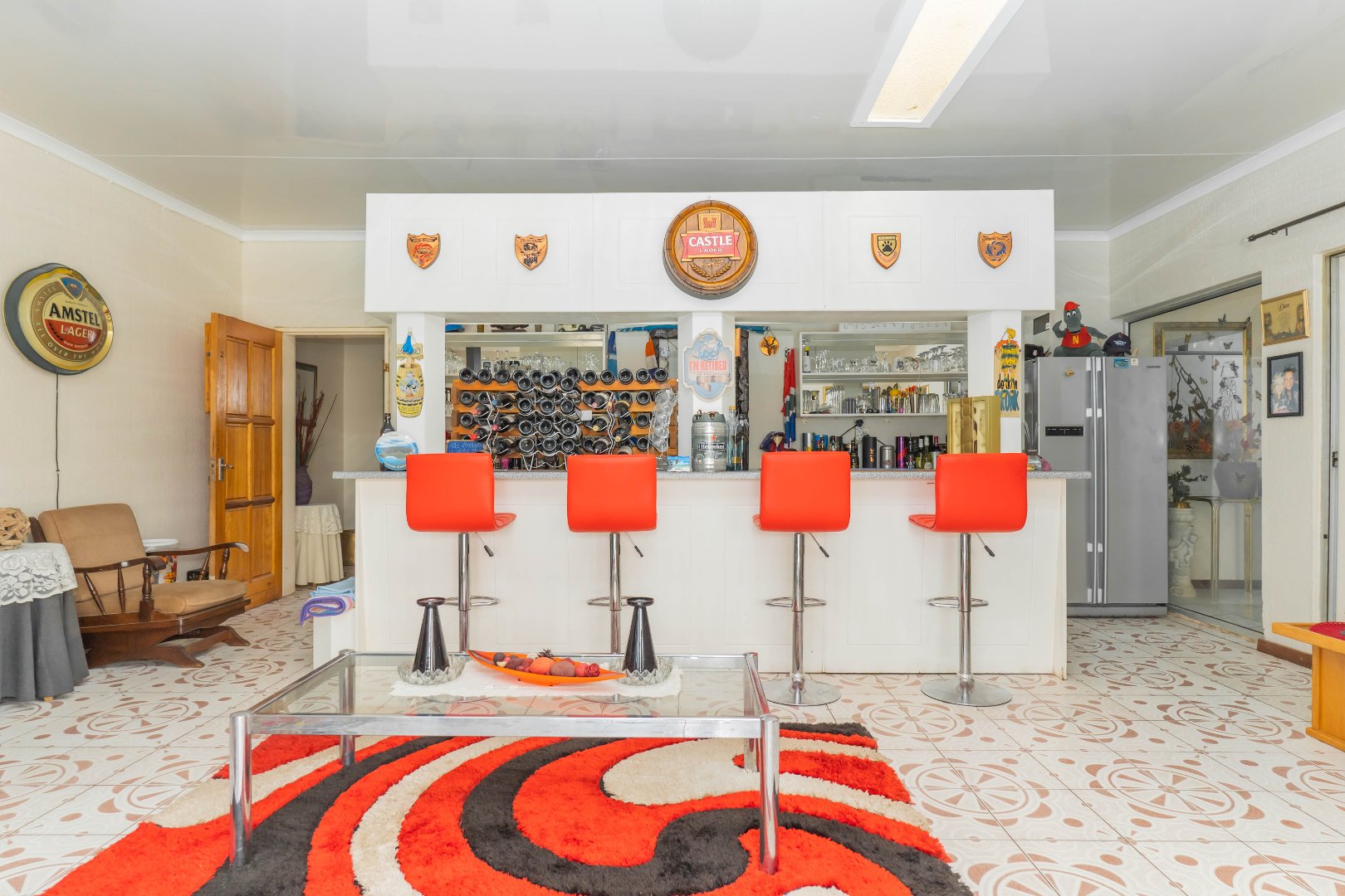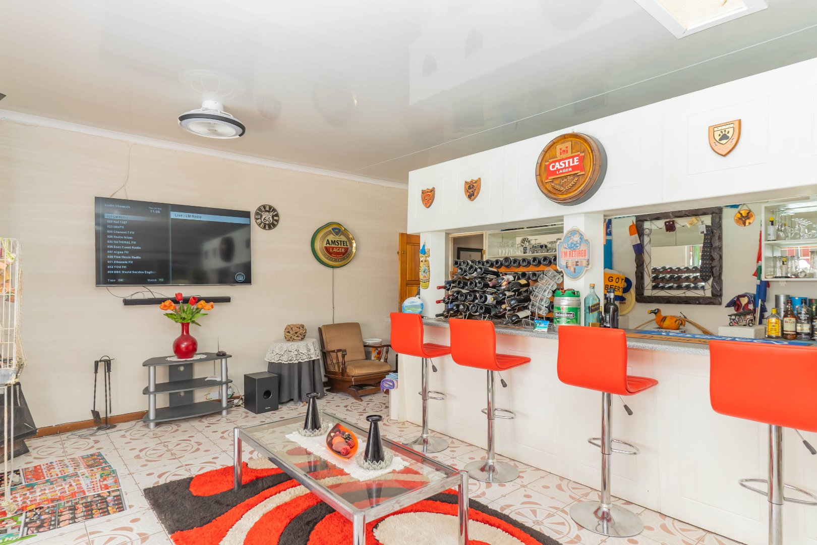 Entertainment area with built-in bar, fire-place and sliding door to pool area.