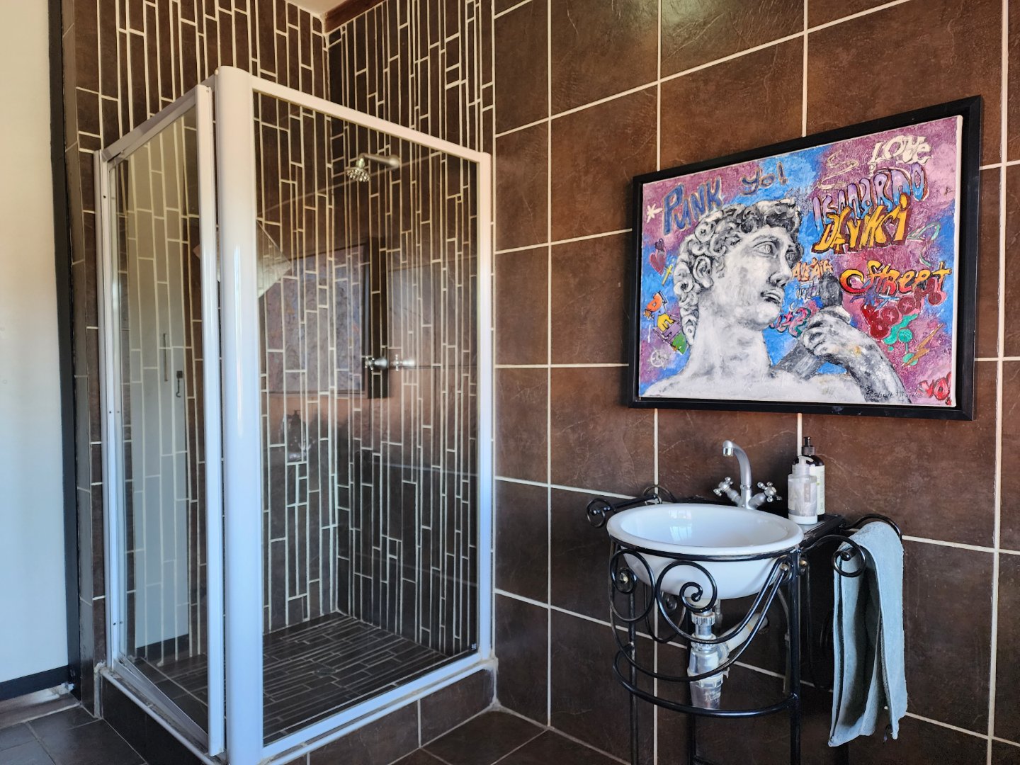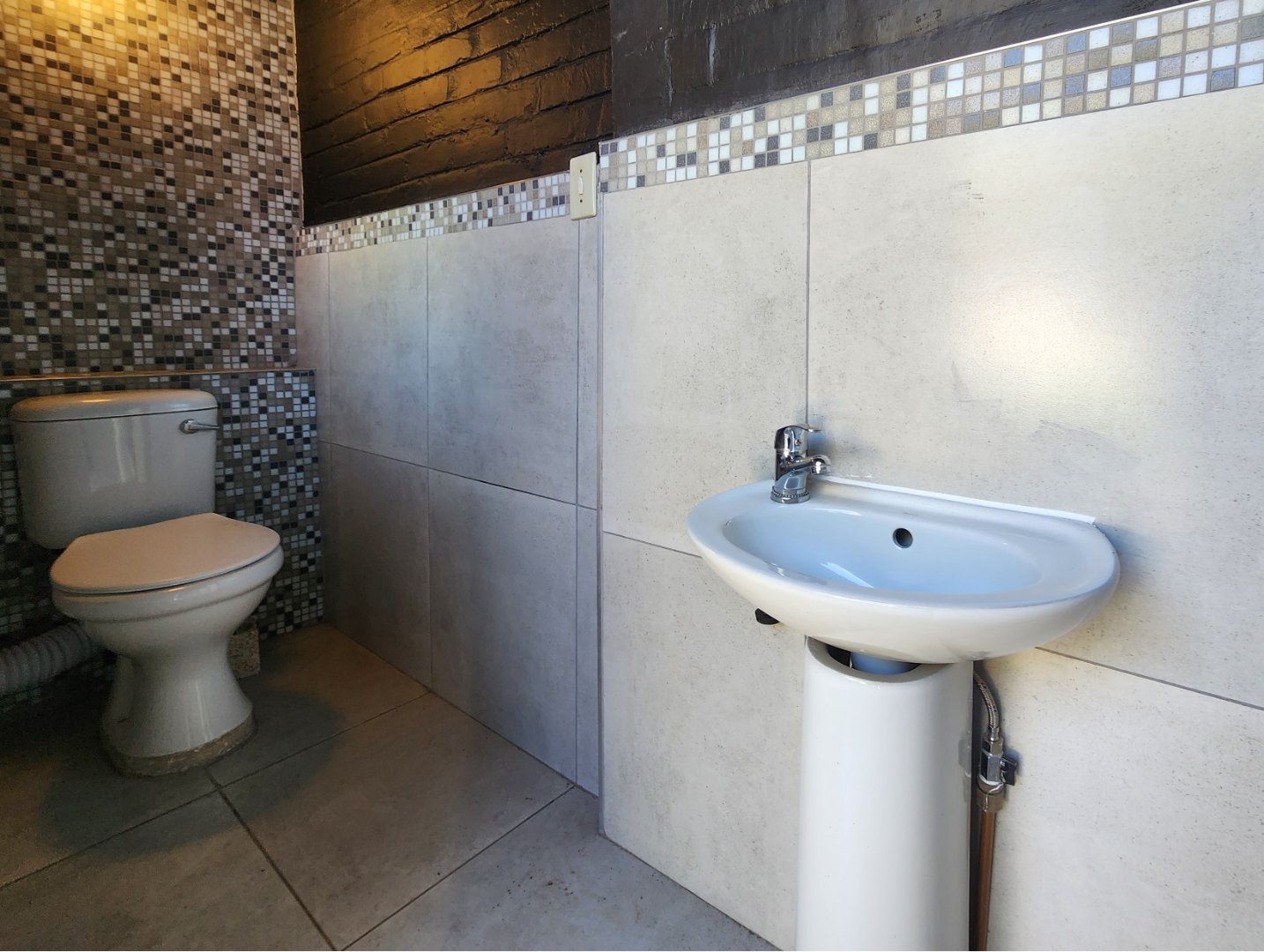 Domestic room with bathroom (shower, toilet, and basin)
