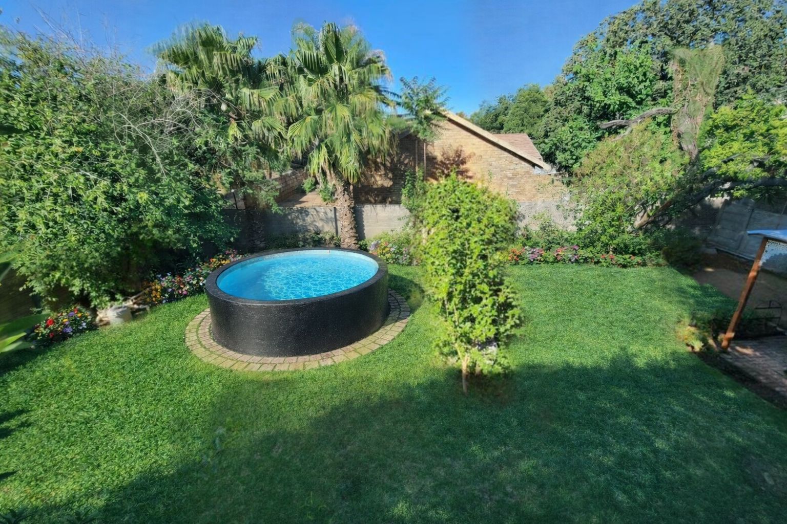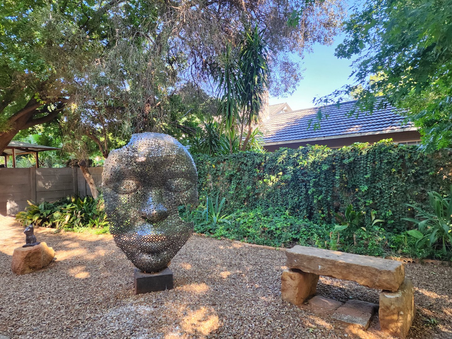 Beautifully landscaped garden with a serene, creative atmosphere