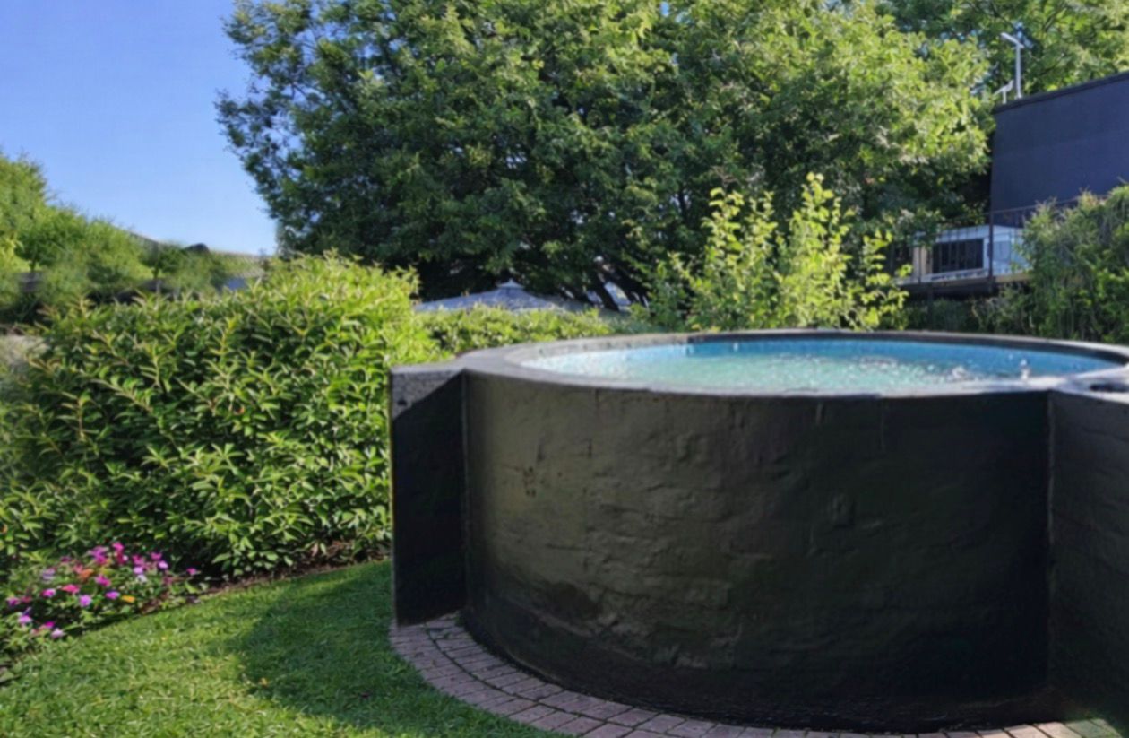Unique round concrete pool/dam feature