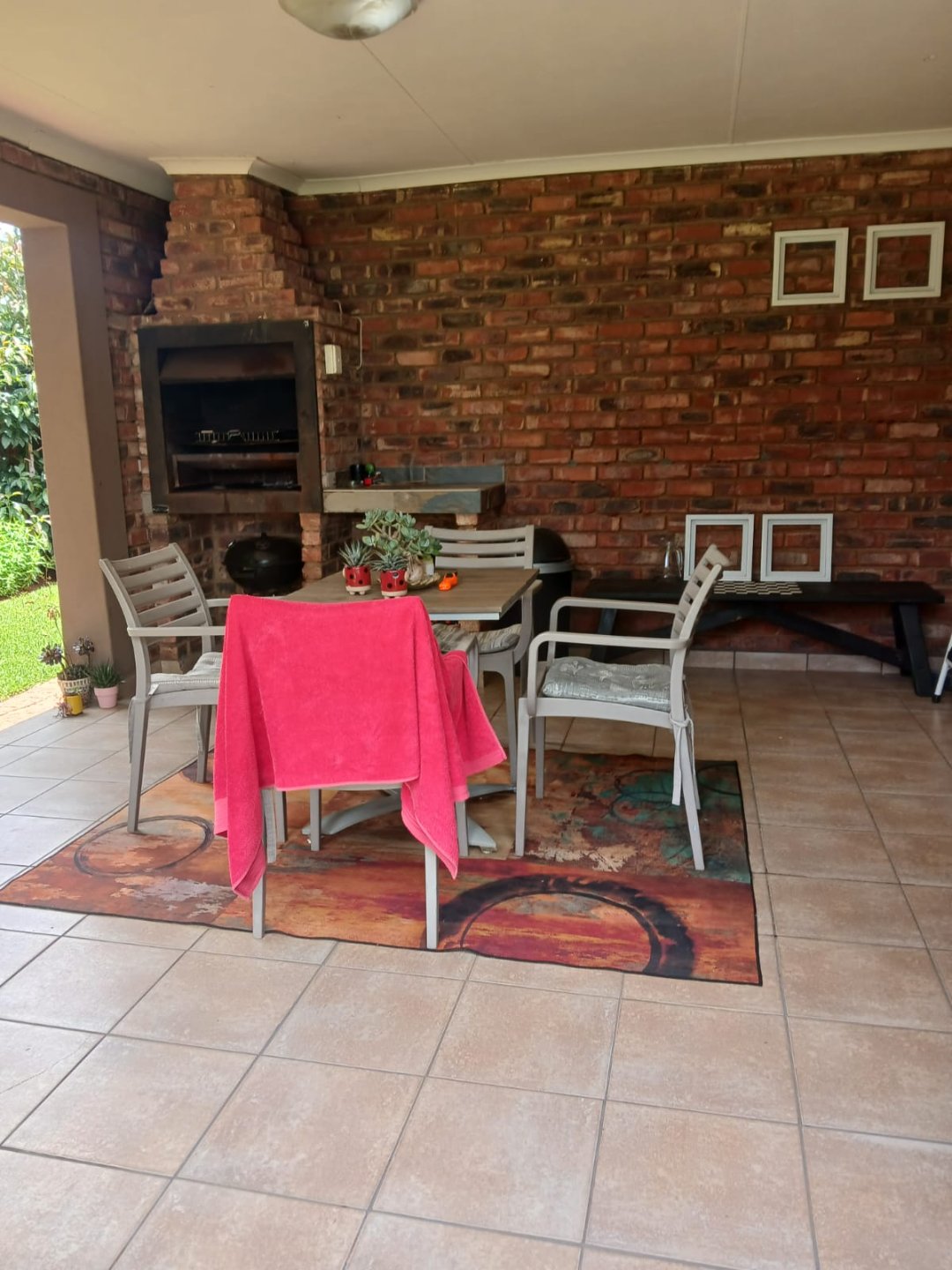 Outdoor Entertainment: Step out to a superb under-roof braai area featuring a built-in braai, perfect for year-round entertaining. This space looks out onto a spacious and beautifully maintained garden, providing a private, tranquil setting.