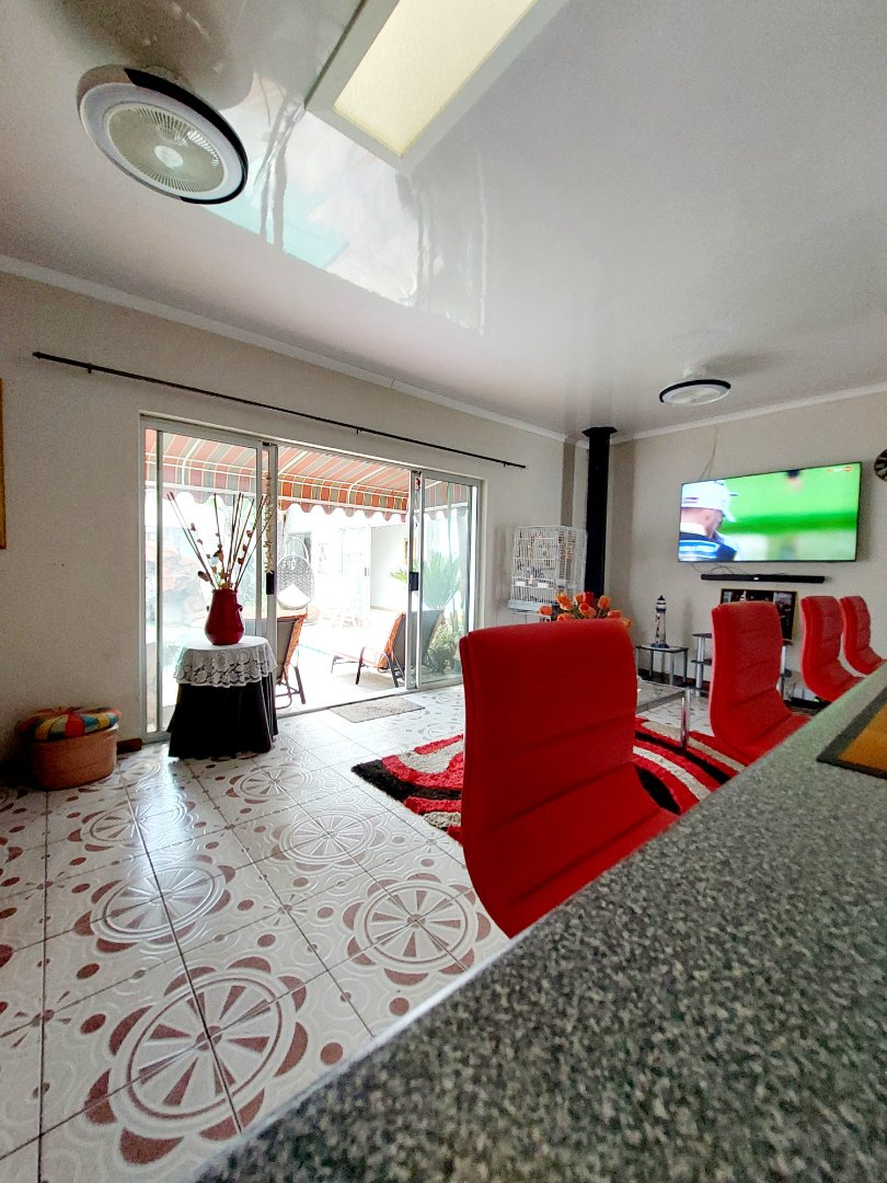 Step inside and be seduced by three havens for rest and rejuvenation. The master bedroom whispers luxury with an ensuite bathroom and a walk-in closet to hold your secrets. Two additional bedrooms offer a sanctuary for loved ones or guests with there very own en-suite bathroom. A kitchen to ignite your inner chef. This culinary playground boasts a walk-in scullery to keep the magic hidden. Brainpower and beyond...A dedicated study, easily transformed into a home office, ensures productivity meets inspiration. Park with peace of mind. This house features three garages and offers a sheltered retreat for your prized wheels with an additional carport.