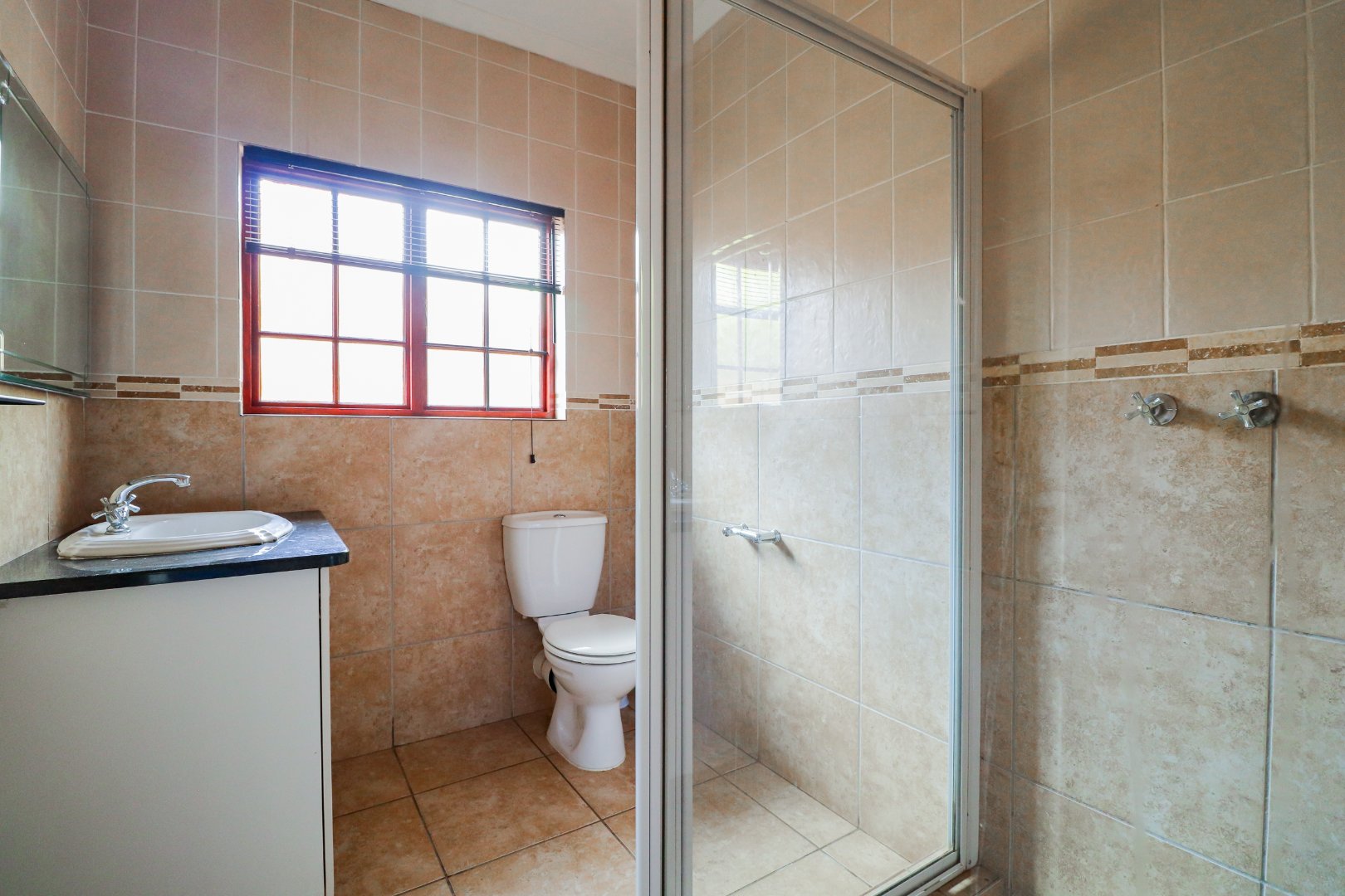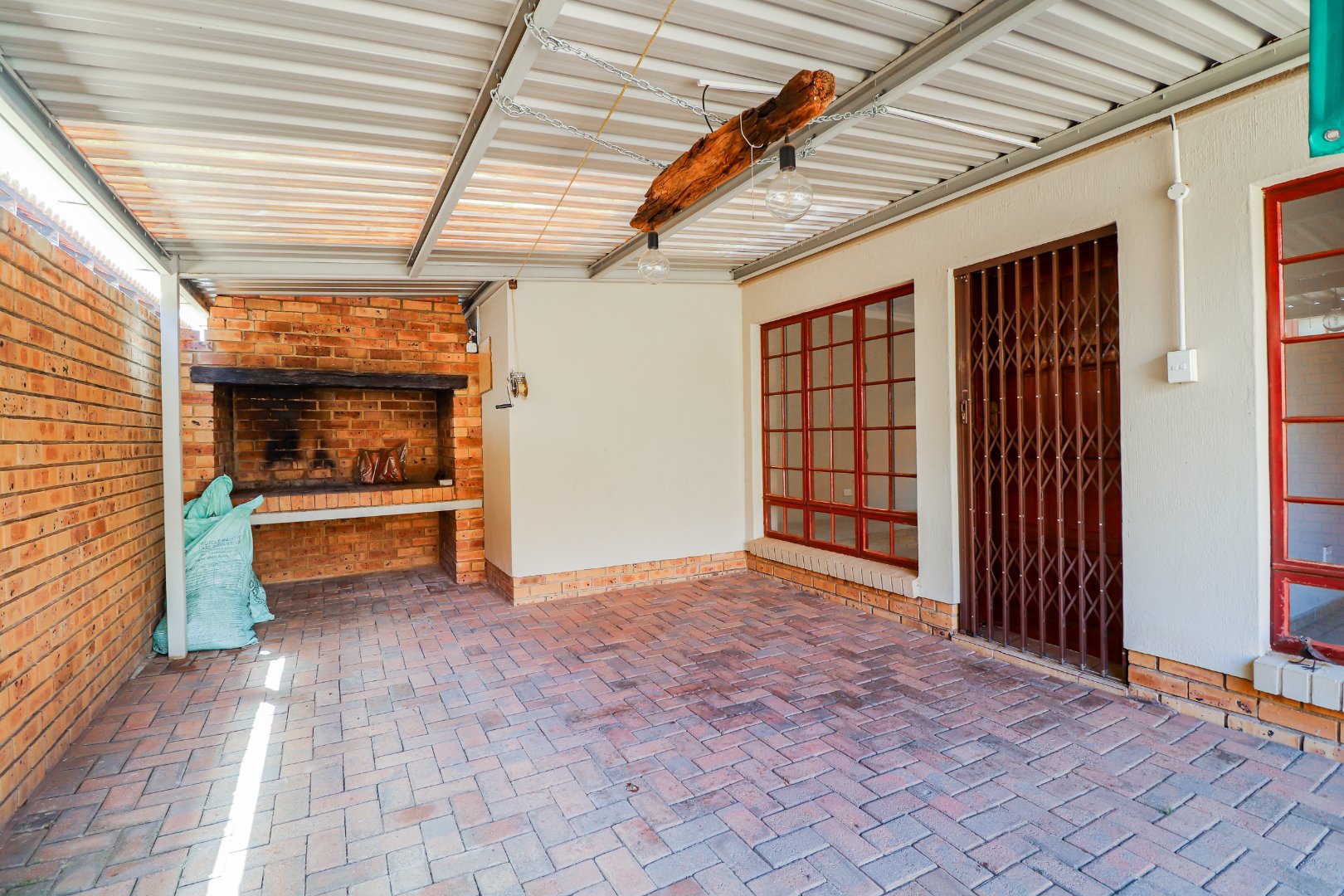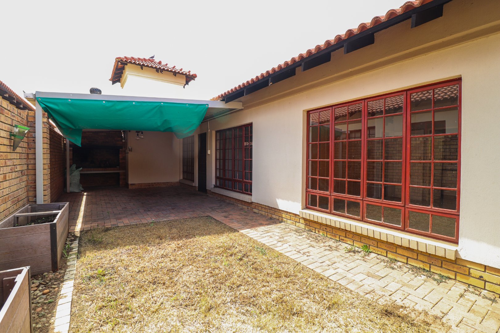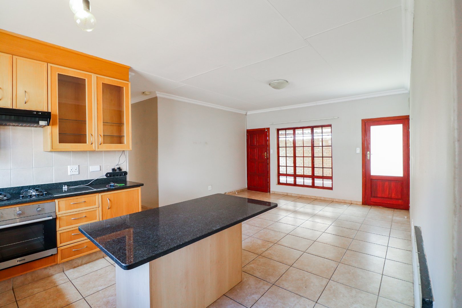 3 Bedrooms, 2 Bathrooms, open plan kitchen and lounge, double electric garage, small garden as well as a built-in braai, solar, and inverter system in place.