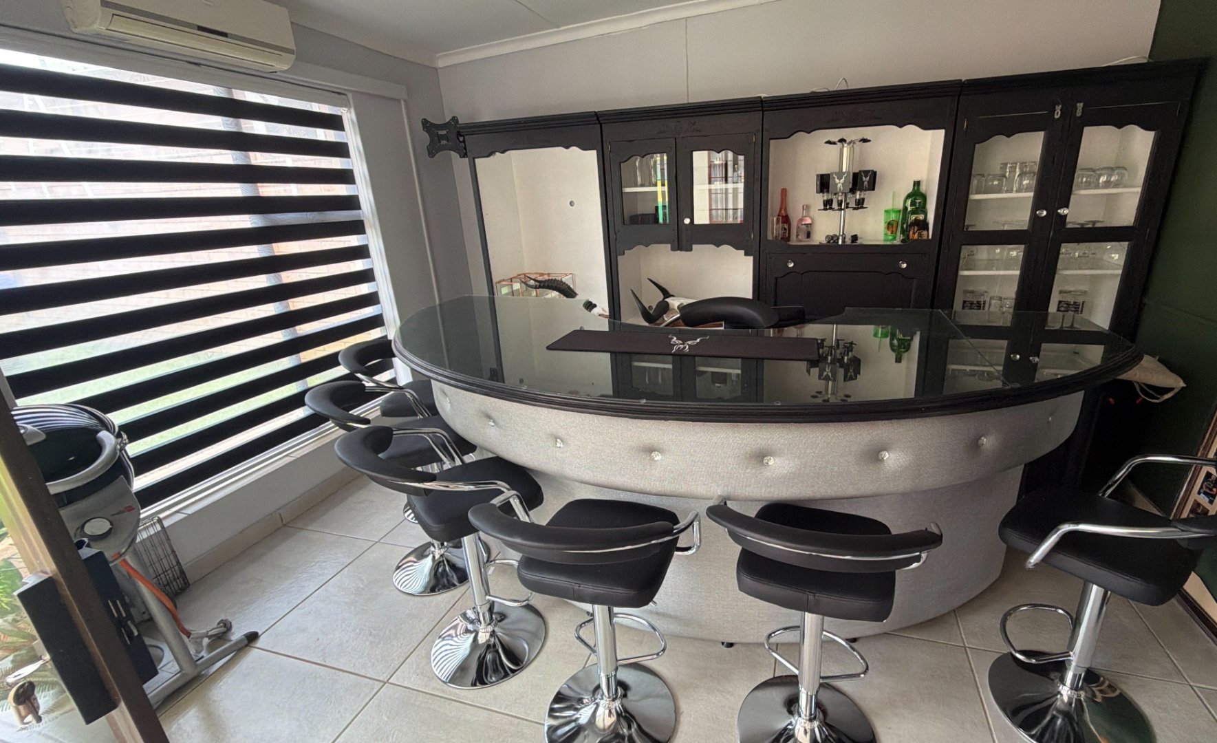 - Sun / entertainment / games room / bar area with glass sliding doors onto the patio.